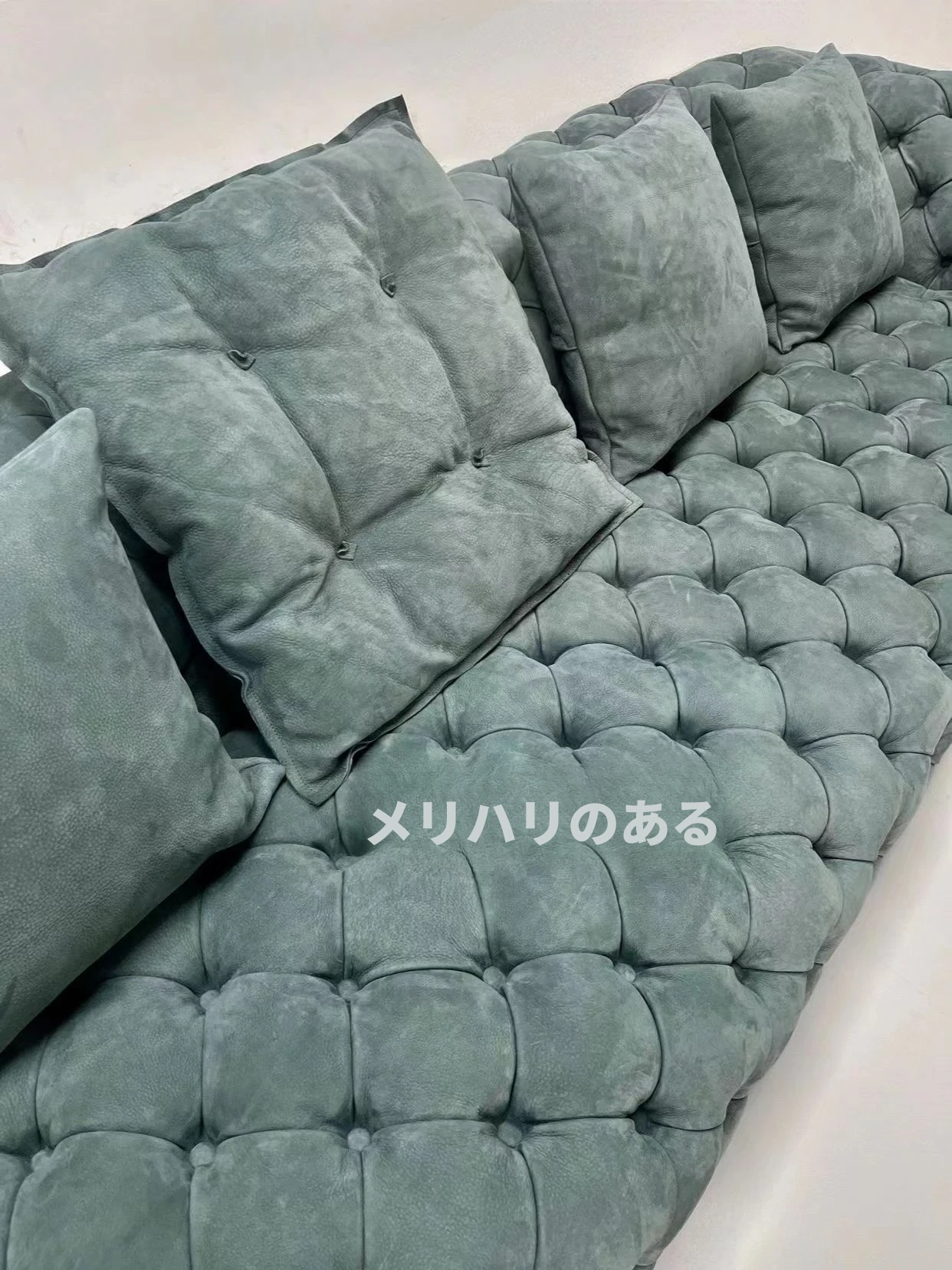 イタリアンミニマルBaxterムーンサーフェス全開閉ソファー、マットレザー仕上げ。ラグジュアリーなリビングルームや広々としたヴィラに最適な高級牛革ソファ。あなたの空間に洗練された美をプラス!
