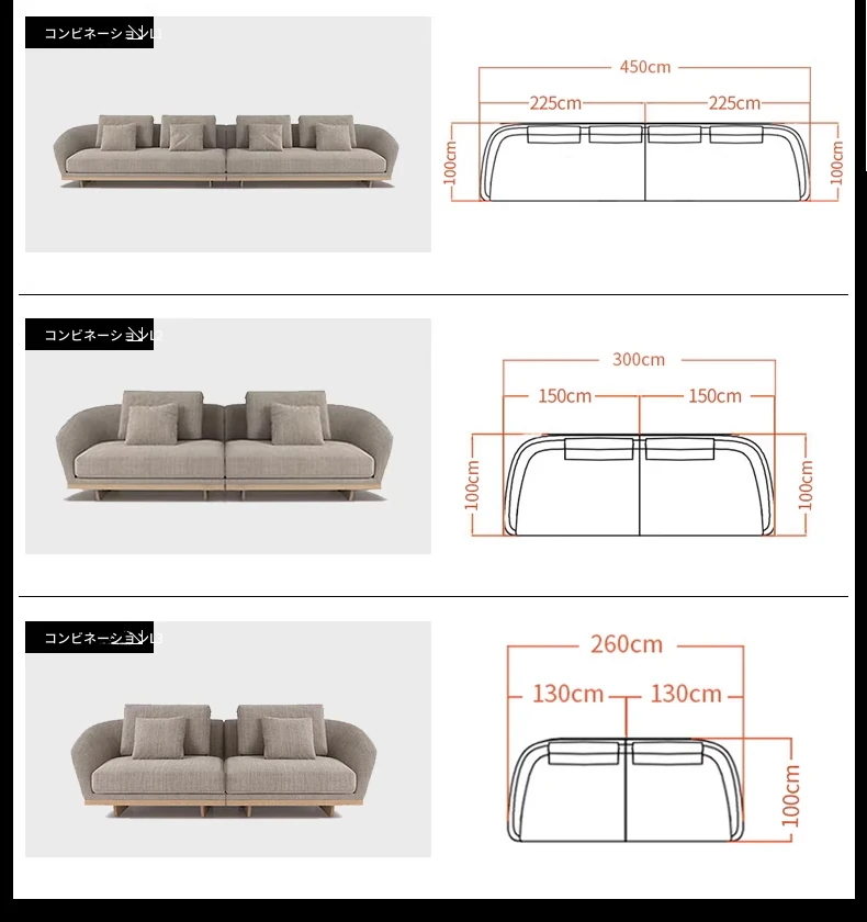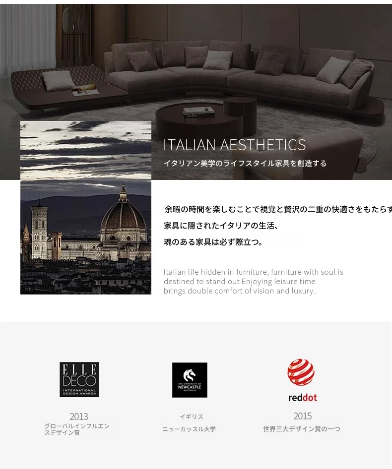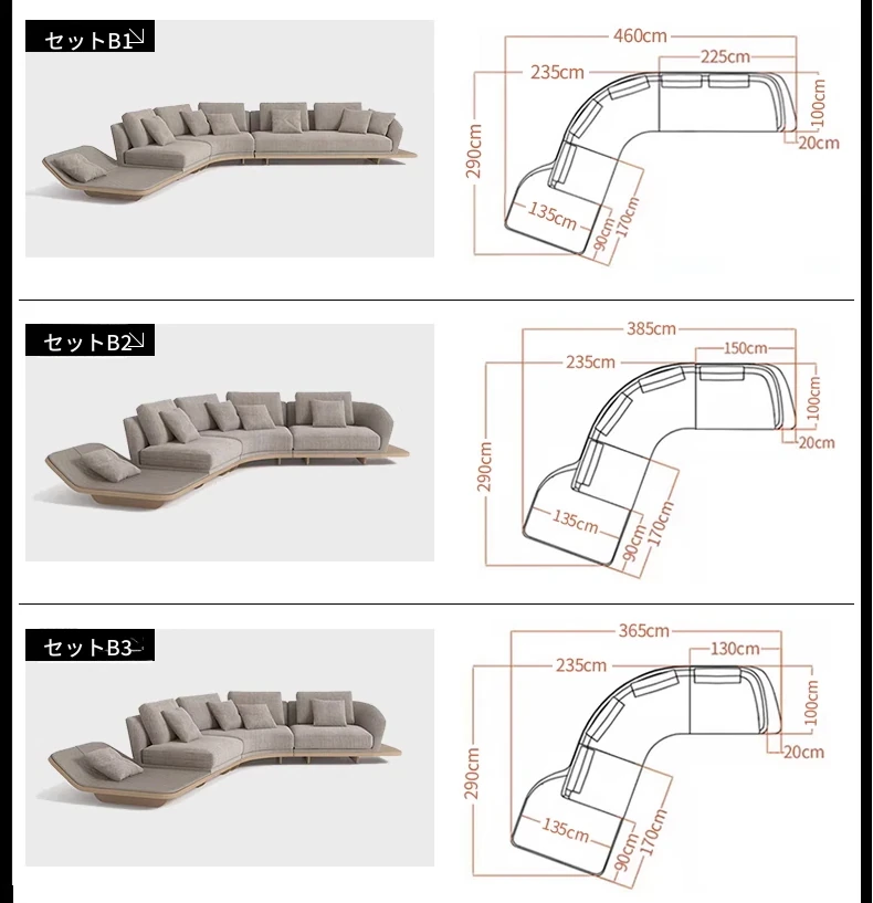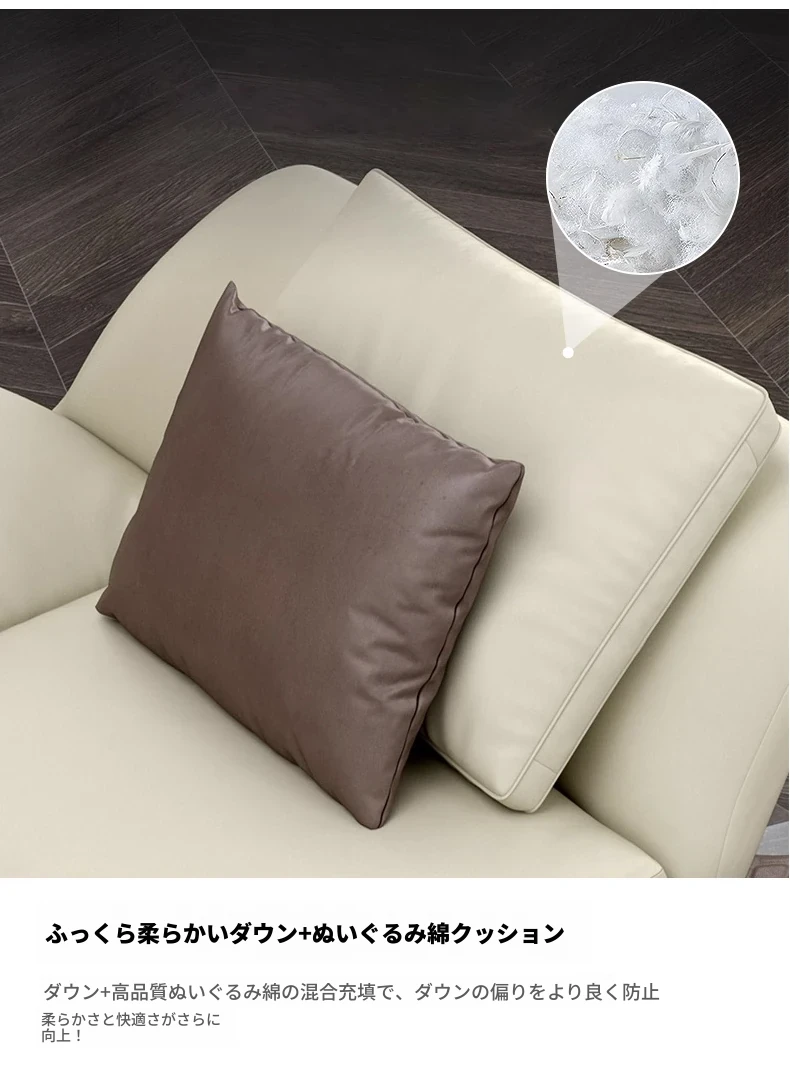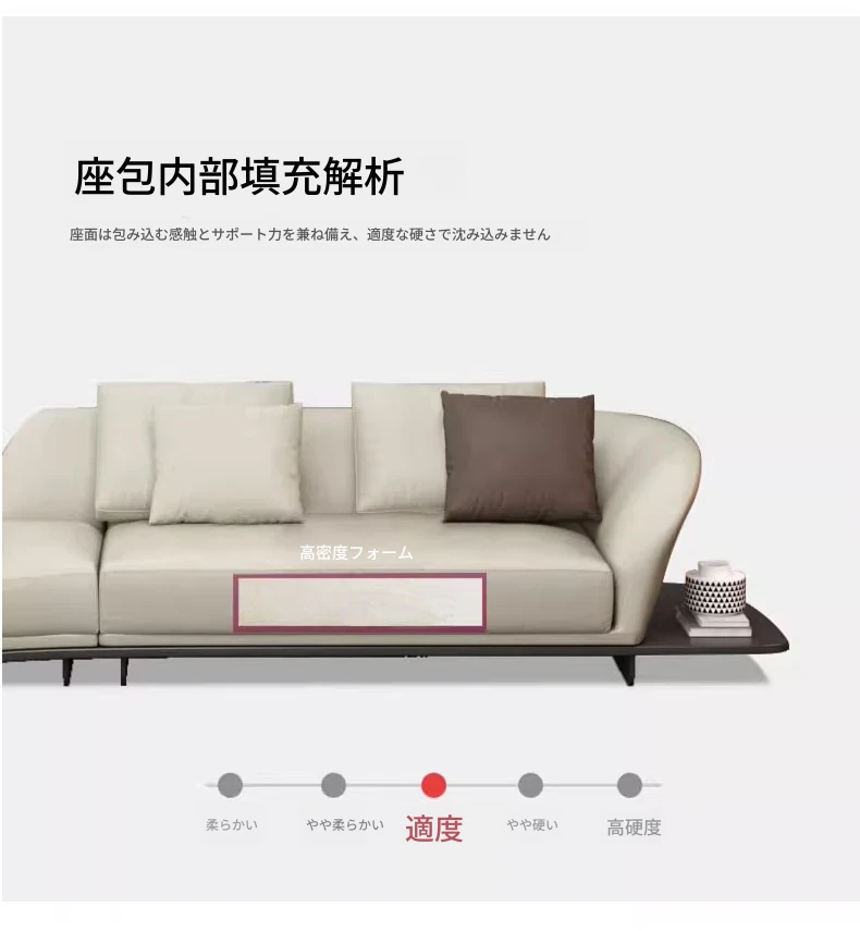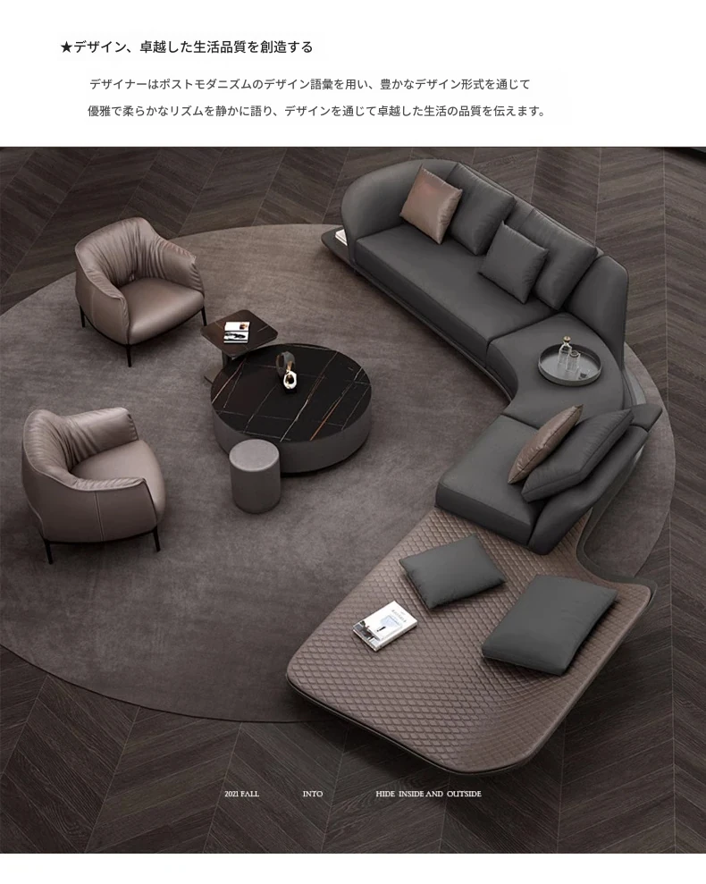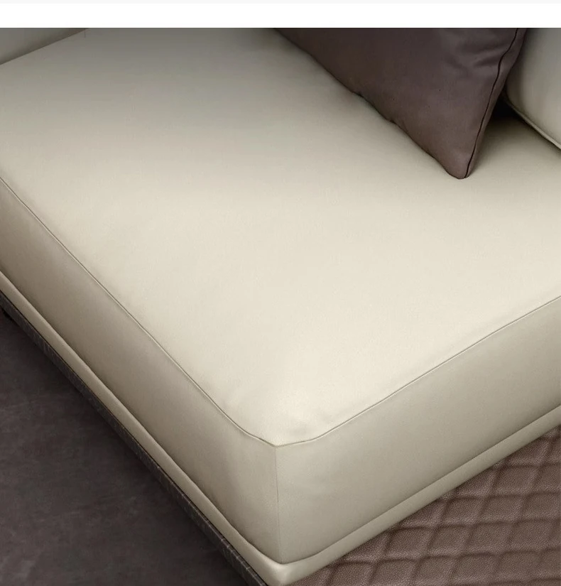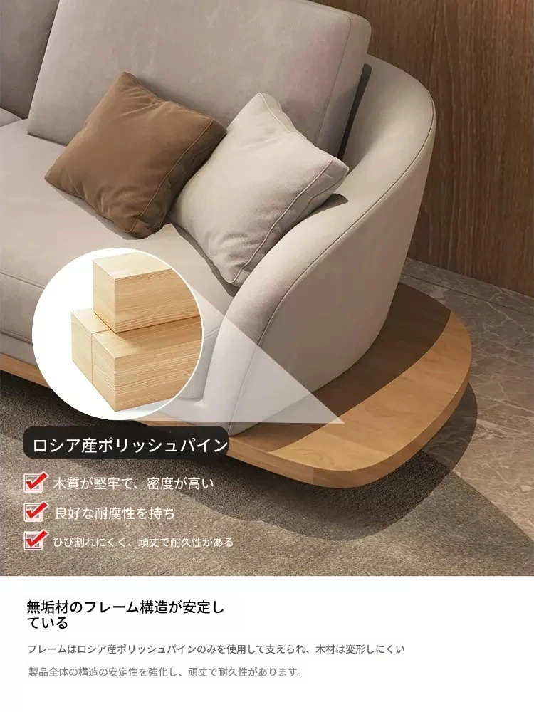 イタリアンミニマルコーナーソファ|曲線デザインでおしゃれなリビングに最適!高品質コットンリネンと本革を使用した、心地よい座り心地を実現。おしゃれなサンプルルームにもぴったりな一品です!