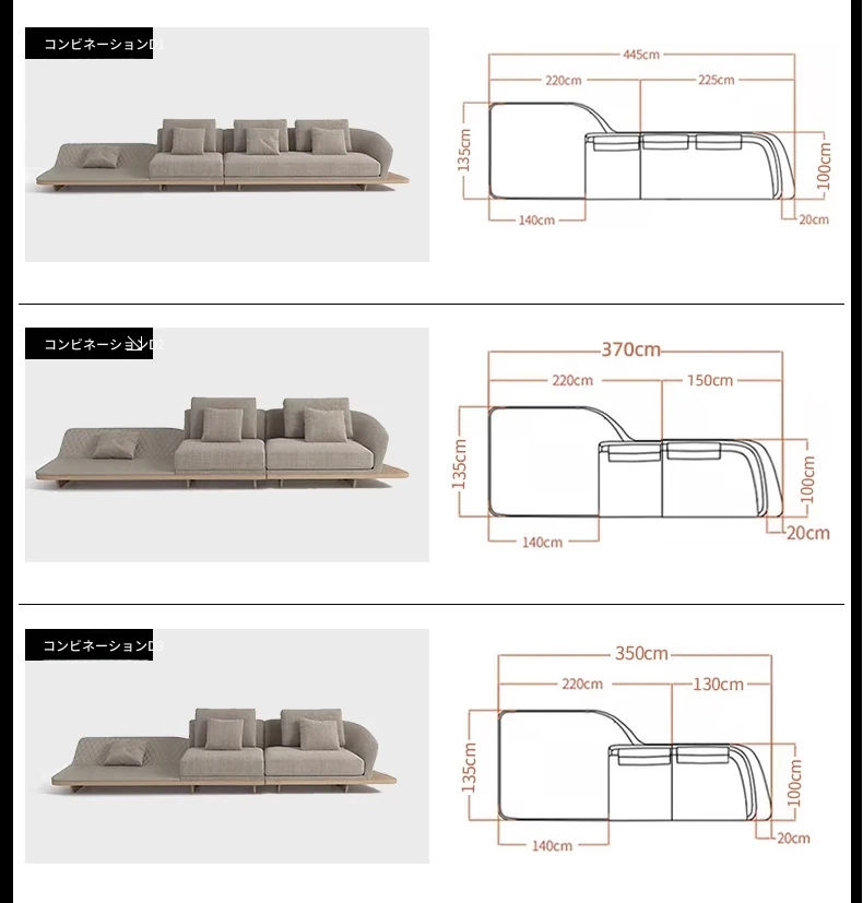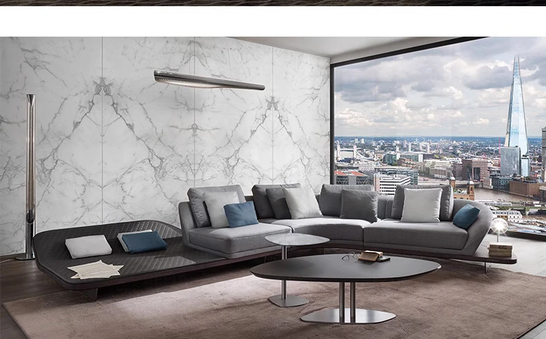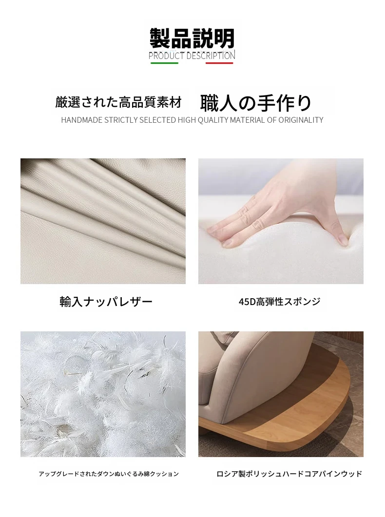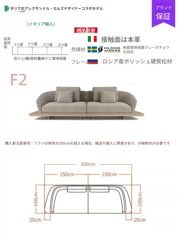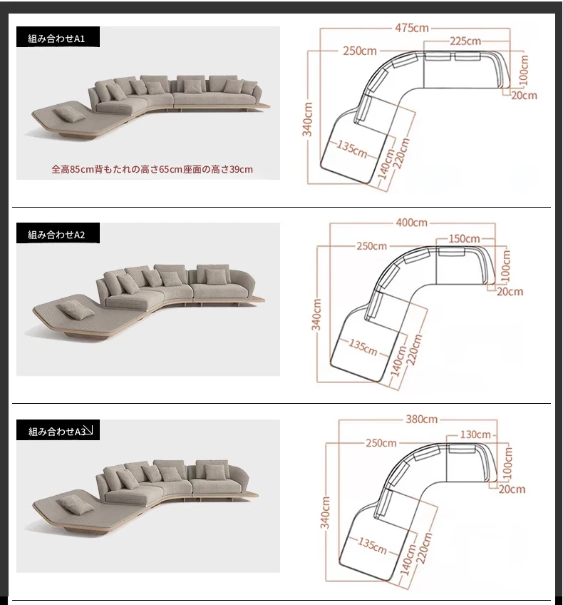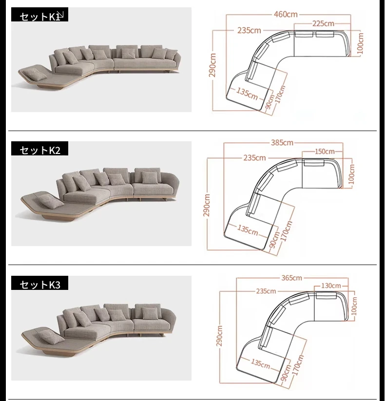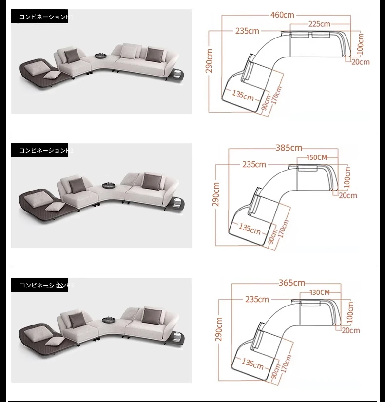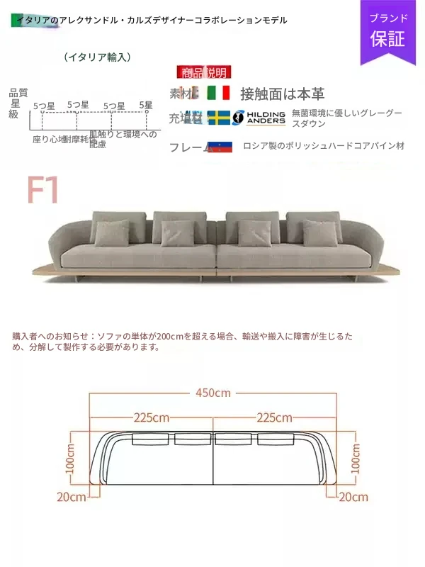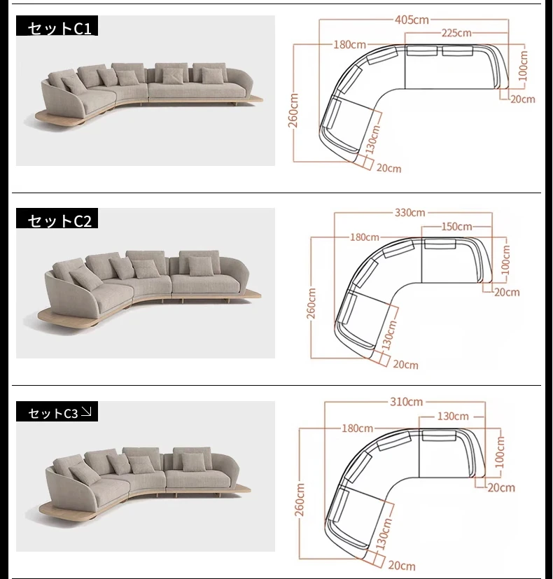 イタリアンミニマルコーナーソファ|曲線デザインでおしゃれなリビングに最適!高品質コットンリネンと本革を使用した、心地よい座り心地を実現。おしゃれなサンプルルームにもぴったりな一品です!