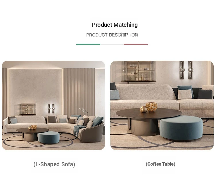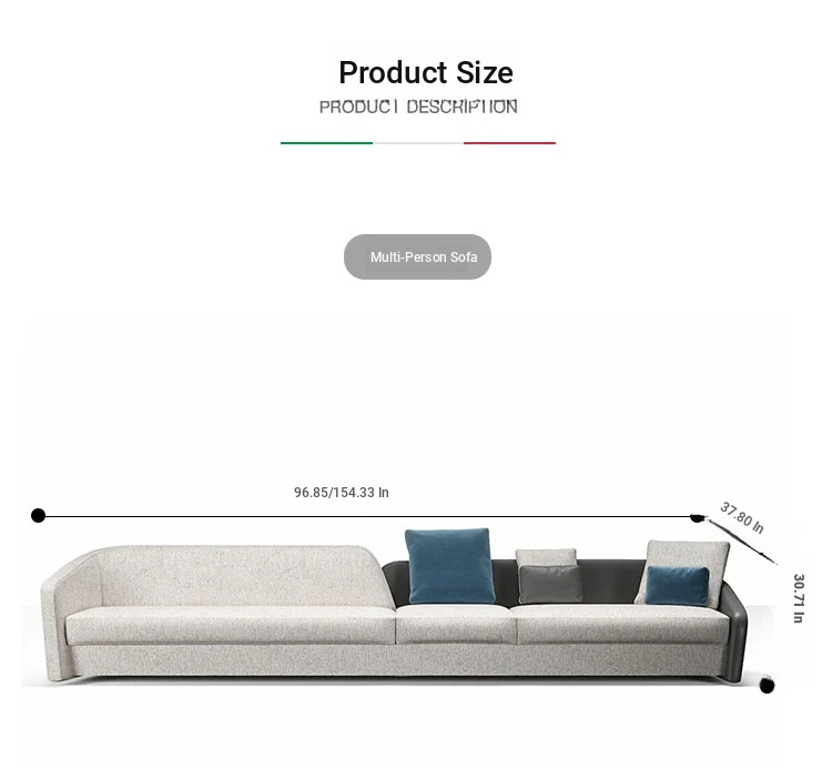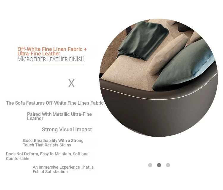 Italian Minimalist Fabric and Leather Three-Seater Sofa Set - Modern Designer Living Room Furniture for Stylish Spaces