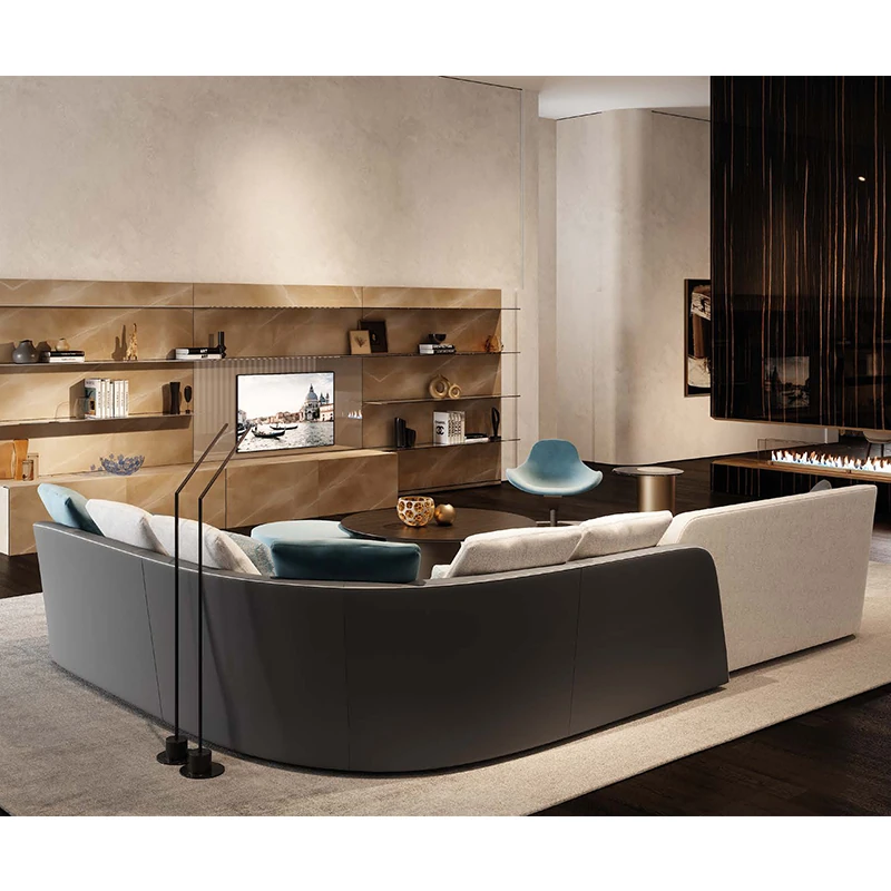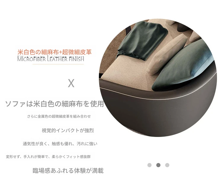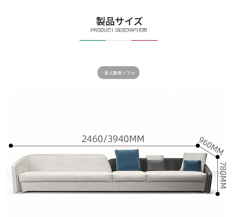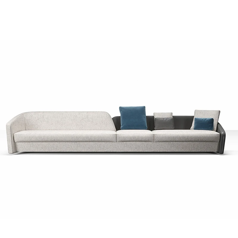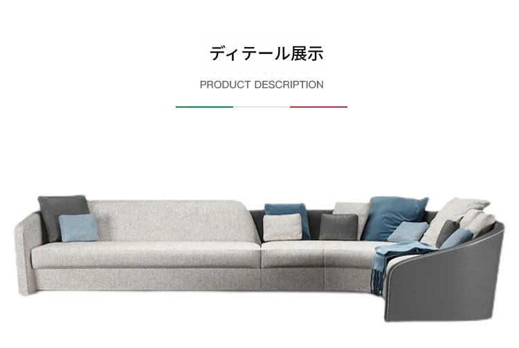 イタリアンデザインのミニマリスト3人掛けソファー、上質なレザーとファブリックの組み合わせで、洗練されたリビング空間を演出。高級感あふれる家具で、友人や家族とくつろぎのひとときをお楽しみください。