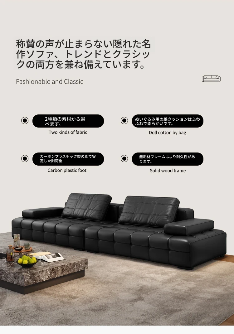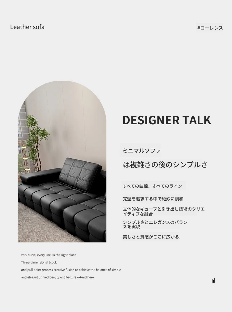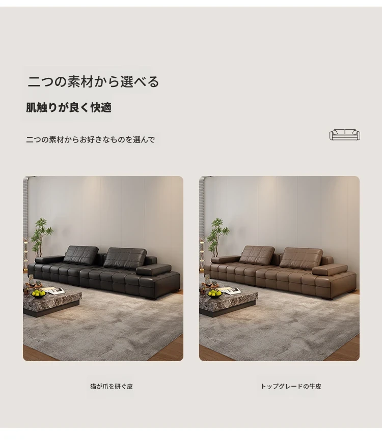 イタリアンミニマリストレザーソファ「ローレンス」|猫も嬉しい爪とぎ対応!柔らかな肌触りのモダンリビング用ソファ|人気のストレートデザインで、リラックスできる贅沢なひとときを。