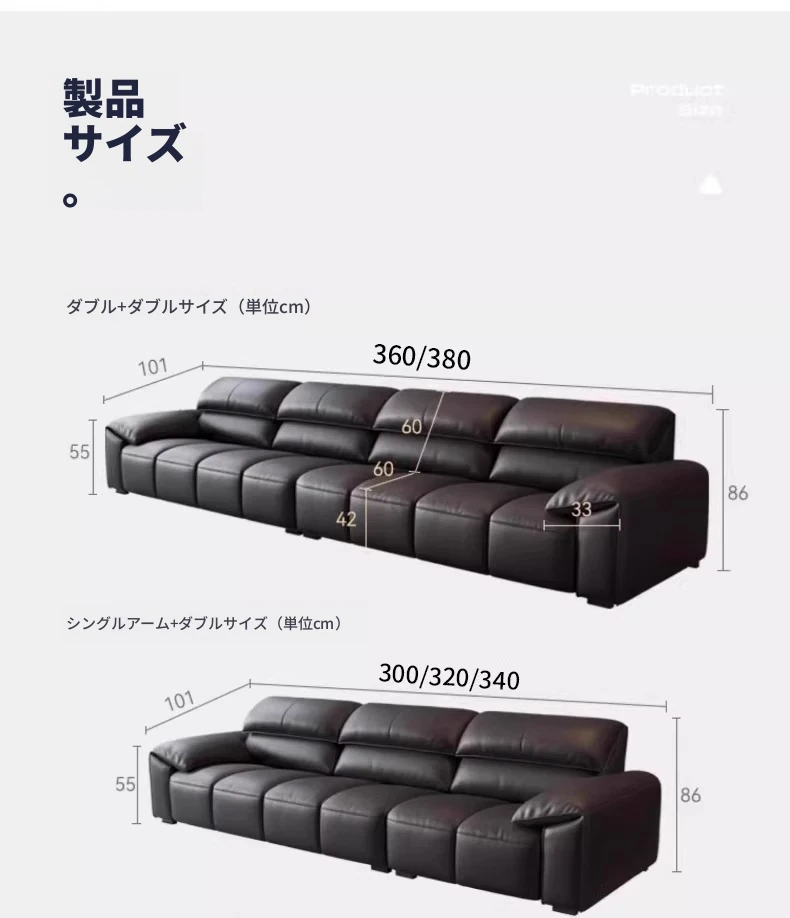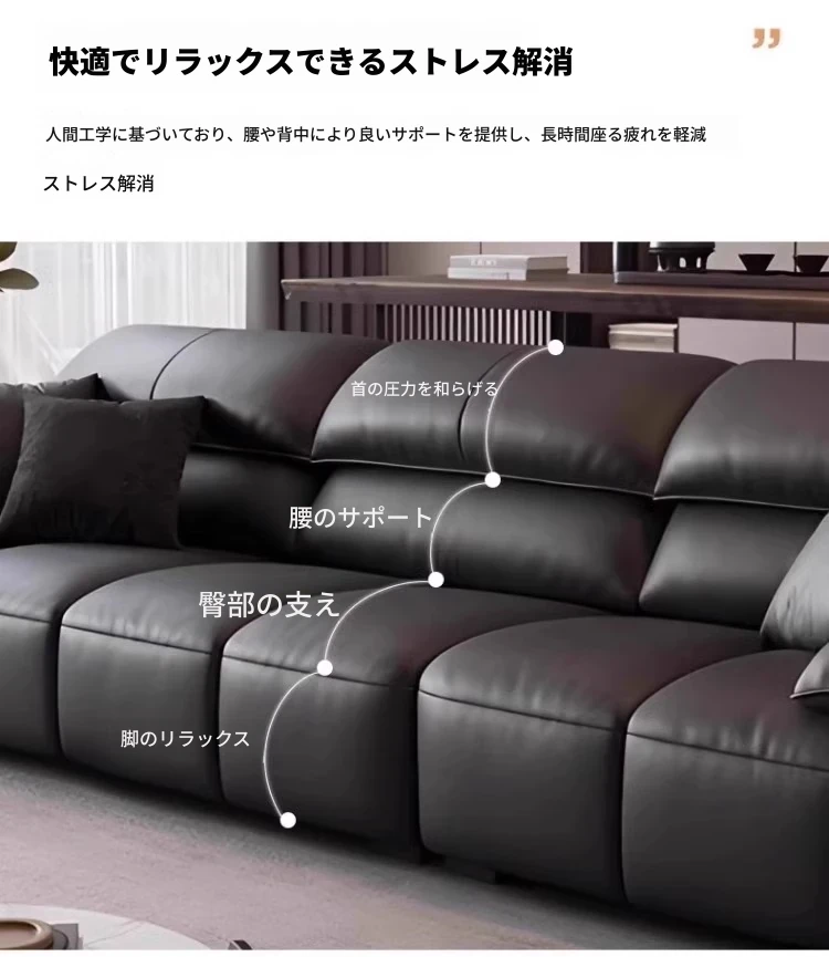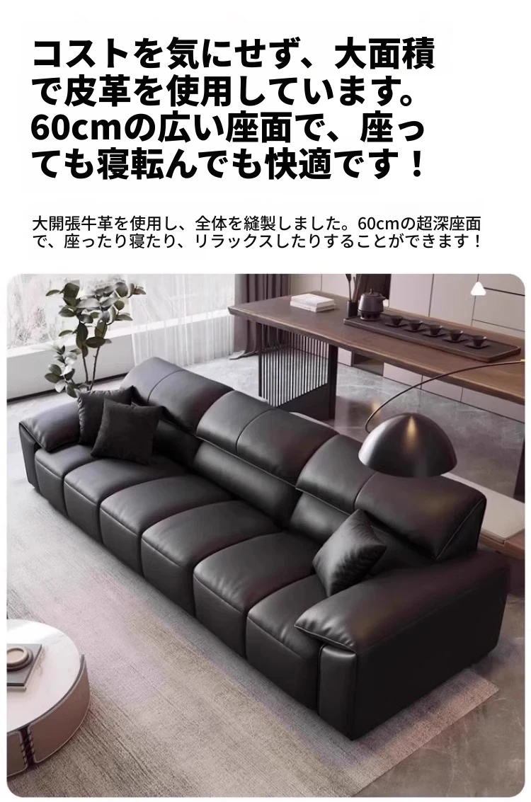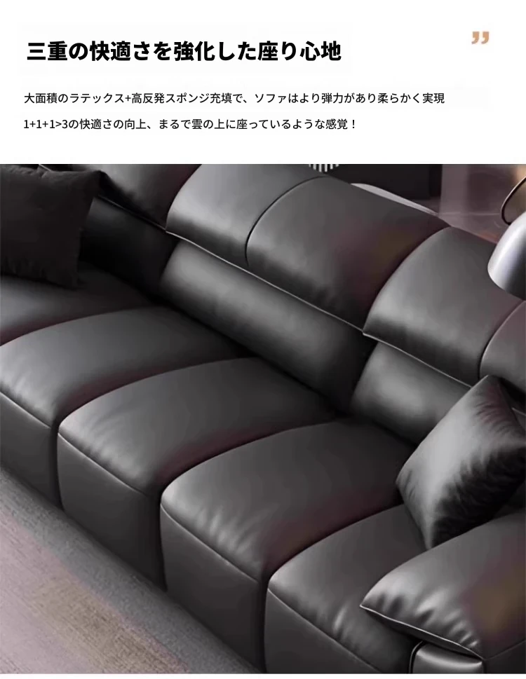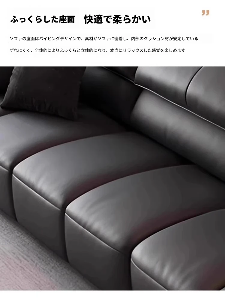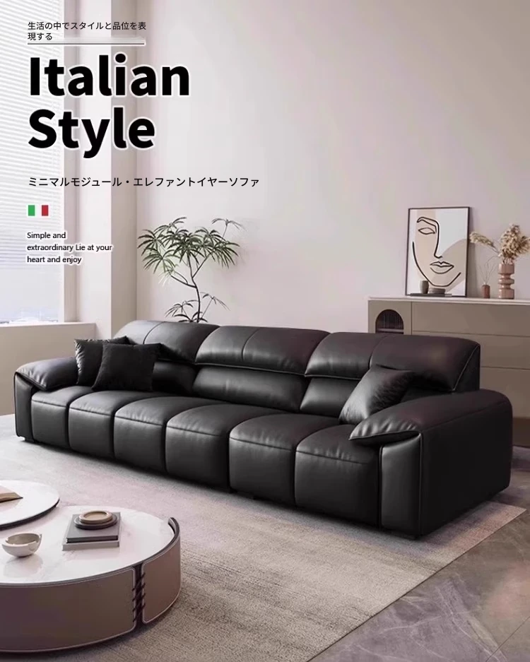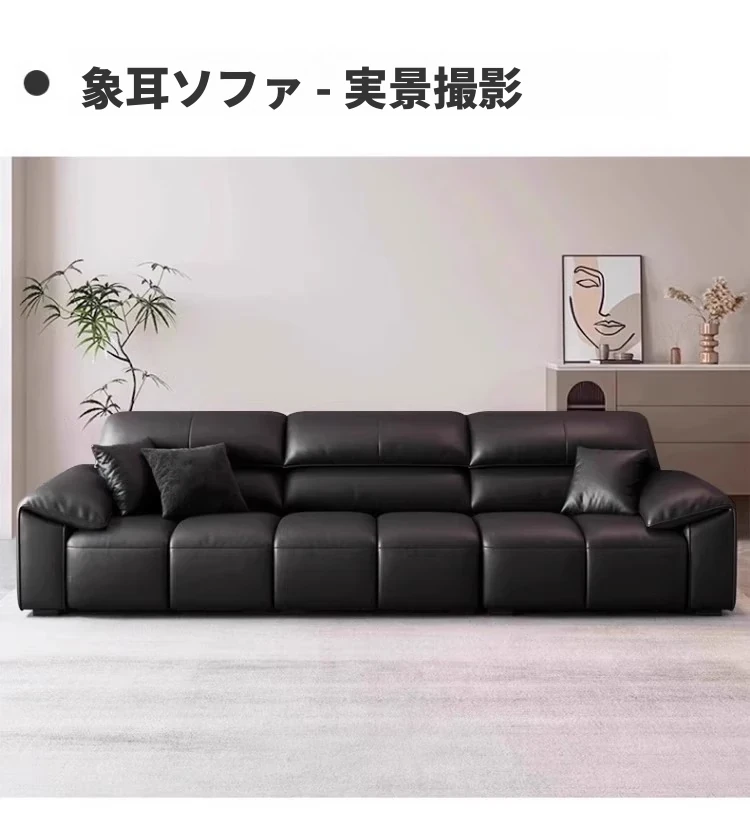 イタリアンミニマルラグジュアリー 大サイズの象耳デザイン 本革ソファ 大黒牛革使用 創造的なソファセットで、洗練された空間を演出!