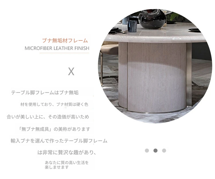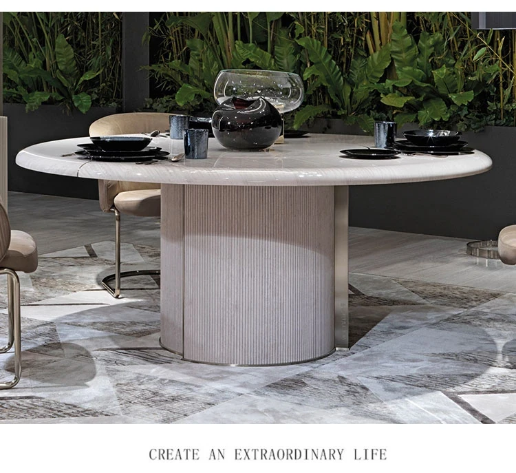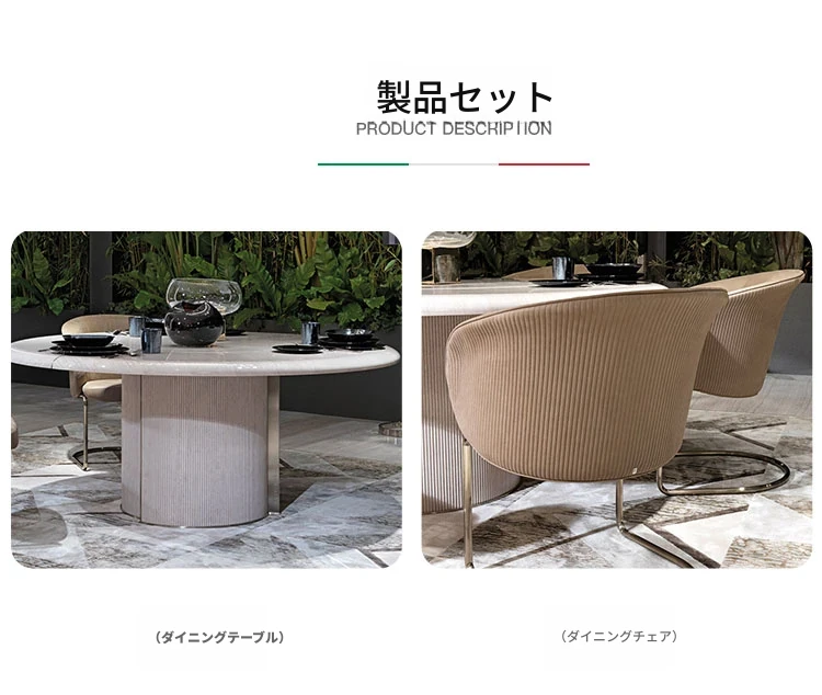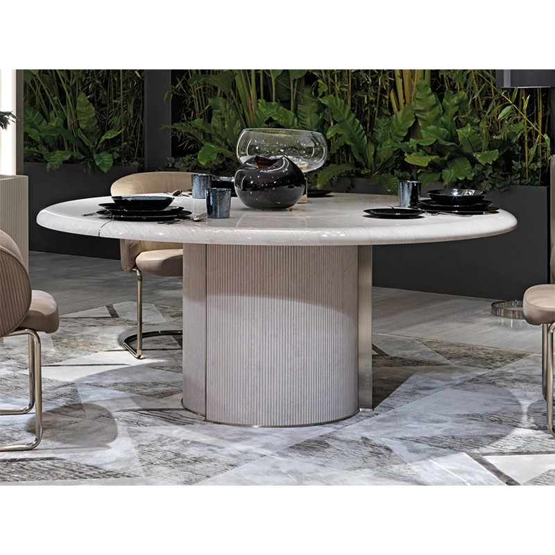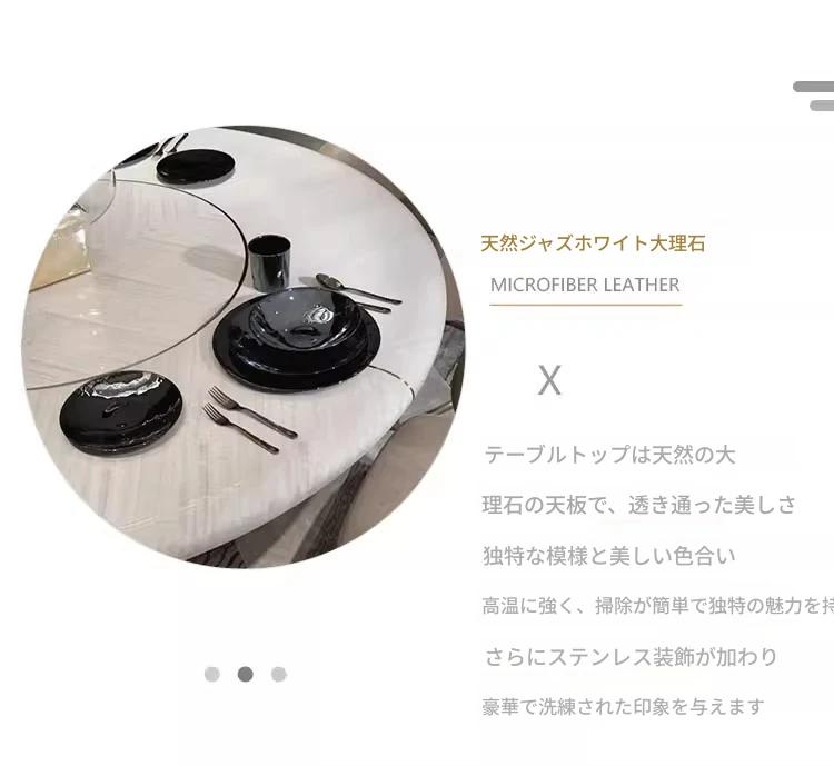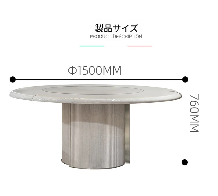 イタリアンラグジュアリー 丸型天然大理石ダイニングテーブル - イタリアデザインのステンレス製テーブル&チェアセット。高級感あふれる本格派、家族の団欒にぴったりな無垢材使用の食卓。