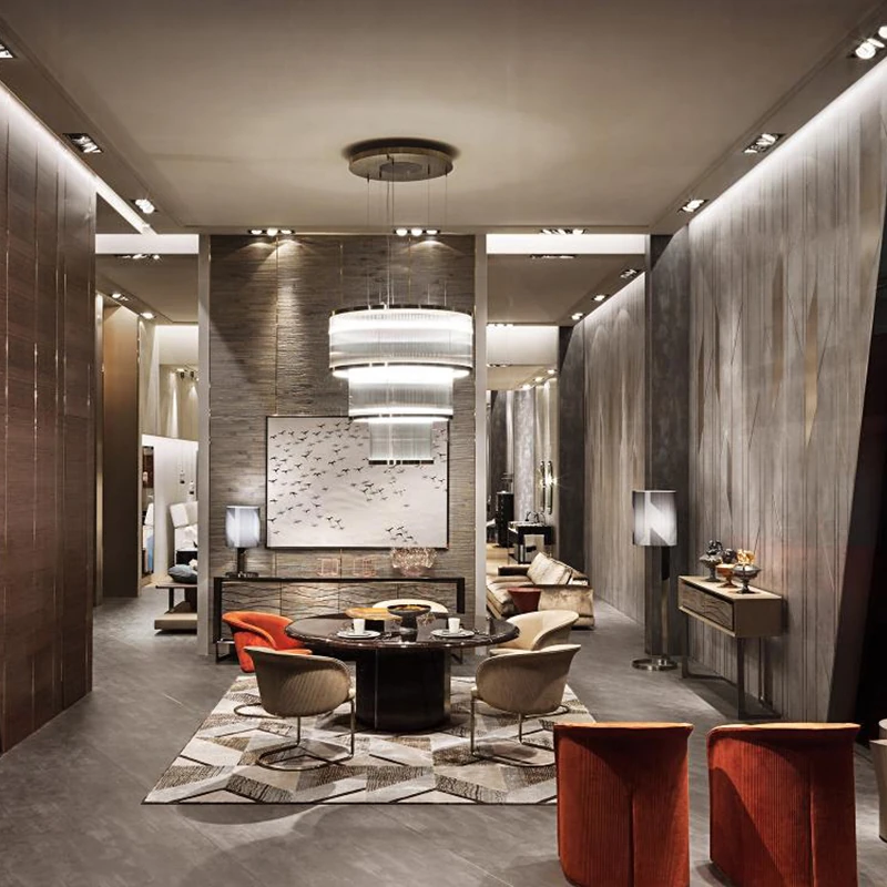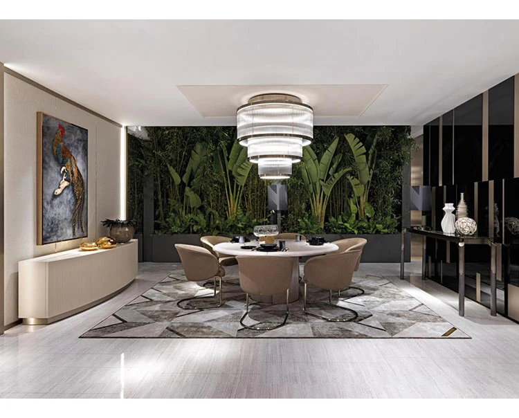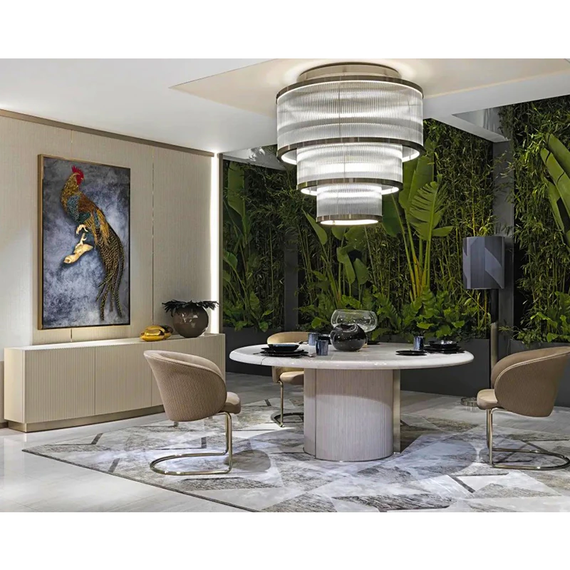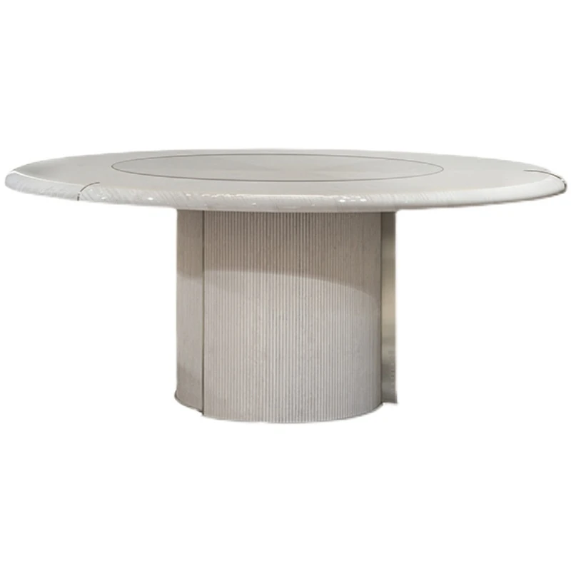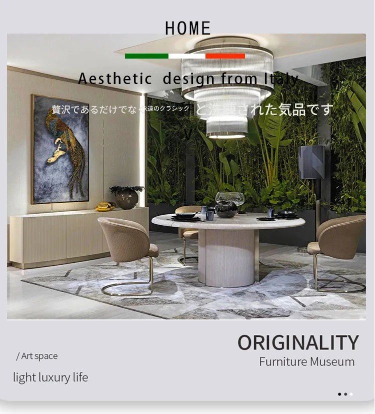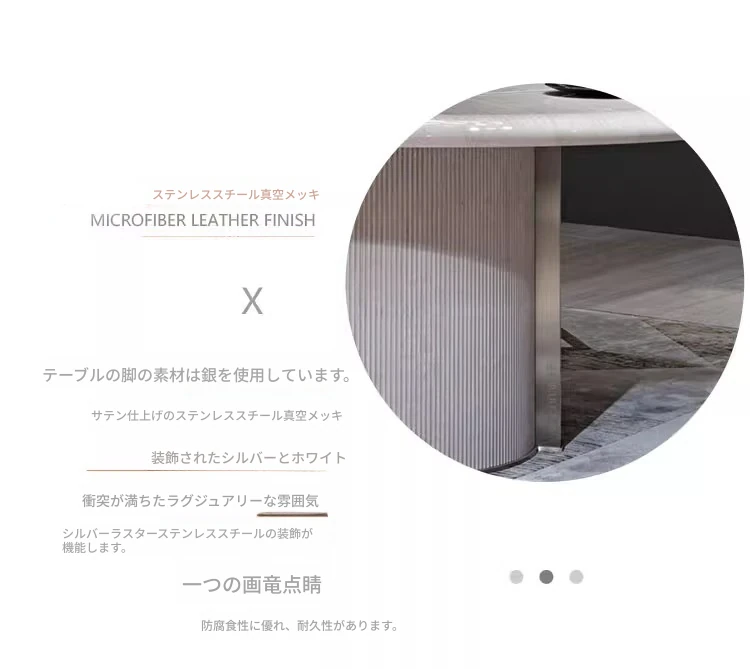 イタリアンラグジュアリー 丸型天然大理石ダイニングテーブル - イタリアデザインのステンレス製テーブル&チェアセット。高級感あふれる本格派、家族の団欒にぴったりな無垢材使用の食卓。