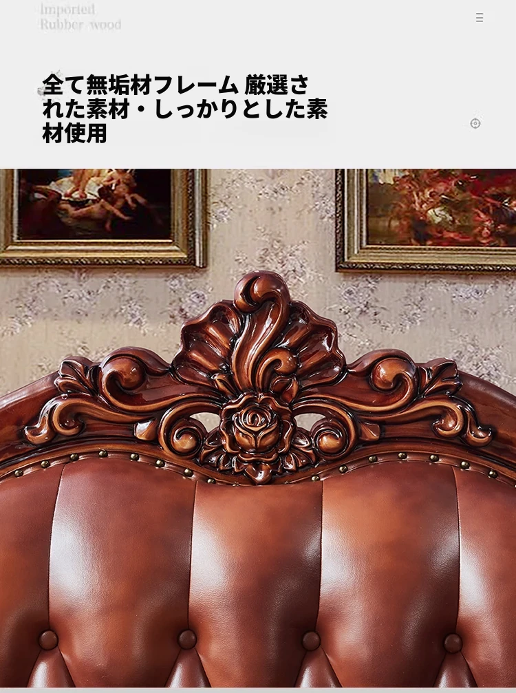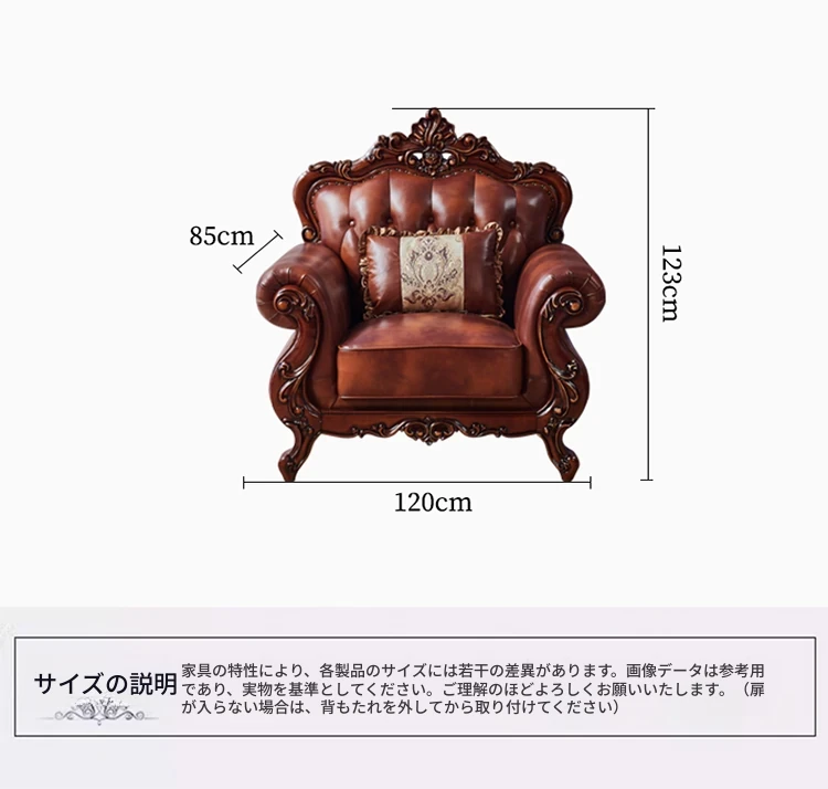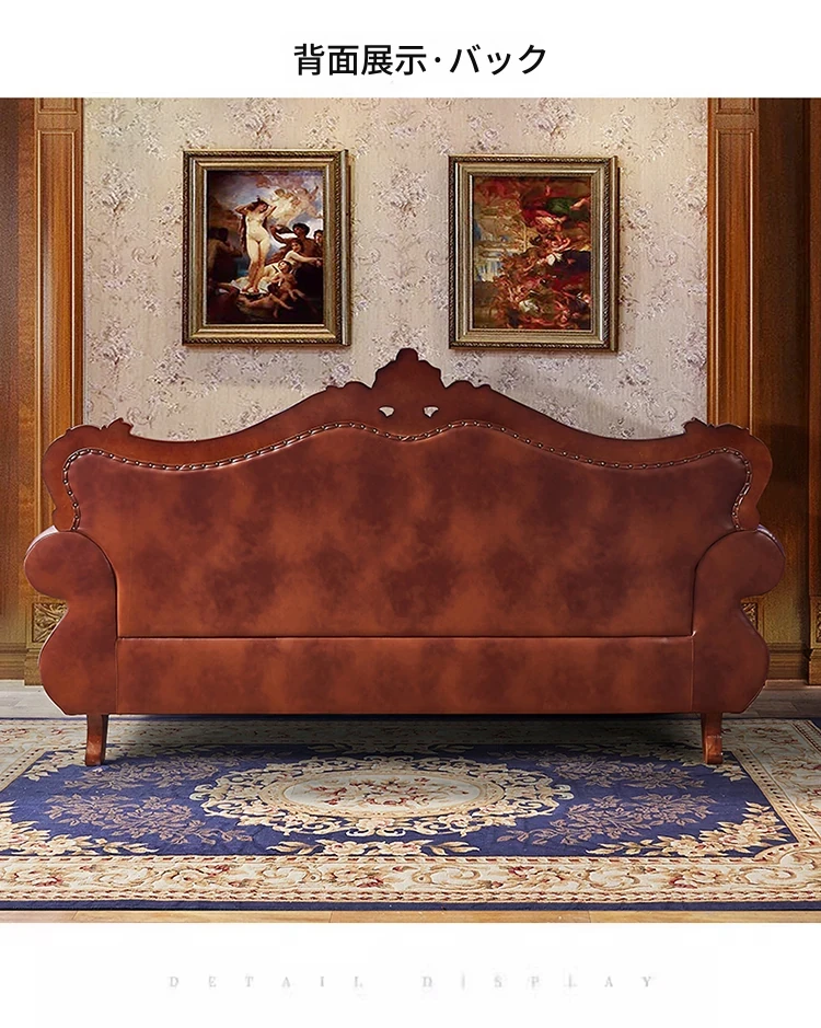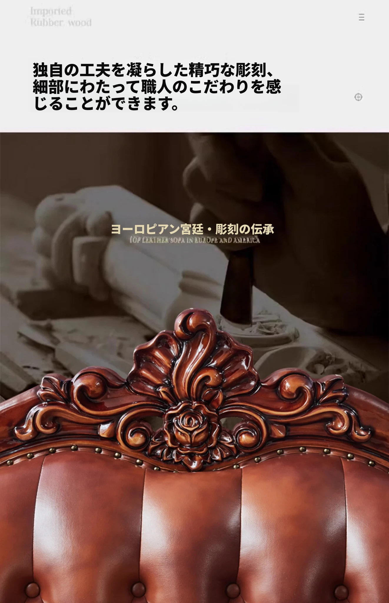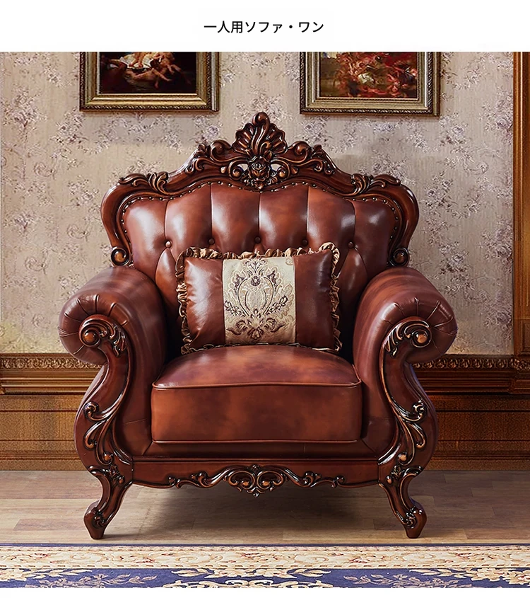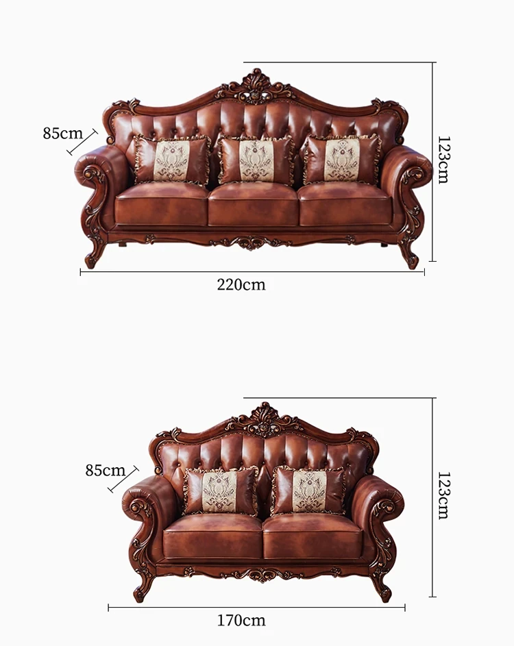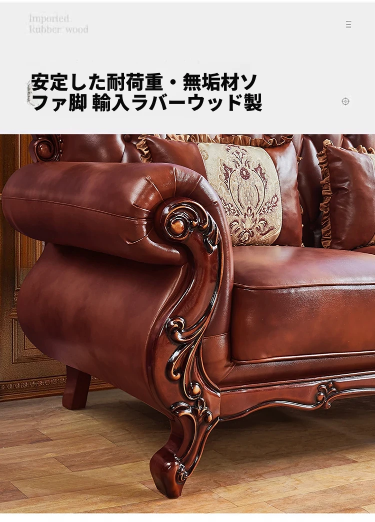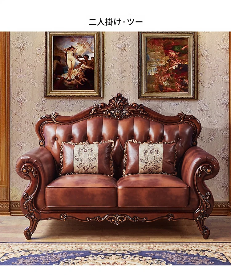 ヨーロピアンスタイルの本革ソファ!一層の牛革を使用した豪華なリビング用セット。美しい木彫りデザインのアメリカンスタイル家具、贅沢な貴妃ソファで、あなたの空間を特別なものに。