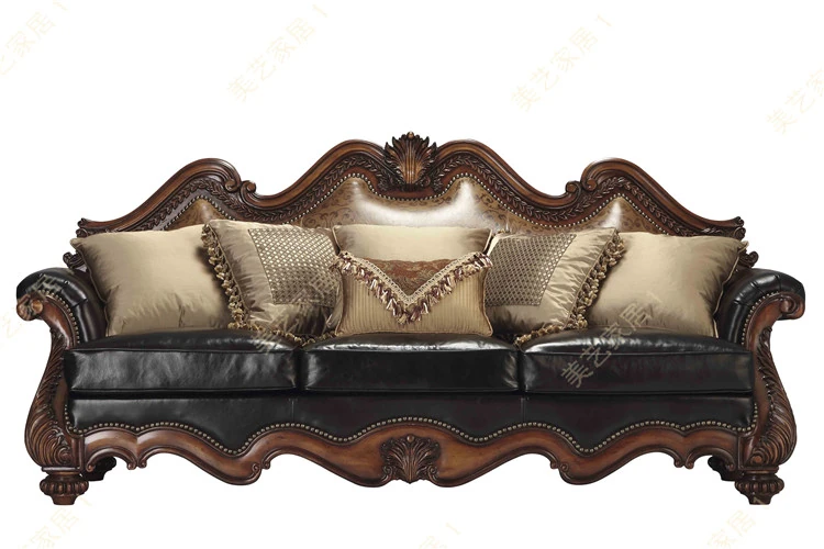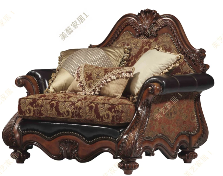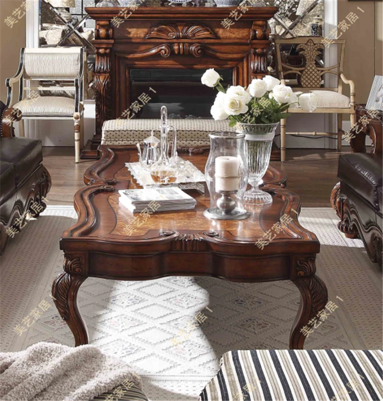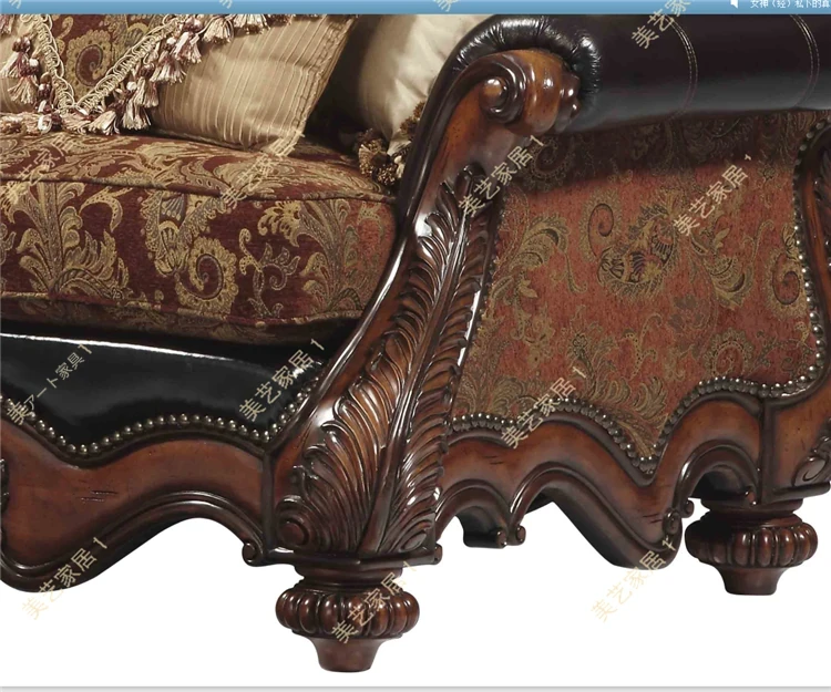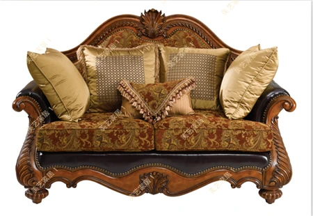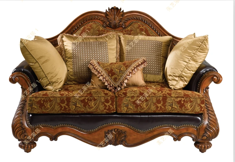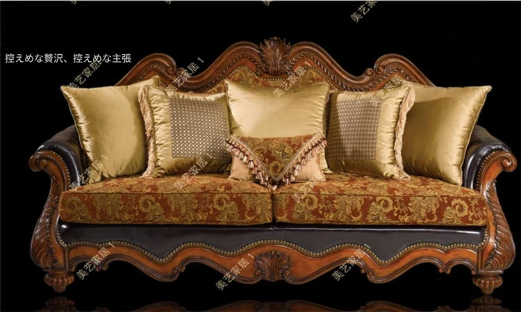 欧風の高級木製ソファとアメリカンスタイルのファブリックソファの豪華セット - 別荘やリビングにぴったりな彫刻デザイン家具。心地よさとスタイルを兼ね備えた贅沢な空間を演出します!