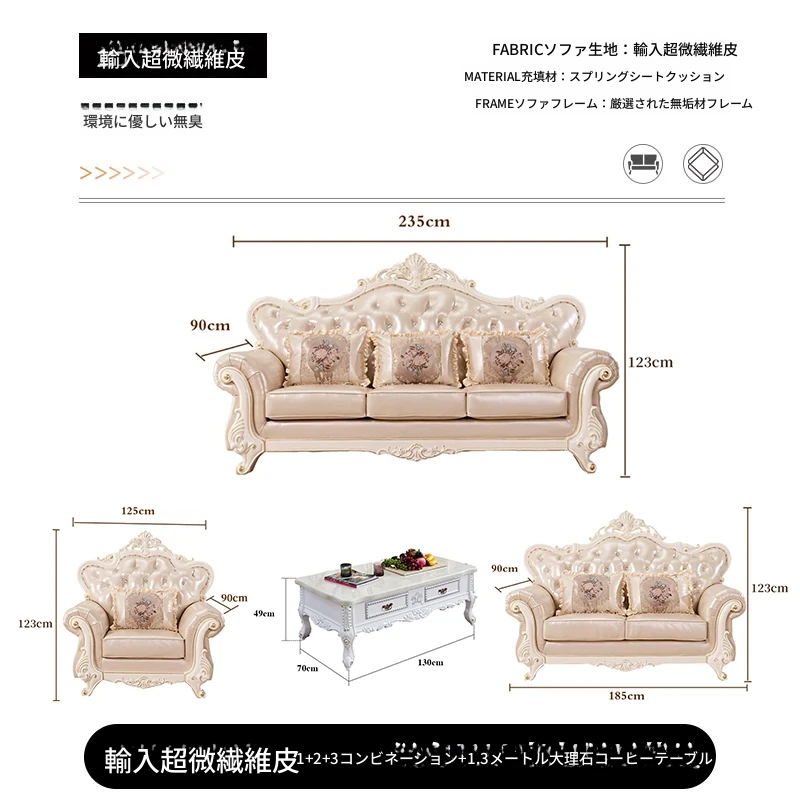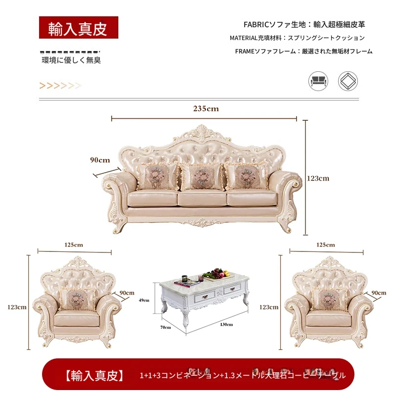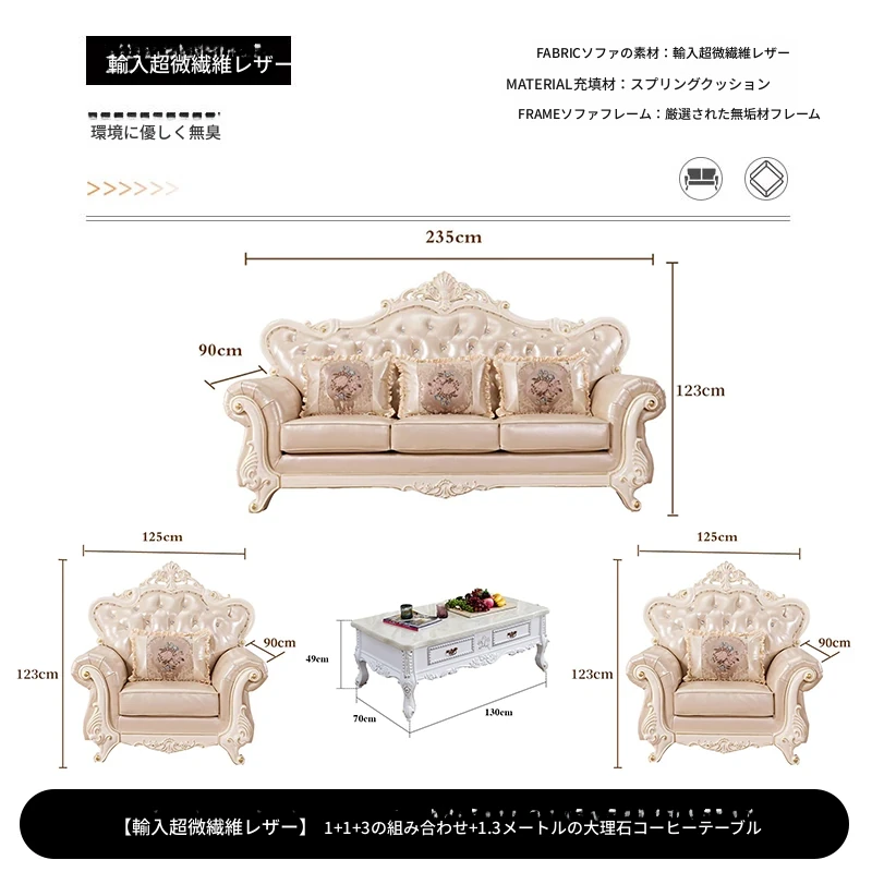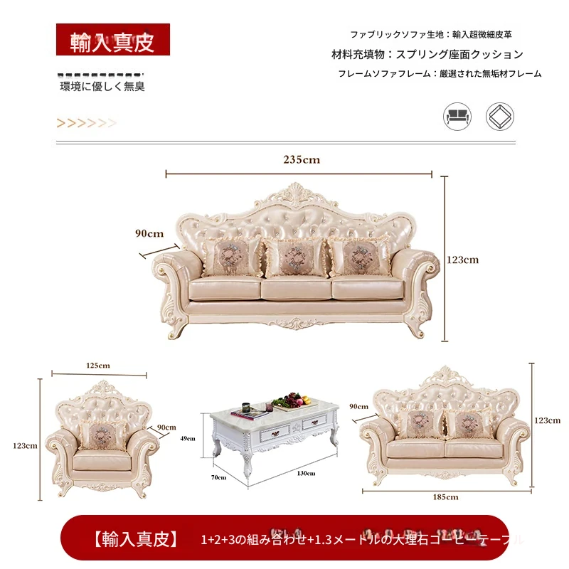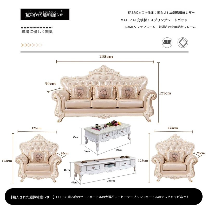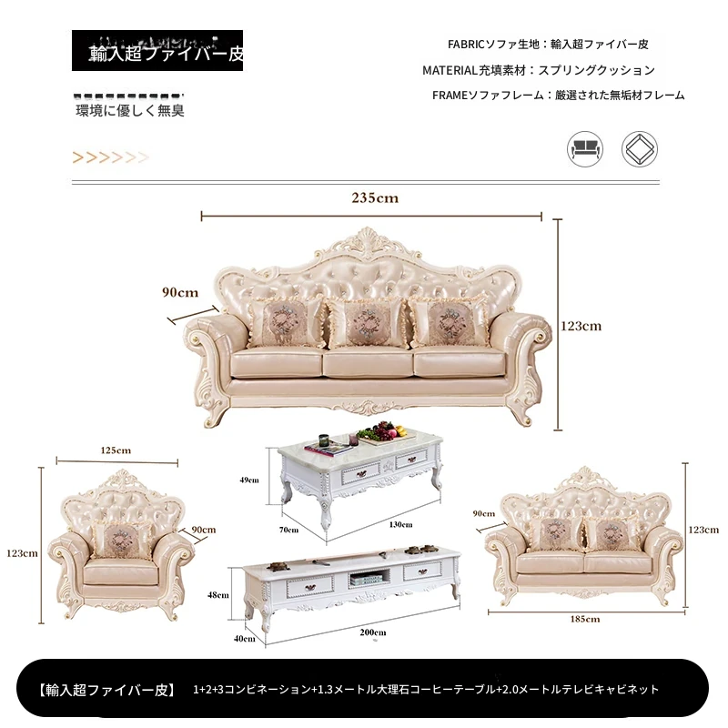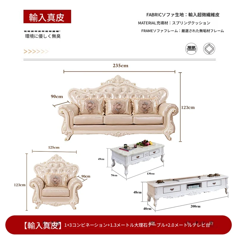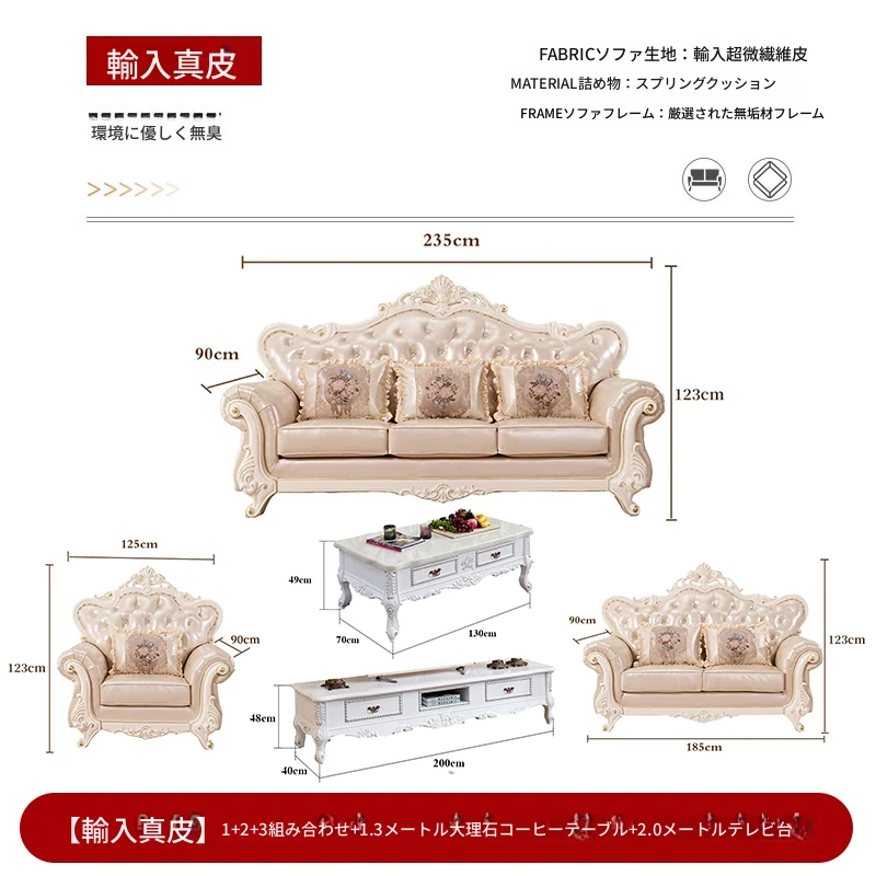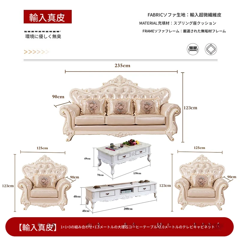 輸入本革1+2+3組+1.3メートル大理石テーブル+2.0メートルテレビキャビネット