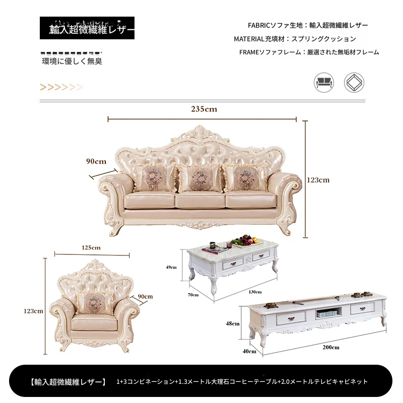 輸入超ファイバーレザー1+2+3組+1.3メートル大理石テーブル+2.0メートルテレビキャビネット