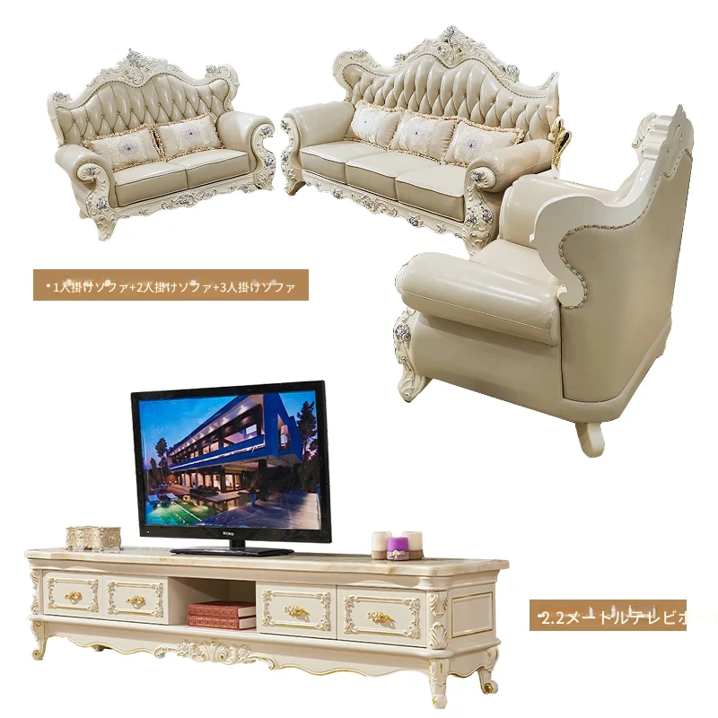 高級本革使用!モダンなヨーロピアンスタイルの123組み合わせソファ。贅沢な一級牛皮で作られた、大きなリビングルームにぴったりの洗練された家具です。あなたのヴィラをより魅力的に演出します!