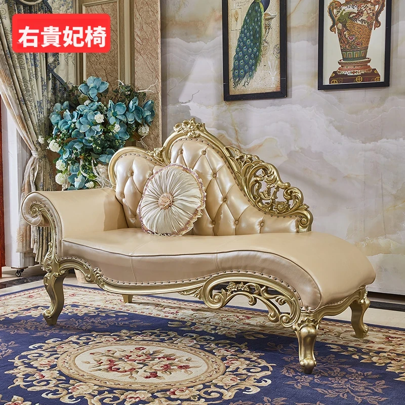 豪華な欧式実木製の貴妃椅子!真皮ソファベッドで、リビングルームや寝室にぴったりの一人用シート。小型住宅にも最適なスタイリッシュなデザインで、快適さと美しさを兼ね備えています!