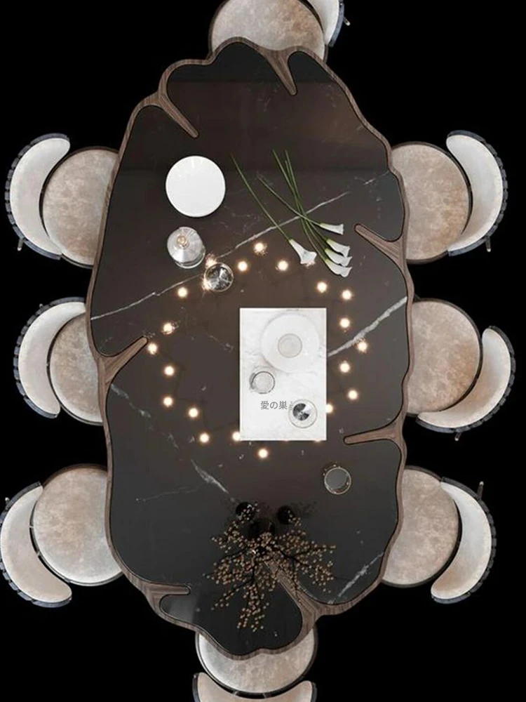 イタリアンラグジュアリー高級感溢れるダイニングテーブル - ヴィラ・豪邸向けデザイナーアート感満載のユニークな大平面テーブル