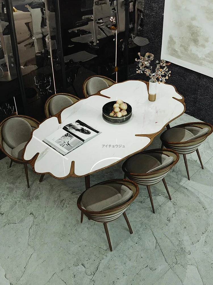 イタリア製の岩板ダイニングテーブルセット - モダンでシンプルなデザイン、4〜6人用、北欧風の大理石仕上げ。小型住宅に最適な家庭用食卓。高品質な製造で、スタイリッシュな空間を演出します!