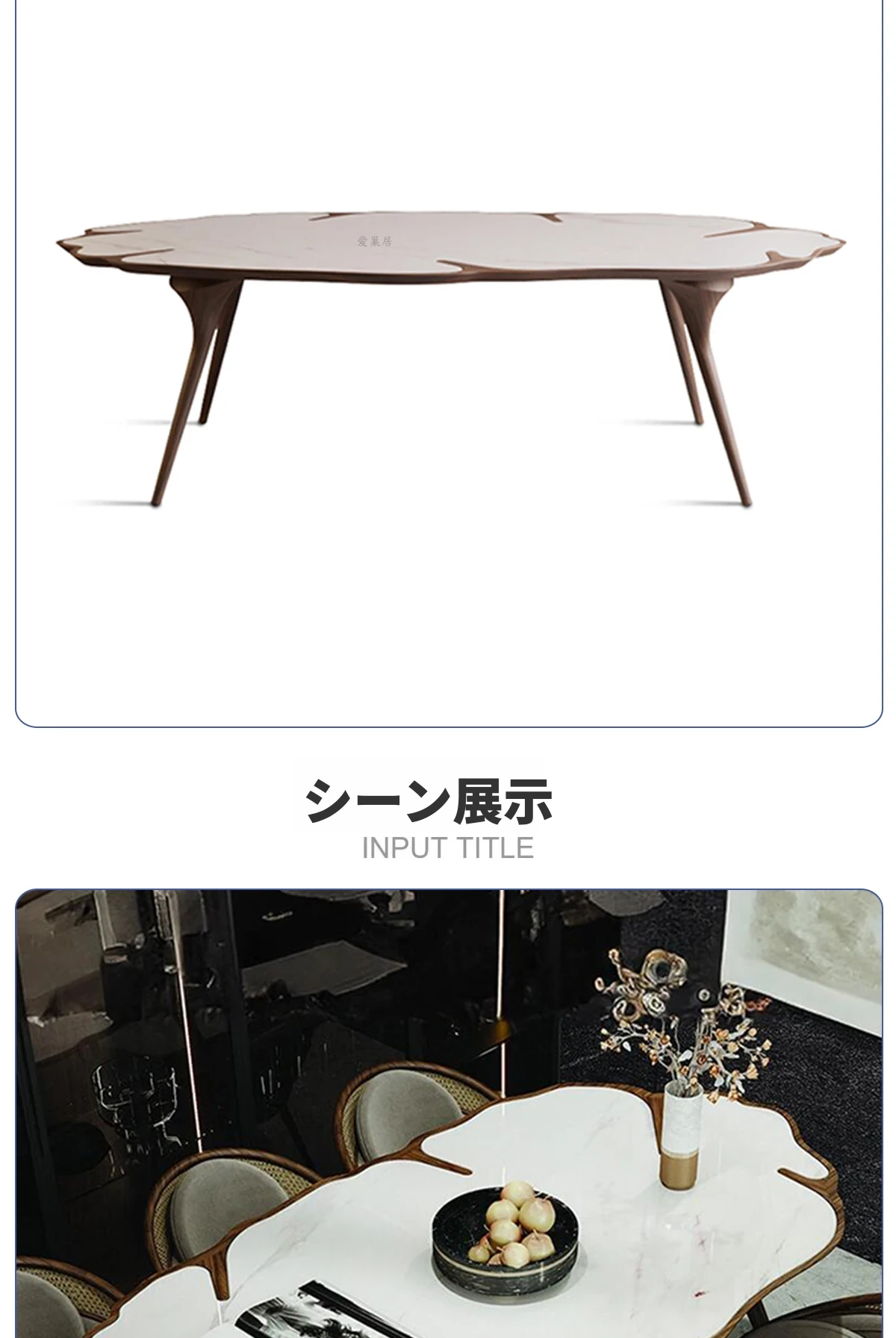 佐慕シンプルスタイルの超クリスタルストーン燕尾型スクエアテーブル、ラグジュアリーな岩板製ダイニングテーブル。小型住宅に最適な大理石の長方形テーブルで、スタイリッシュな食卓を演出します!