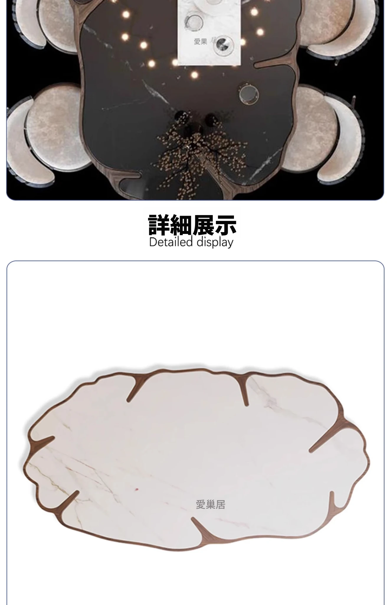 水滴型天然大理石テーブル - フランス風のラグジュアリーでミニマルなデザイン、別荘や豪邸にぴったりの贅沢なダイニングテーブル。洗練された美しさで、特別なひとときを演出します。