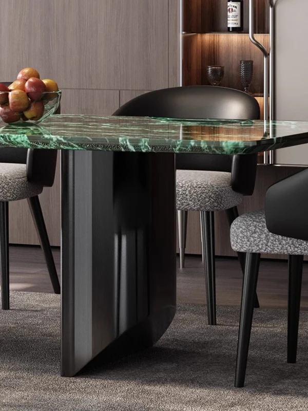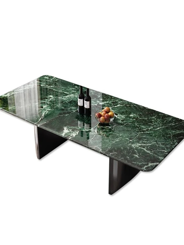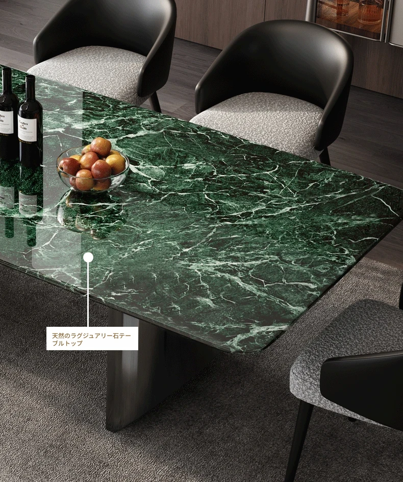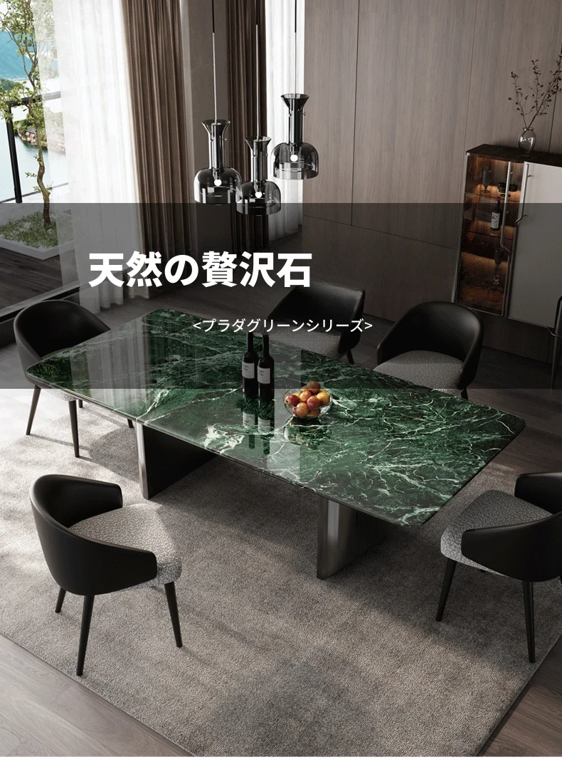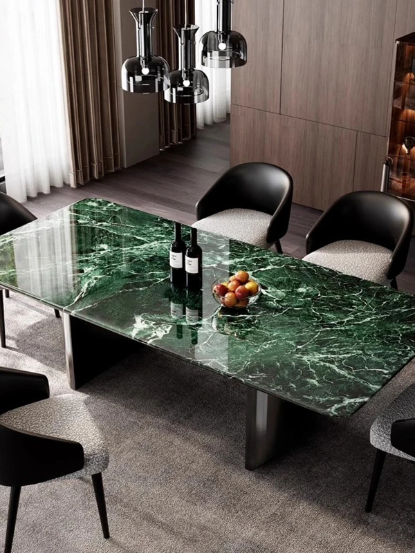 ラグジュアリーな天然素材 プラダグリーンの大理石ダイニングテーブル シンプルで洗練された長方形デザイン 家庭用に最適なスタイリッシュな食卓セット