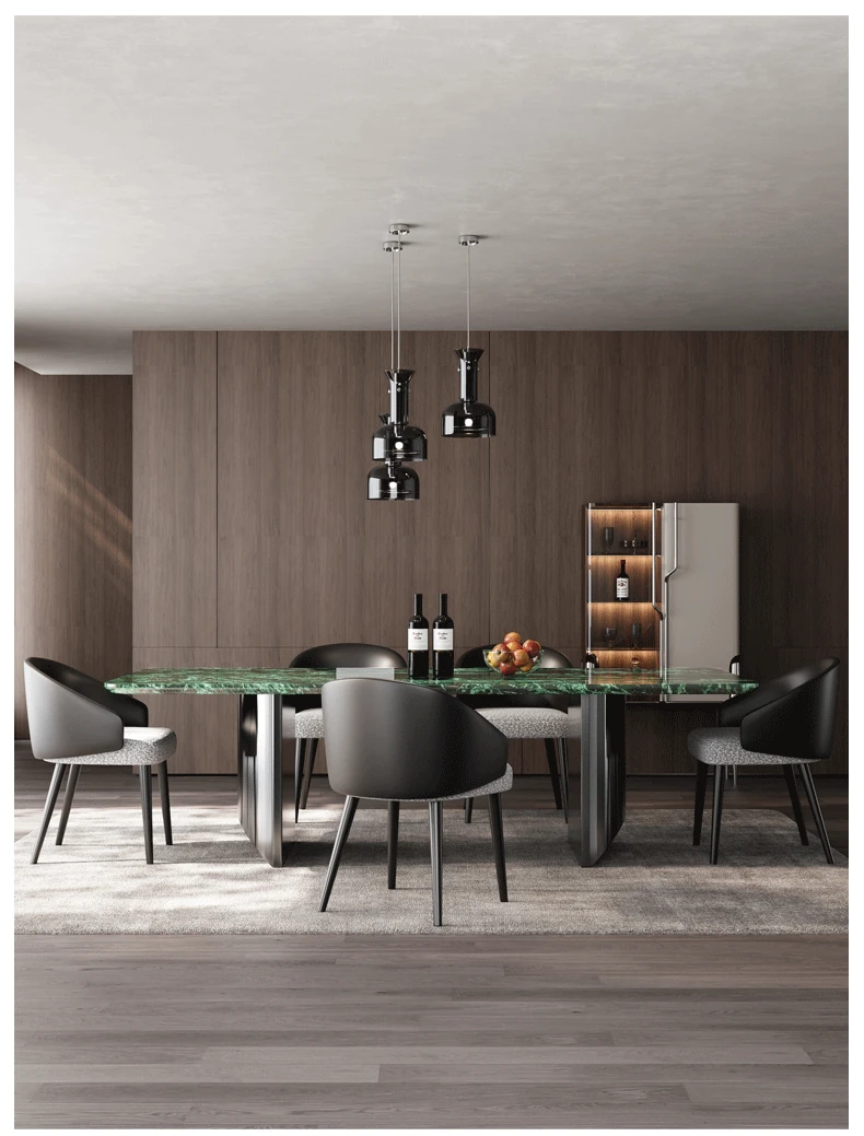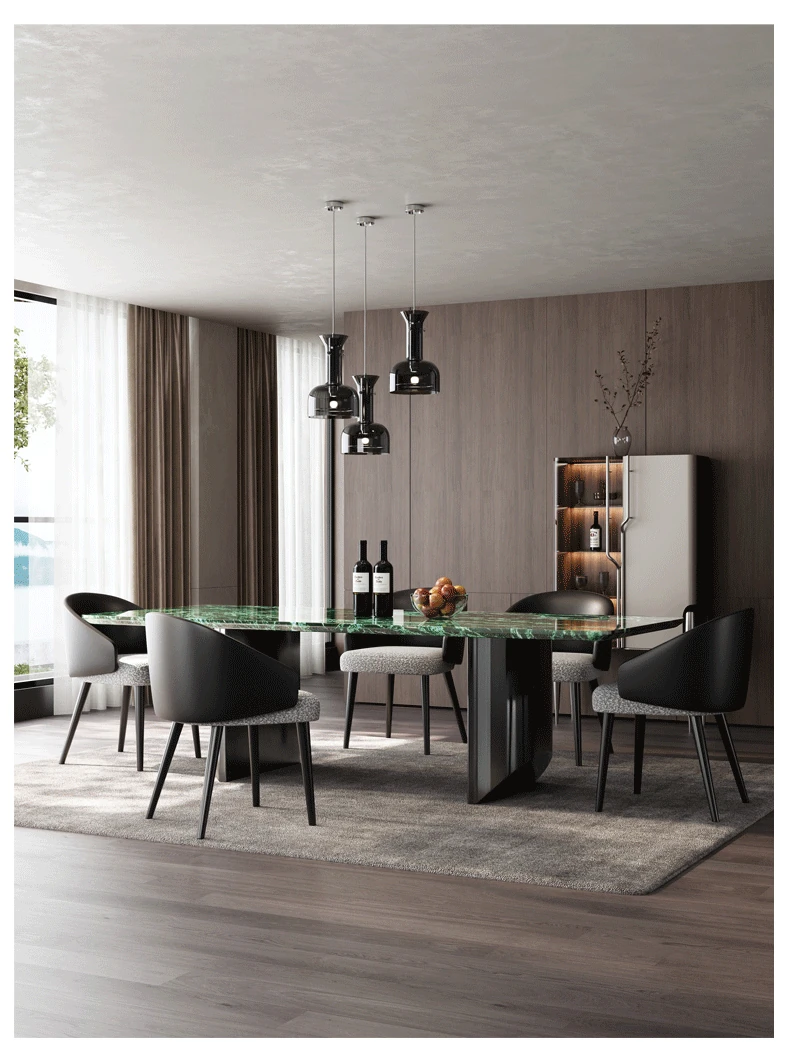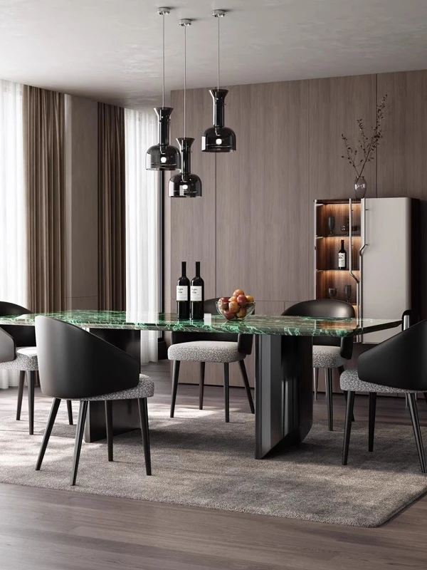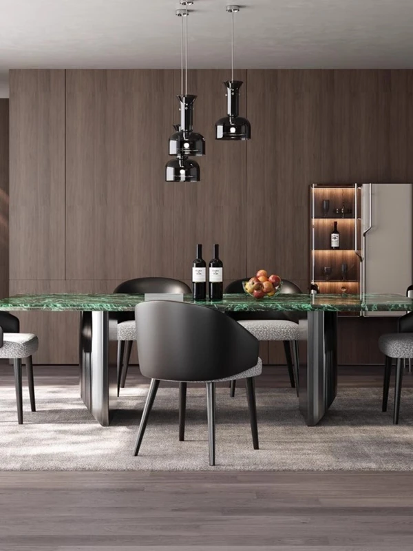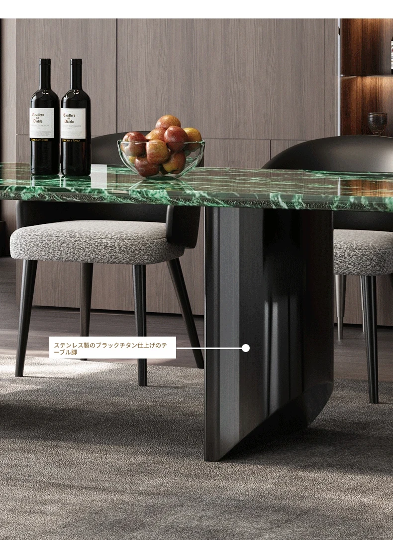 ラグジュアリーな天然素材 プラダグリーンの大理石ダイニングテーブル シンプルで洗練された長方形デザイン 家庭用に最適なスタイリッシュな食卓セット