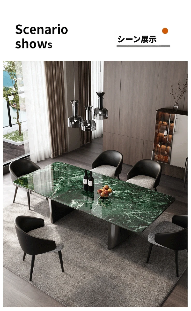 200*90CMダイニングテーブル+ダイニングチェア*8脚/天然ラグジュアリー石プラダグリーン 【偽品は10倍返し】