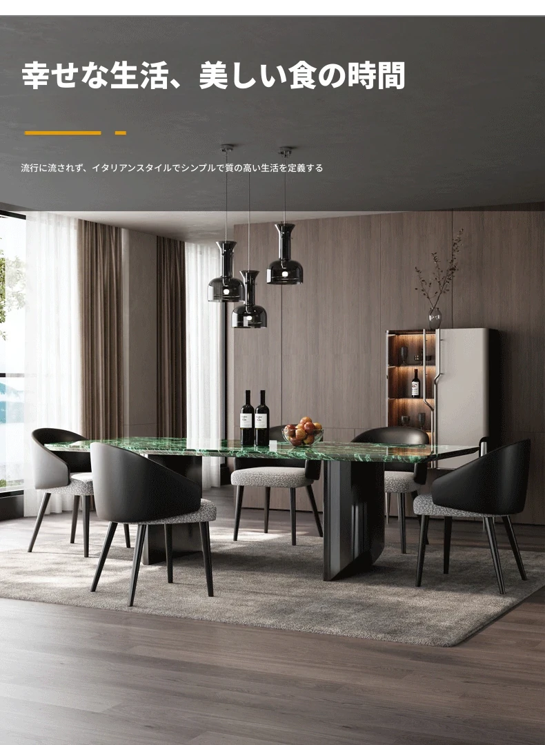 200*90CMダイニングテーブル+ダイニングチェア*6脚/天然ラグジュアリー石プラダグリーン 【偽品は10倍返し】