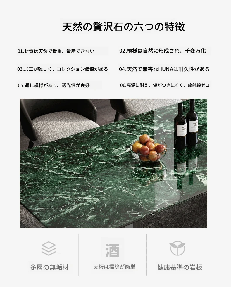 180*90CMダイニングテーブル+ダイニングチェア*6脚/天然ラグジュアリー石プラダグリーン 【偽品は10倍返し】