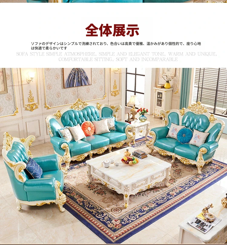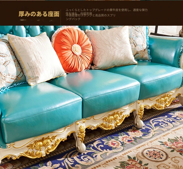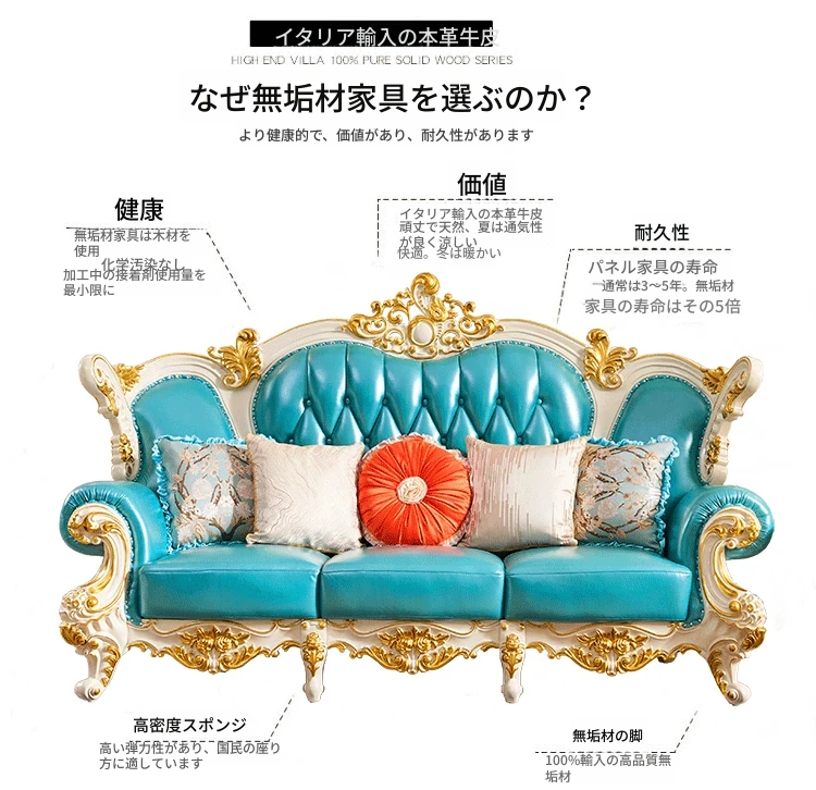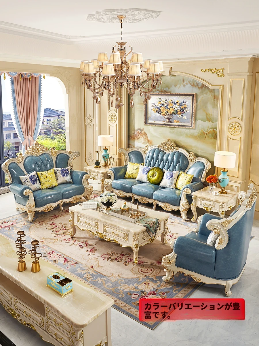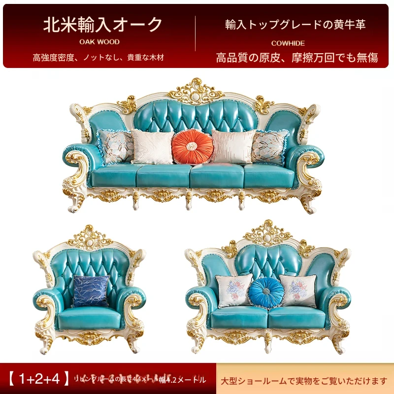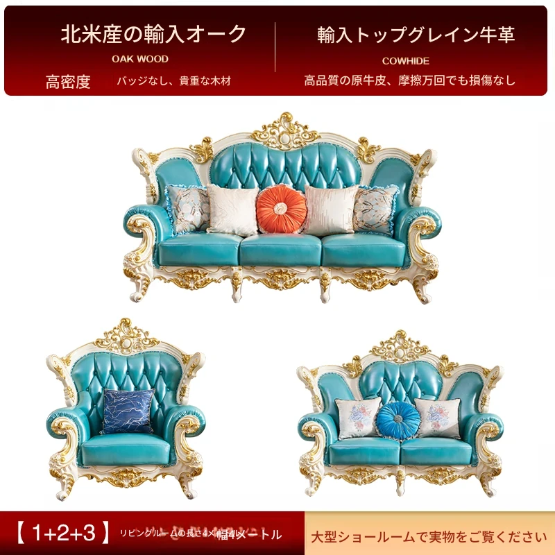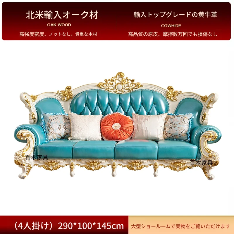 豪華な欧州スタイルの本革ソファ1234組み合わせ!高級ヴィラのリビングに最適な新作無垢材家具。広々とした空間を演出し、贅沢なひとときを提供します。