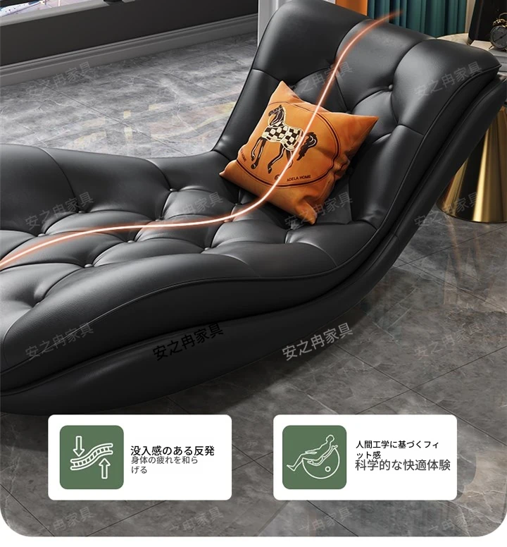 高級感溢れる本革製の貴妃椅子!現代的でシンプルなデザインが、小さなリビングや寝室にぴったり。贅沢なひとときを提供する美人タタミソファ。あなたの空間を特別に演出します!