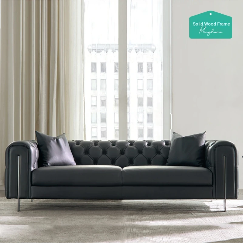 Luxury Italian Style Leather Sofa for Living Room - Modern Two and Three-Seater Design, Perfect for Upscale Interiors