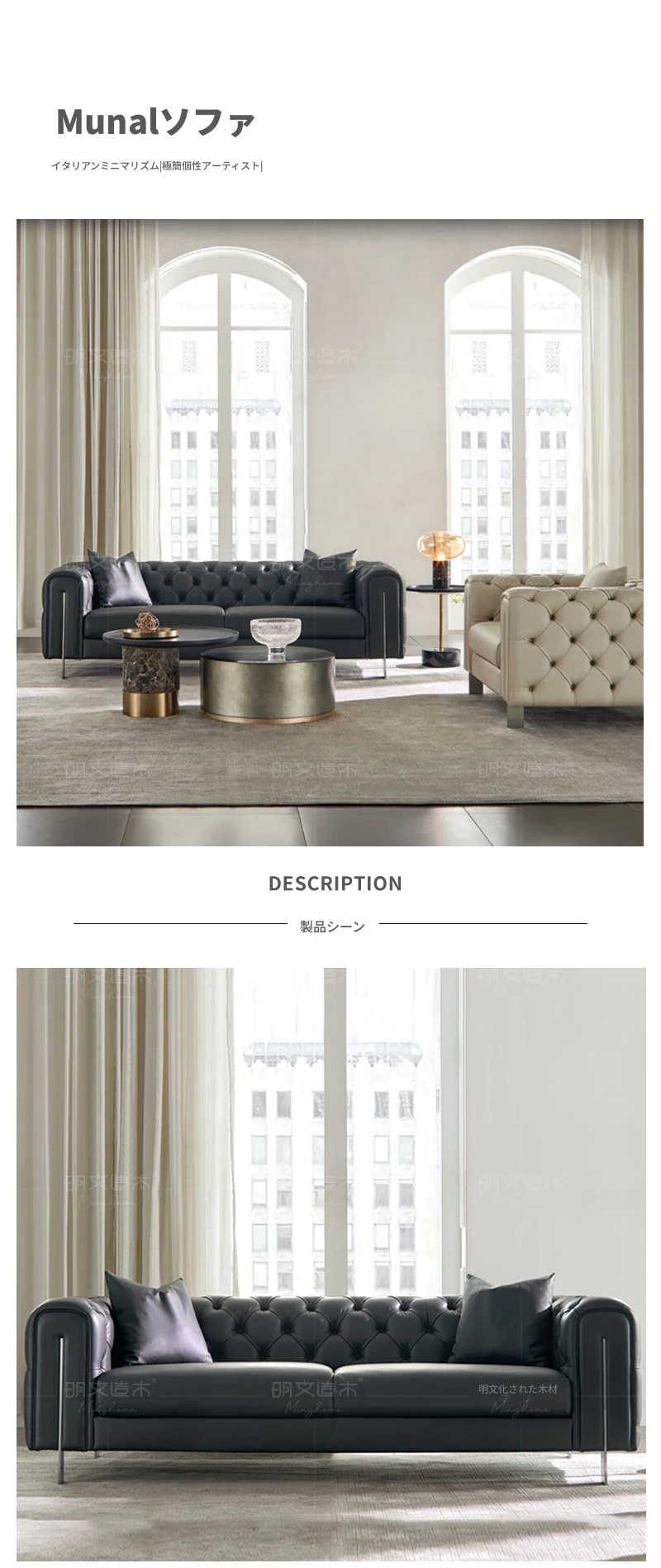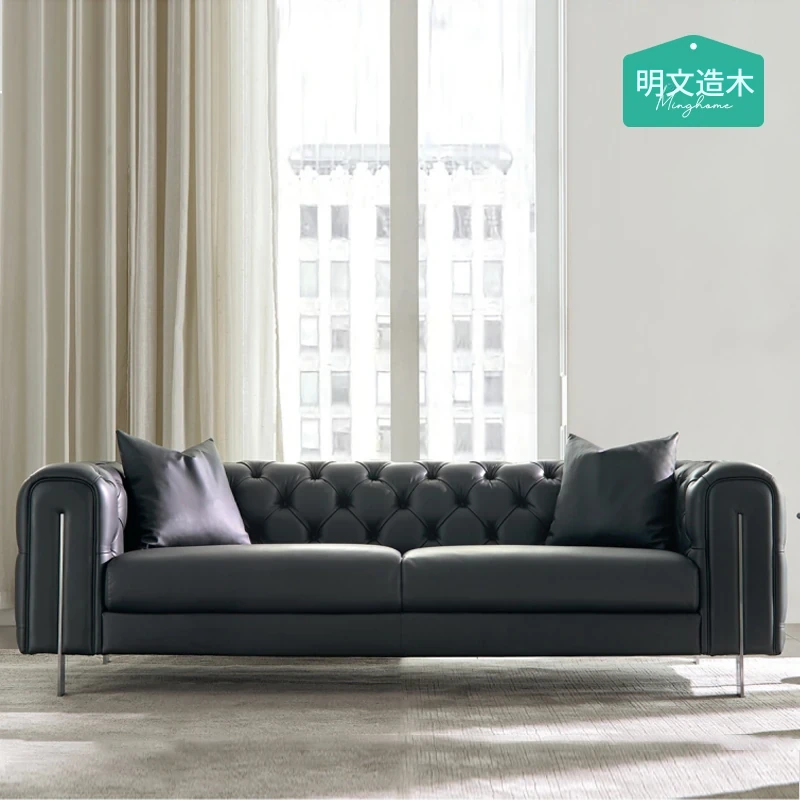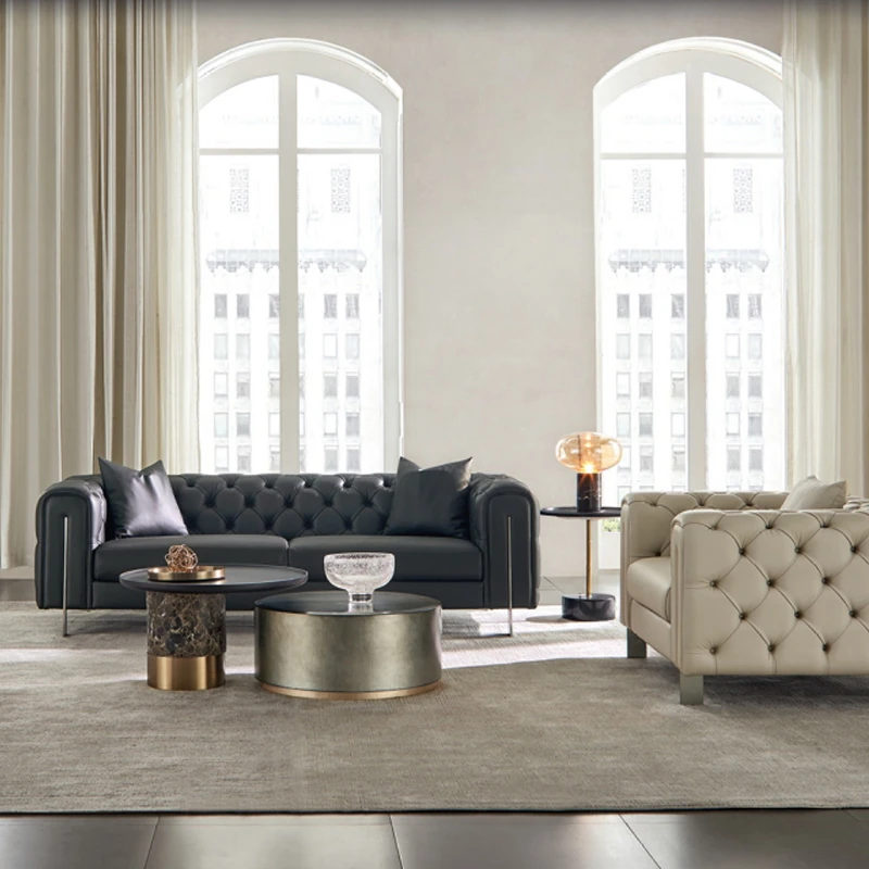 明文造木イタリアンスタイル軽奢大平面リビング用本革ソファー 二人掛け・三人掛け対応 - 上質なデザインで、居心地と贅沢さを両立。あなたのリビングを特別な空間に演出します。