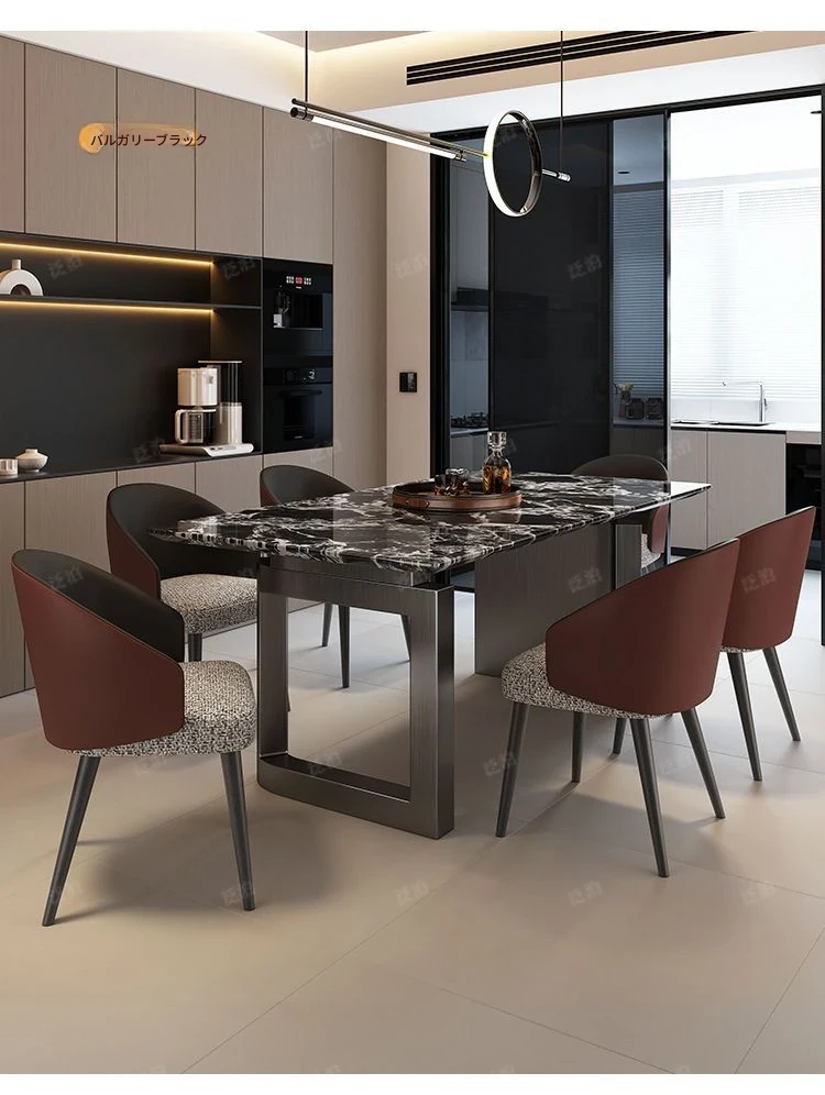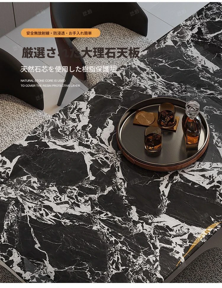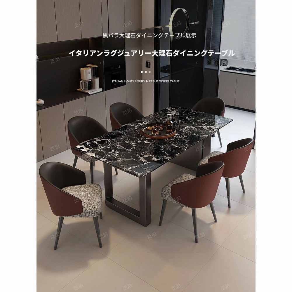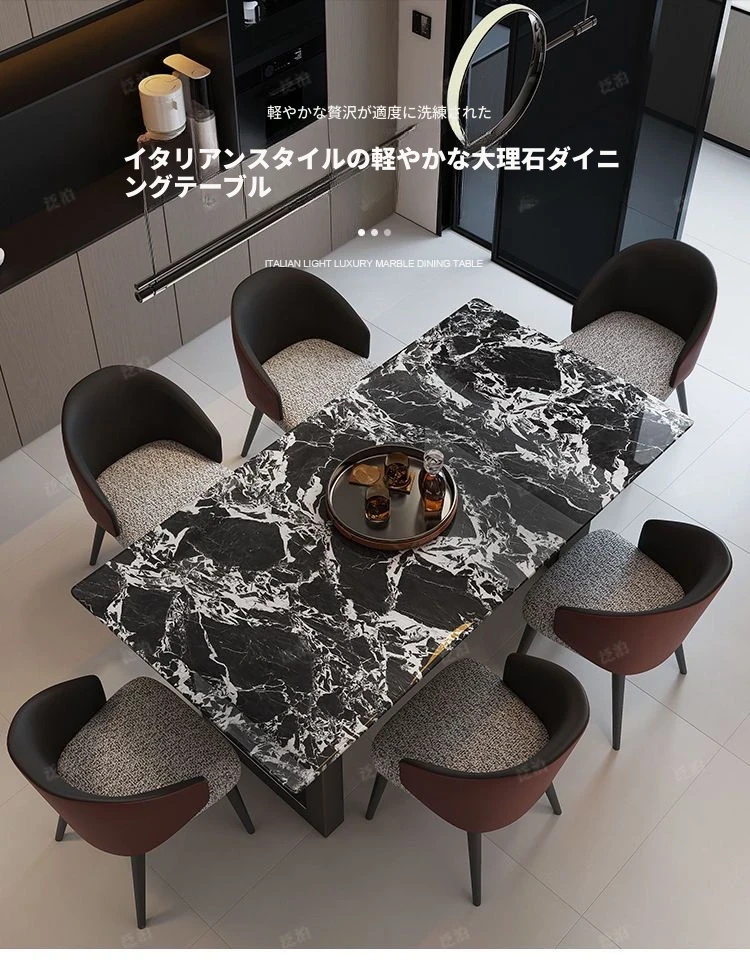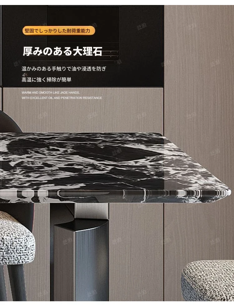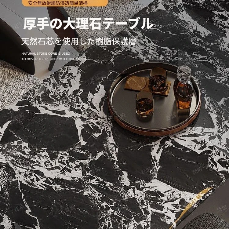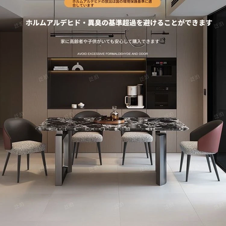 高級感溢れる大理石製ダイニングテーブル&チェアセット - モダンでシンプルなデザイン、全底板サポートで安定性抜群!インスタ映えする長方形スタイルで、リラックスした食卓を演出します。