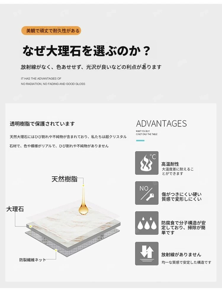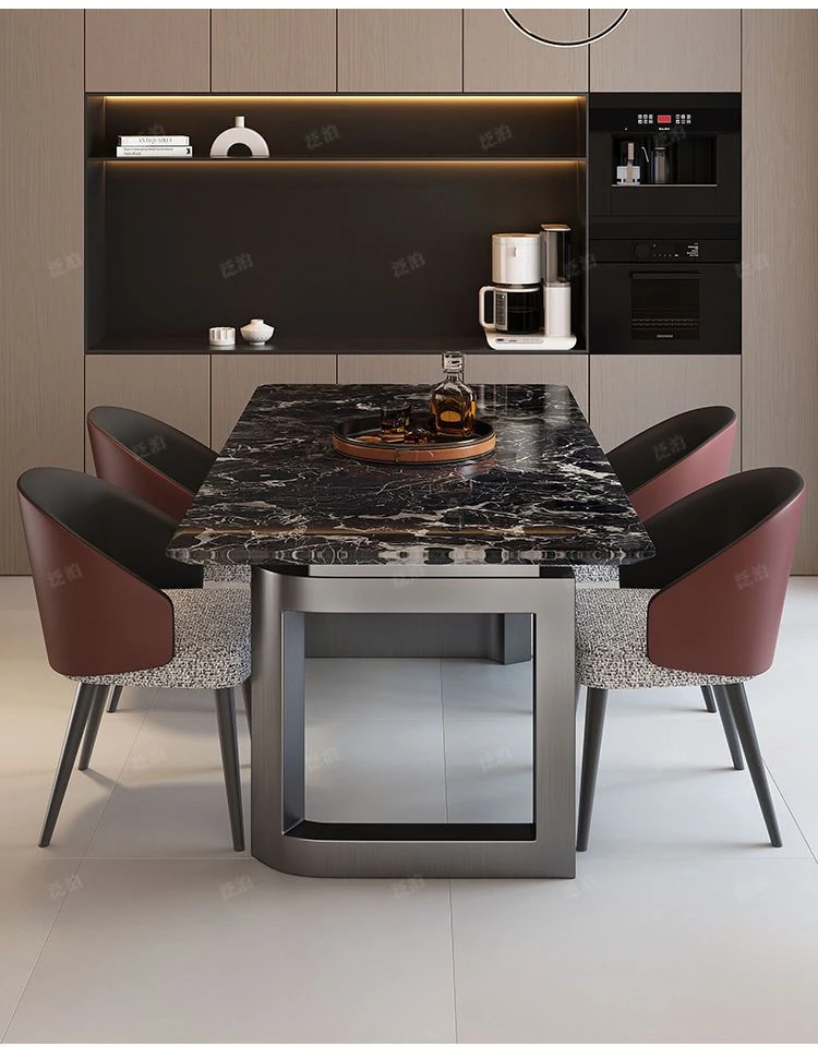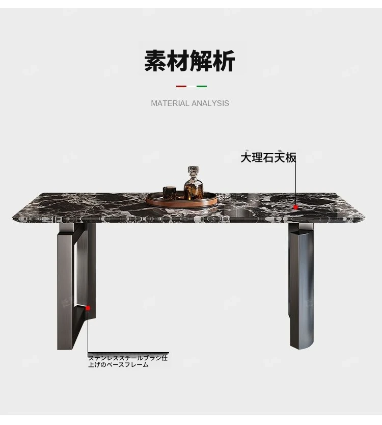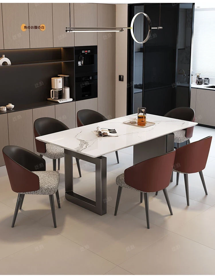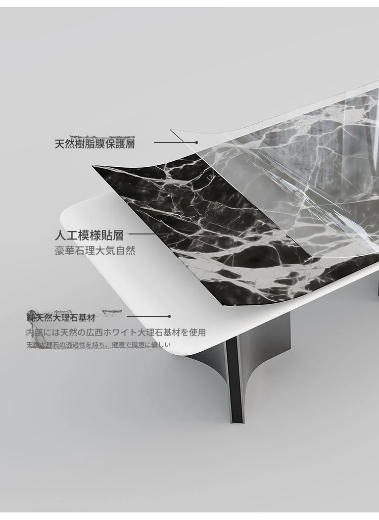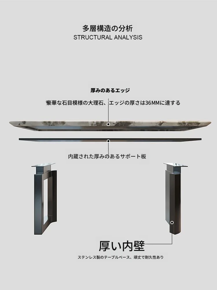 高級感溢れる大理石製ダイニングテーブル&チェアセット - モダンでシンプルなデザイン、全底板サポートで安定性抜群!インスタ映えする長方形スタイルで、リラックスした食卓を演出します。