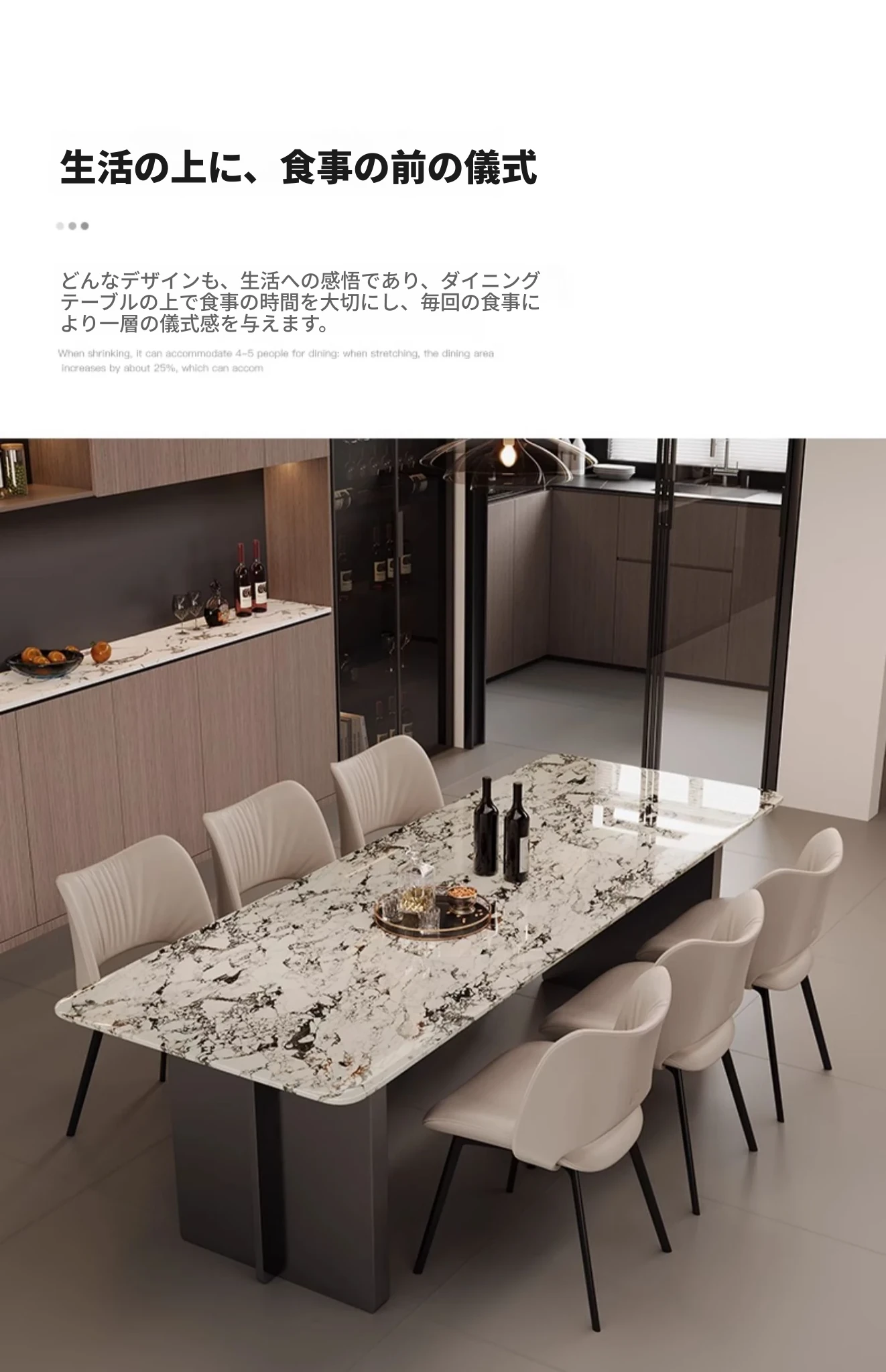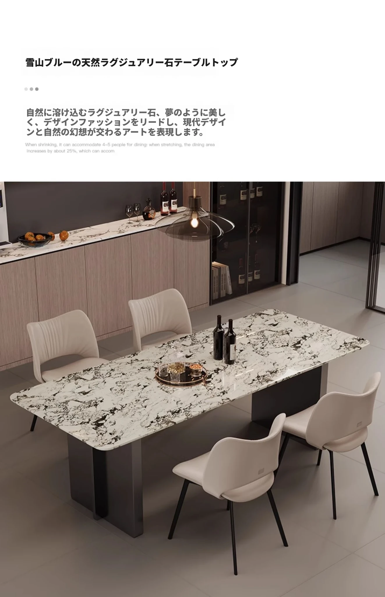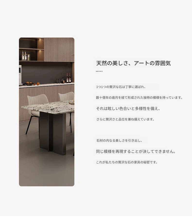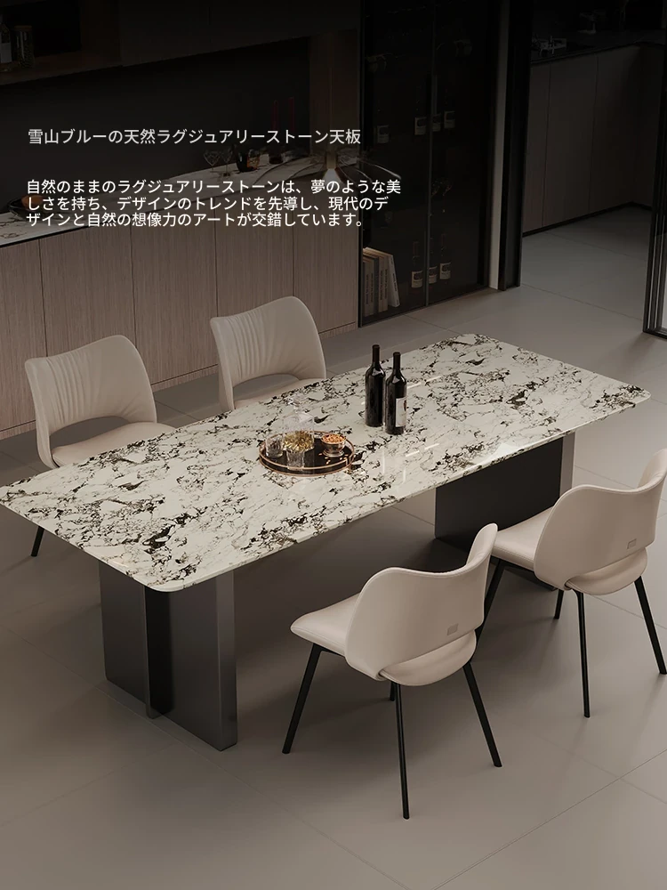 天然石の贅沢なダイニングテーブル | モダンなシンプルデザイン | 高級感あふれる大理石製 | 家庭用に最適な長方形テーブル | あなたの食卓を華やかに彩ります!