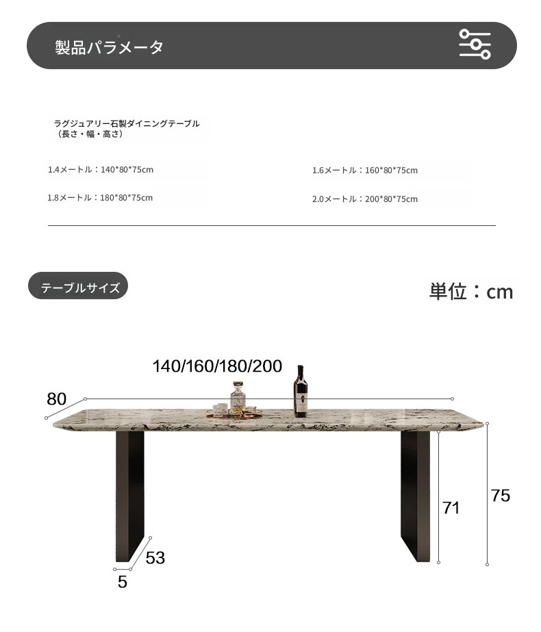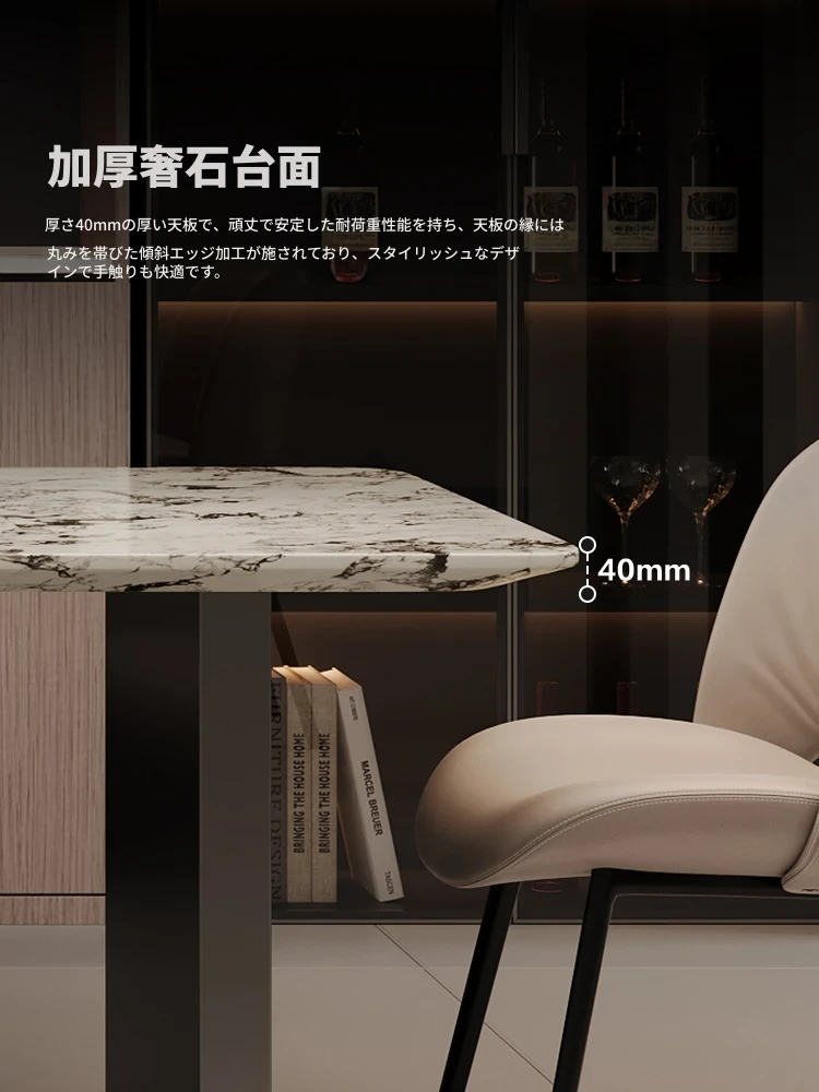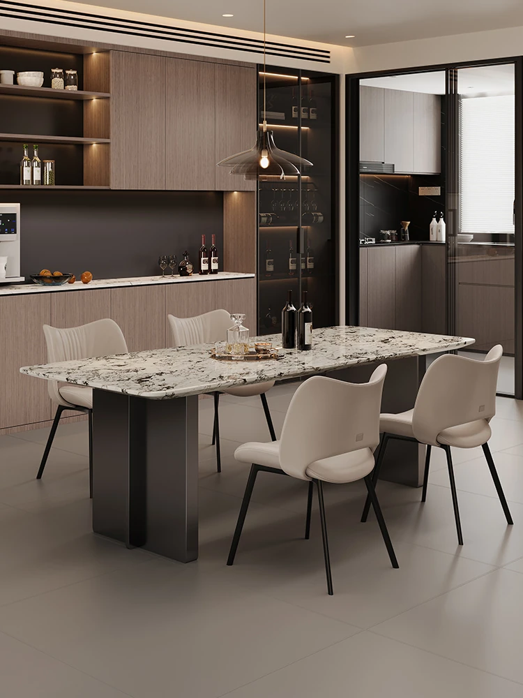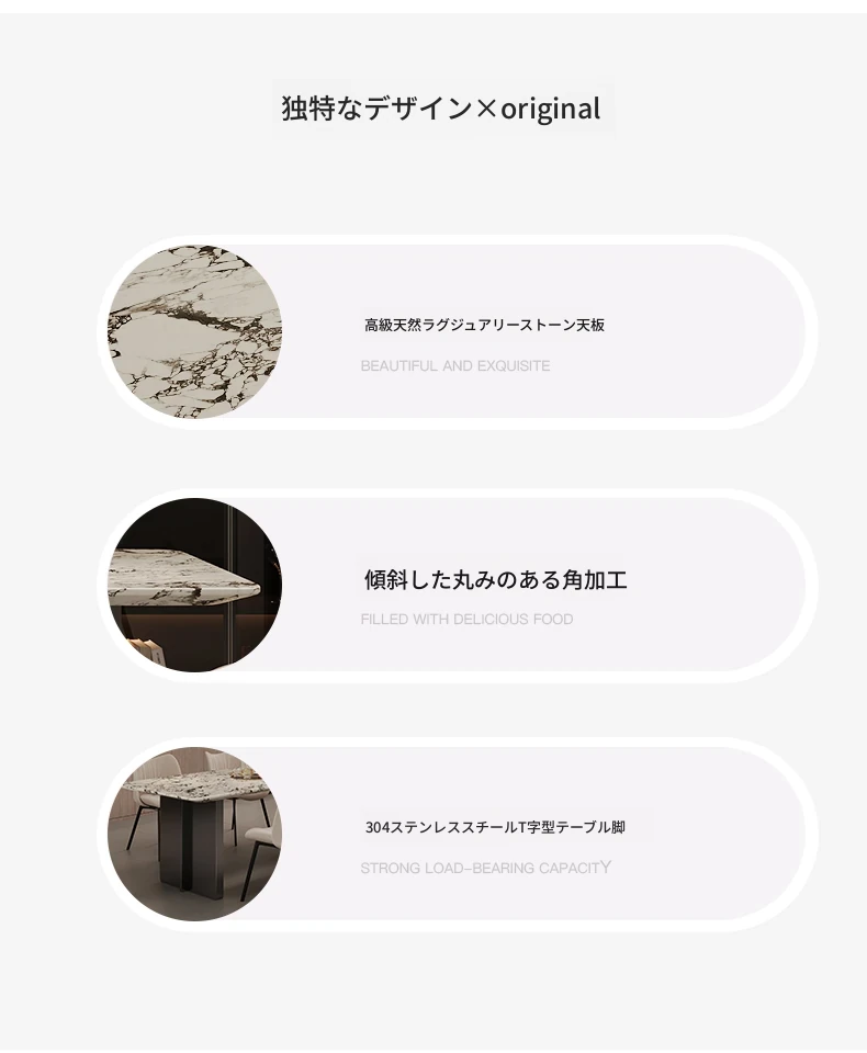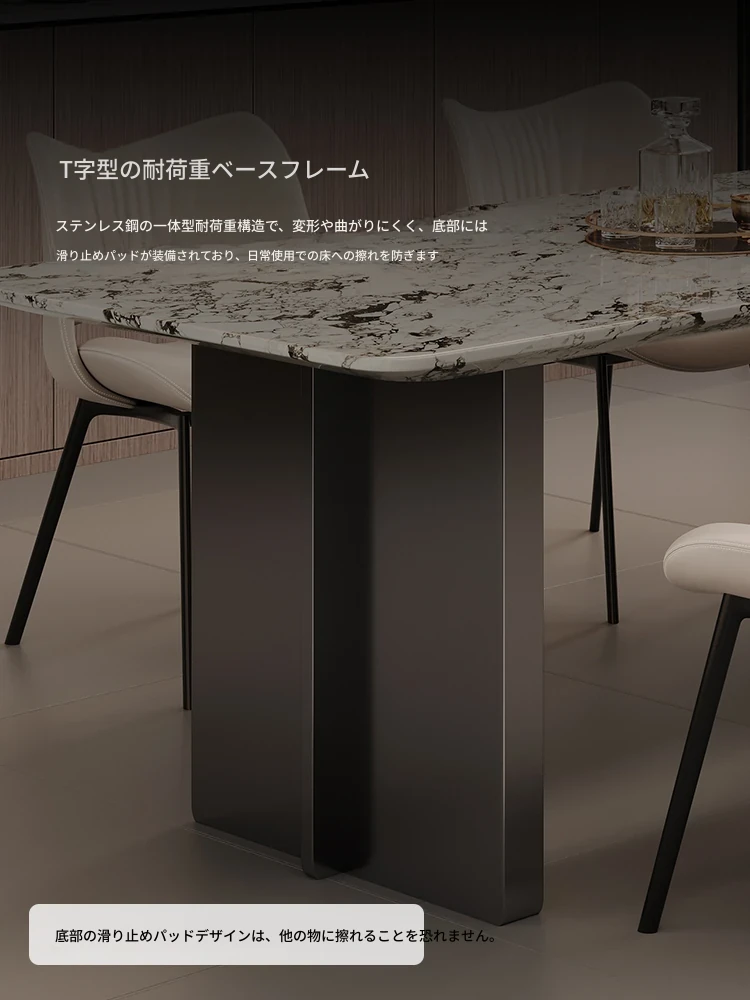 天然石の贅沢なダイニングテーブル | モダンなシンプルデザイン | 高級感あふれる大理石製 | 家庭用に最適な長方形テーブル | あなたの食卓を華やかに彩ります!