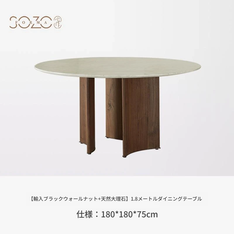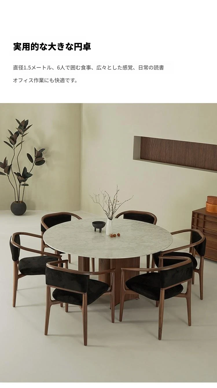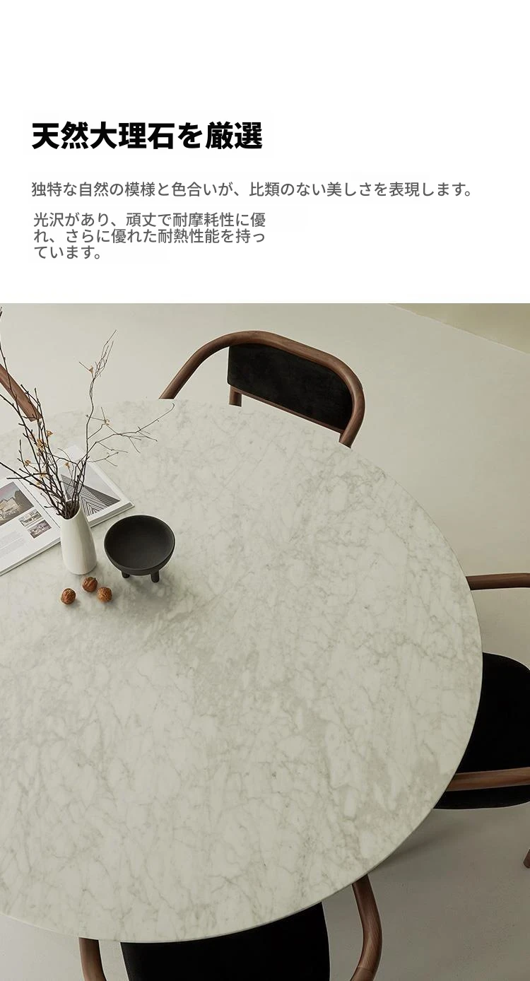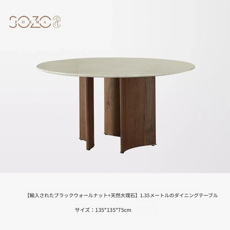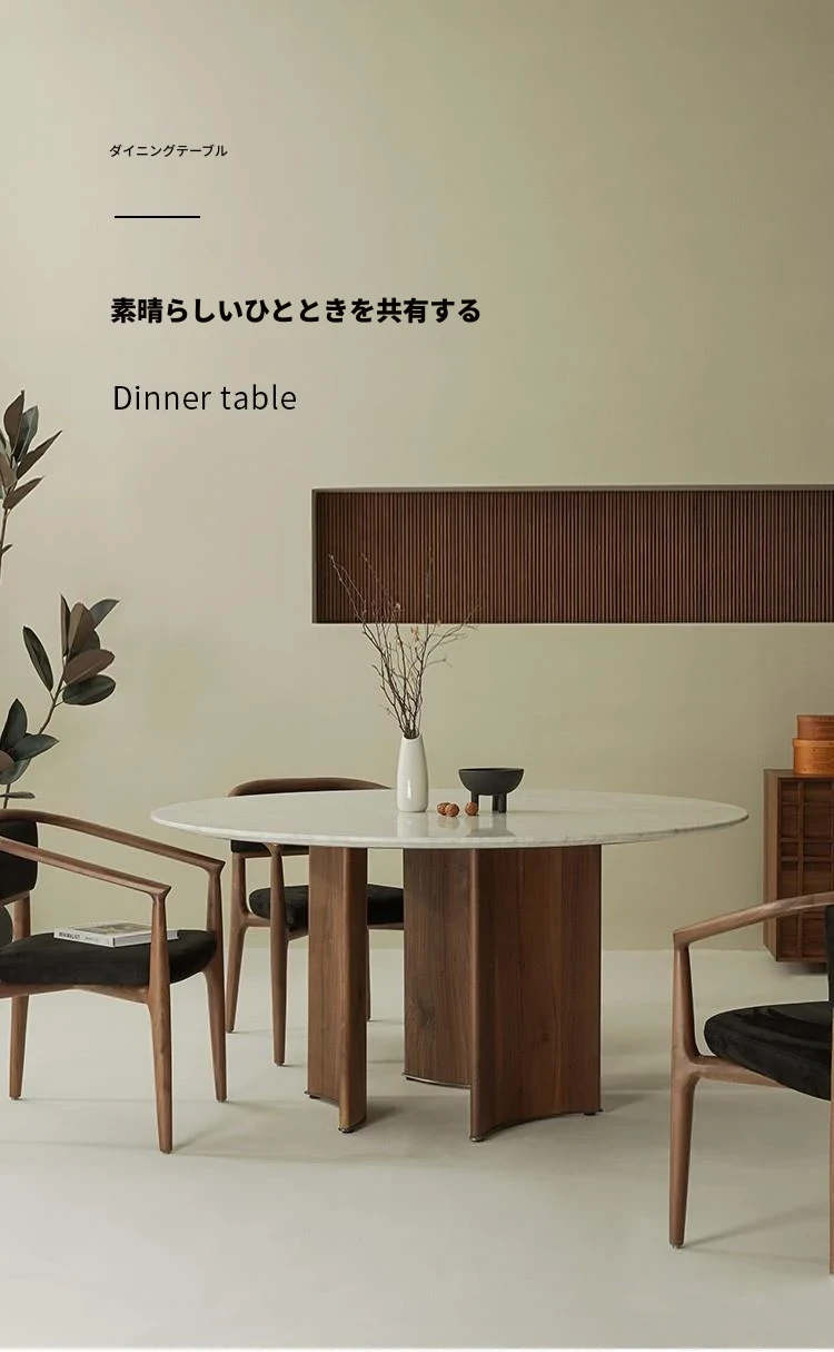 北米産ブラックウォルナットと大理石を使用したラウンドダイニングテーブル - 大型住宅向け、サイズ選べる1.35m / 1.5m / 1.8m!高級感溢れるデザインで、家族や友人との特別なひとときを演出します。