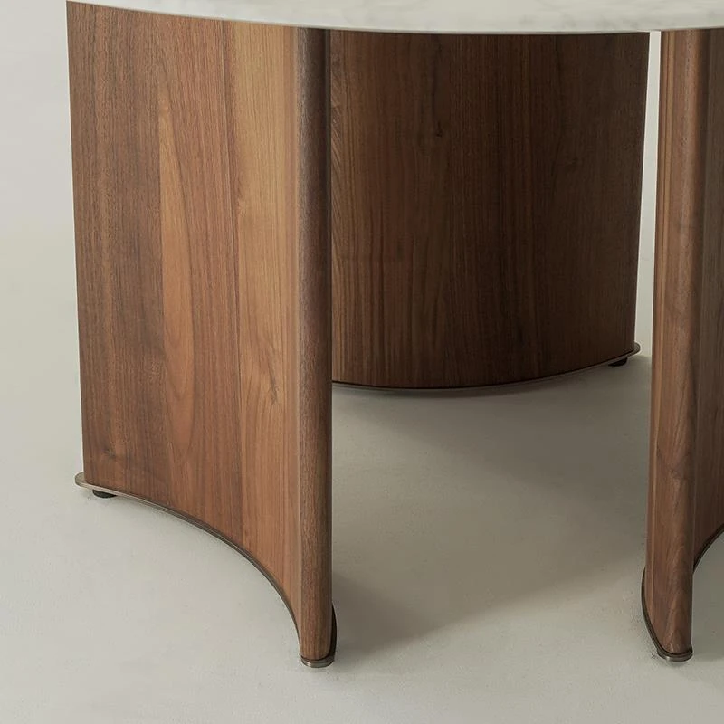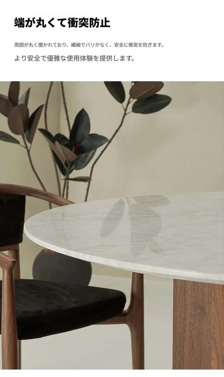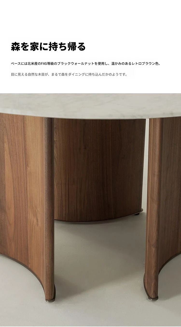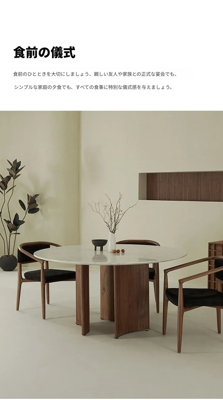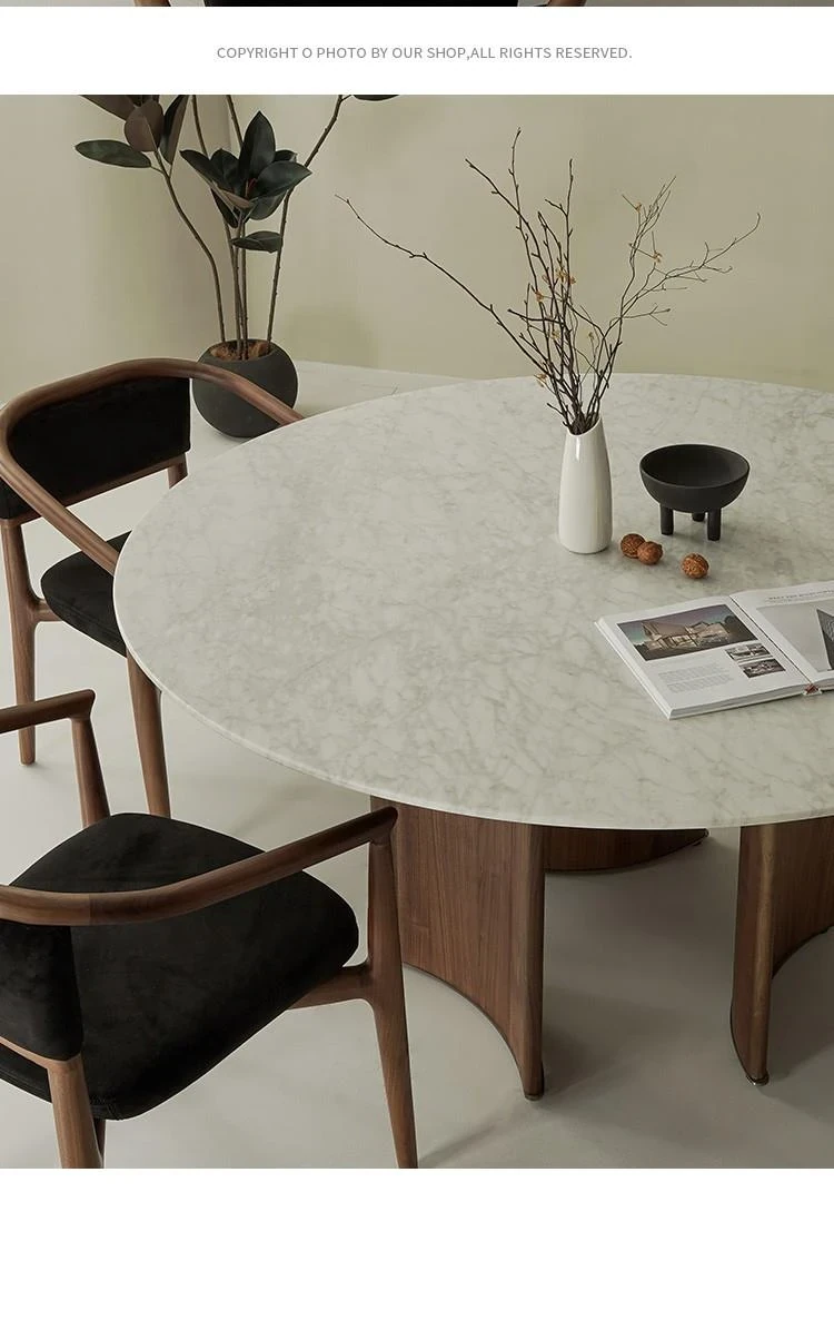 北米産ブラックウォルナットと大理石を使用したラウンドダイニングテーブル - 大型住宅向け、サイズ選べる1.35m / 1.5m / 1.8m!高級感溢れるデザインで、家族や友人との特別なひとときを演出します。