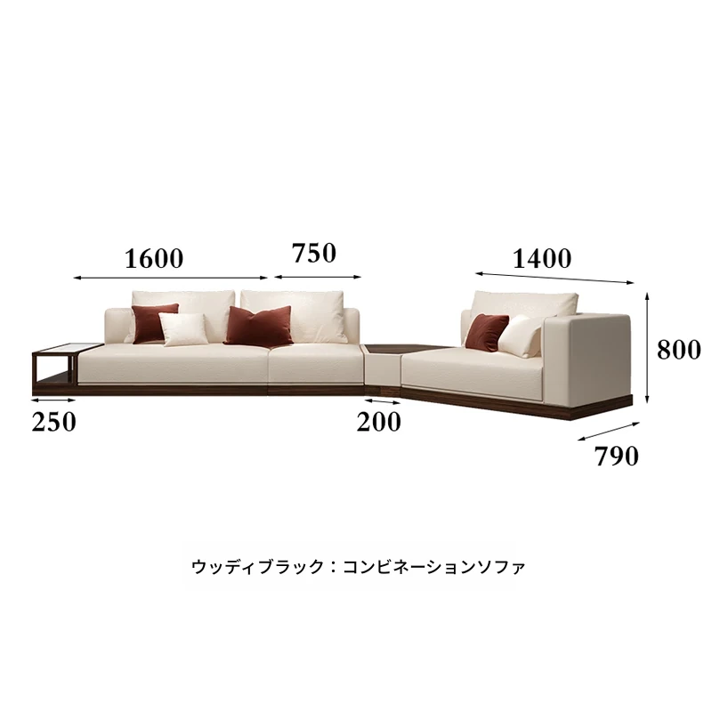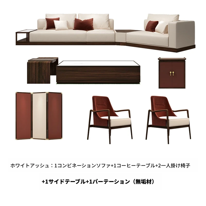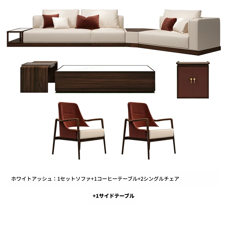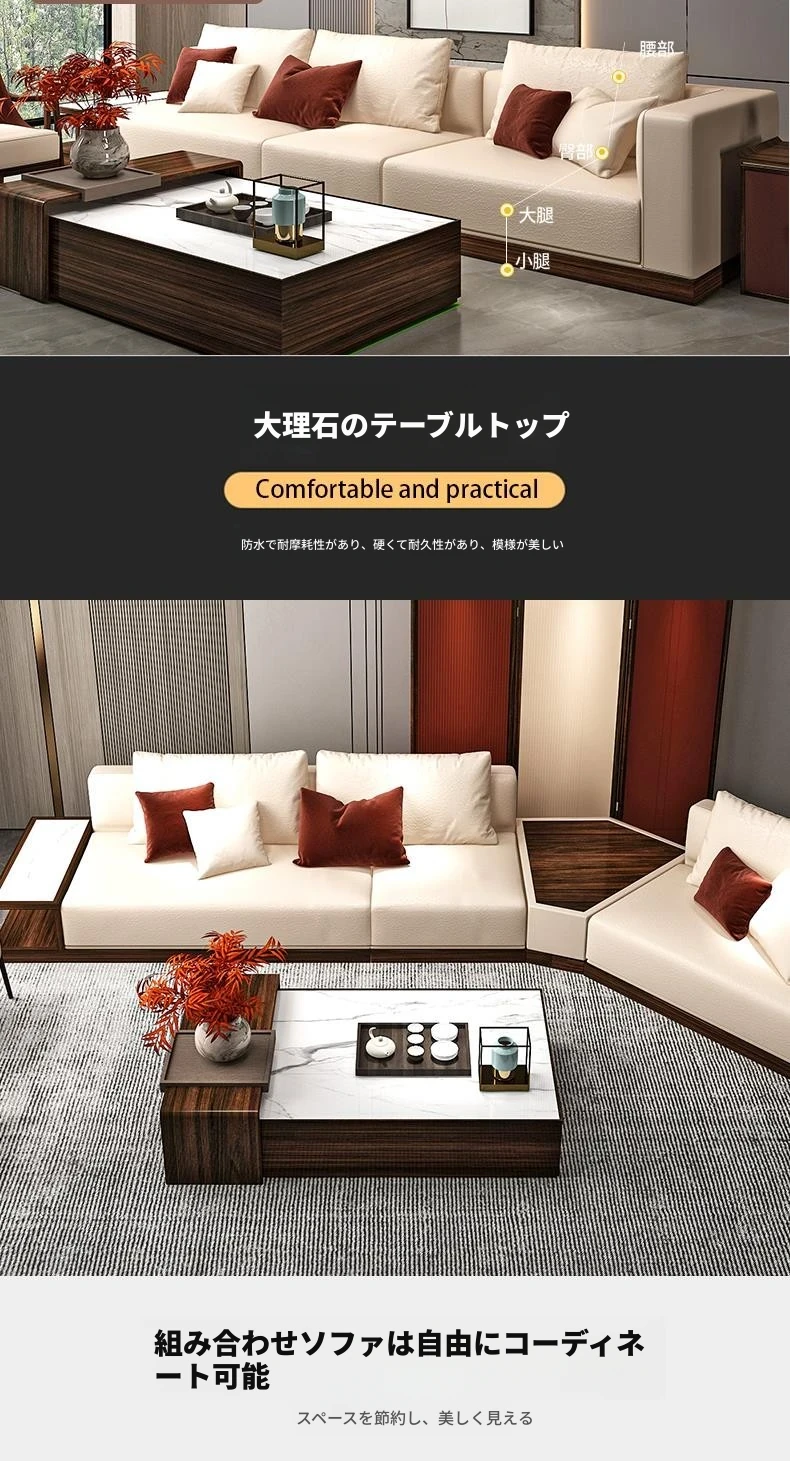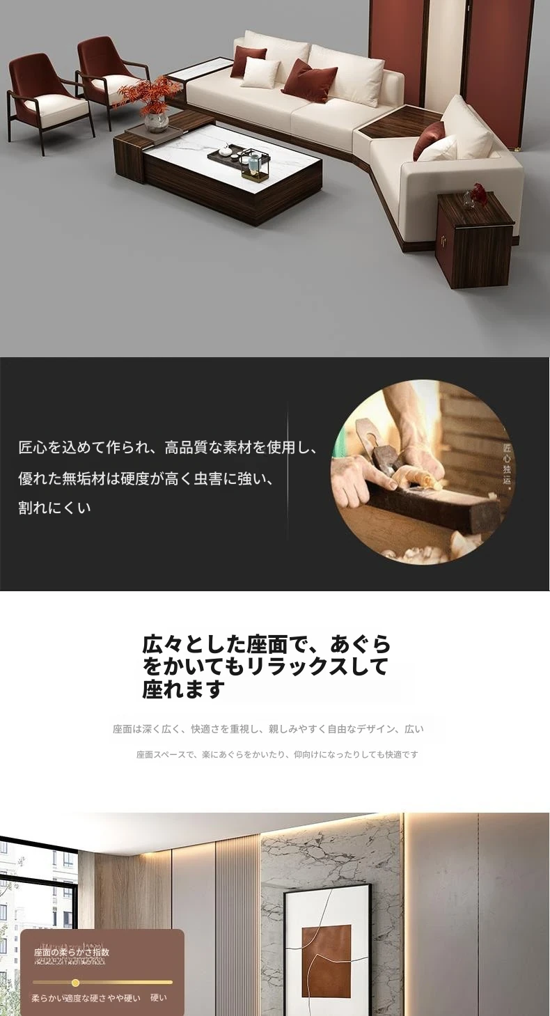 高級感溢れる無垢材ソファ|ウッド調の新中式デザイン|リビングルームに最適な布張りコーナーソファ|ヴィラや広々としたフラットタイプのお部屋にぴったり!