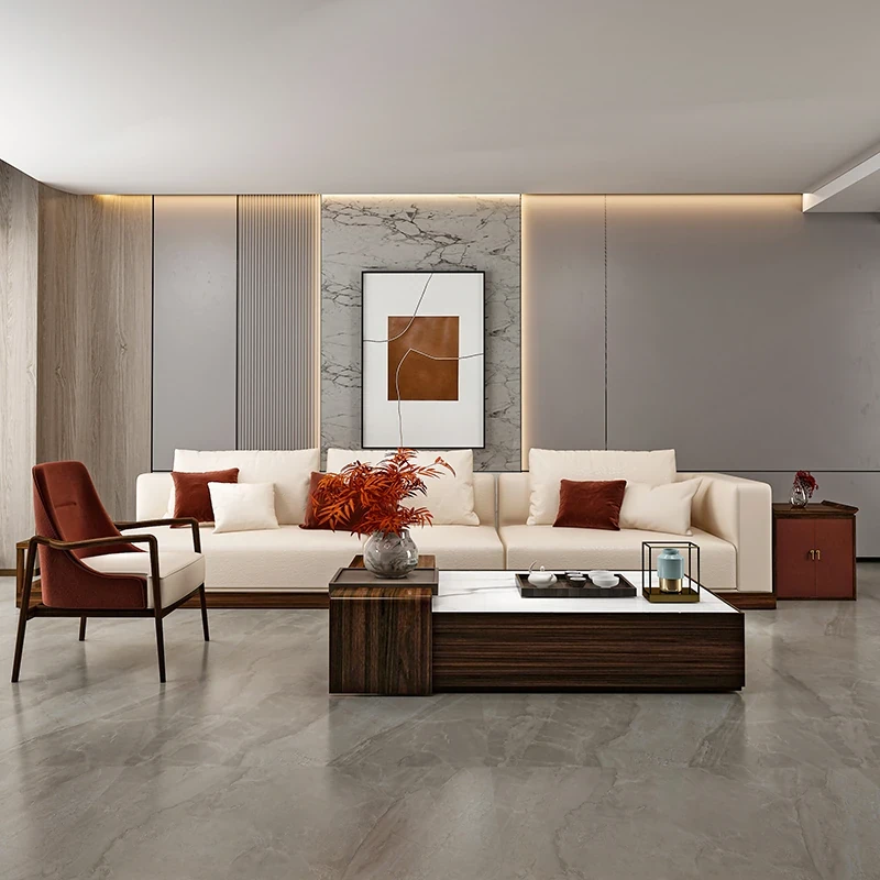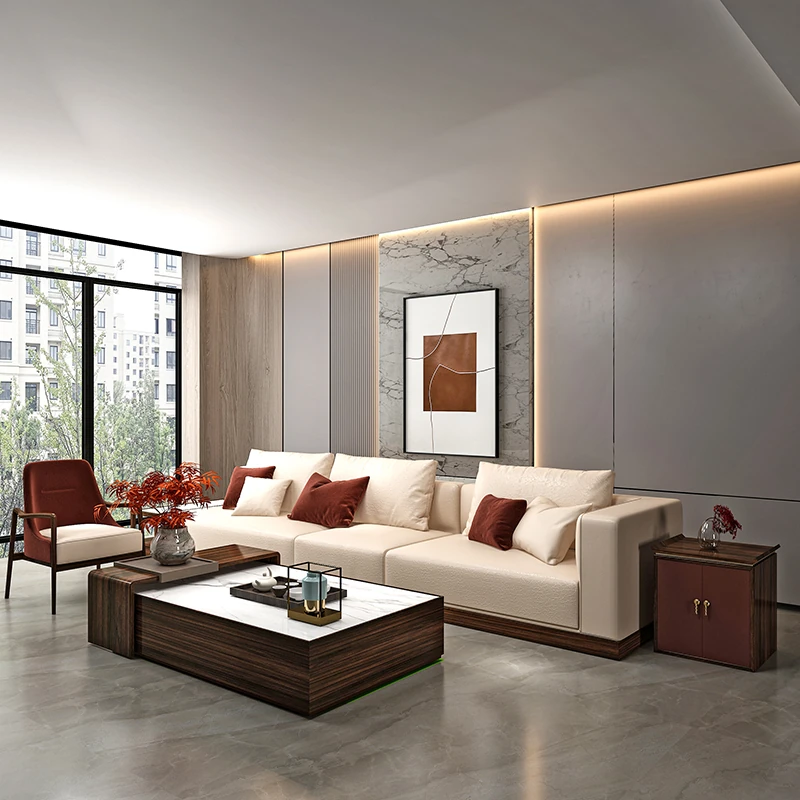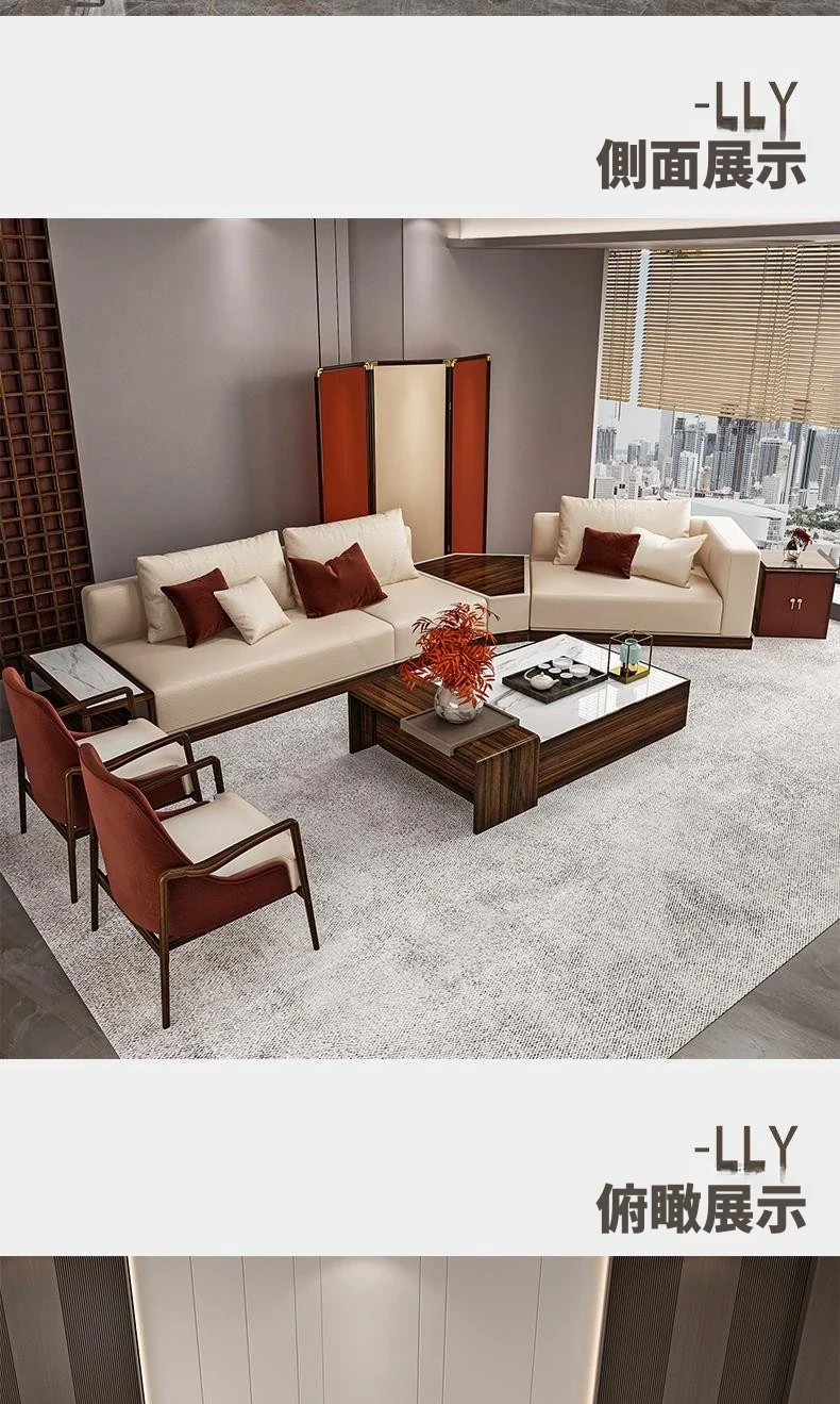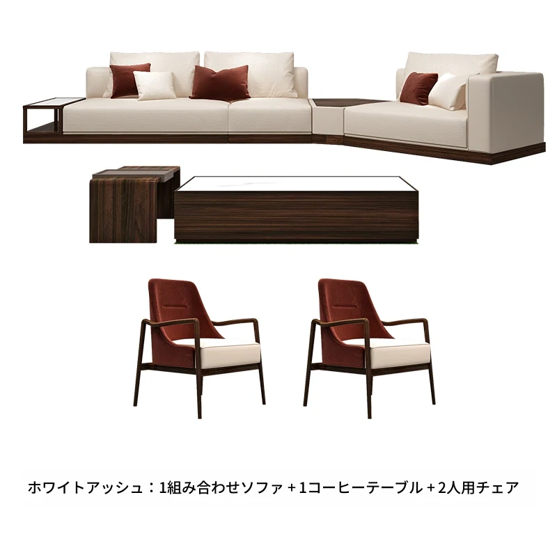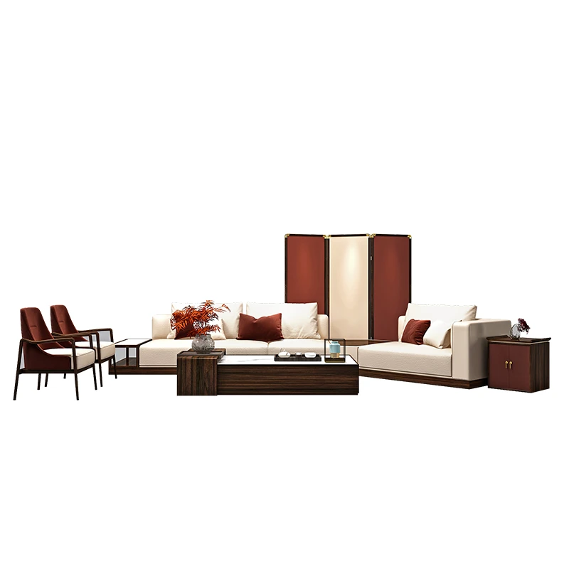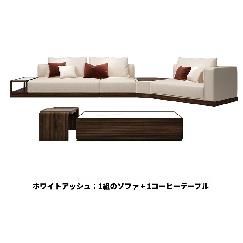 高級感溢れる無垢材ソファ|ウッド調の新中式デザイン|リビングルームに最適な布張りコーナーソファ|ヴィラや広々としたフラットタイプのお部屋にぴったり!