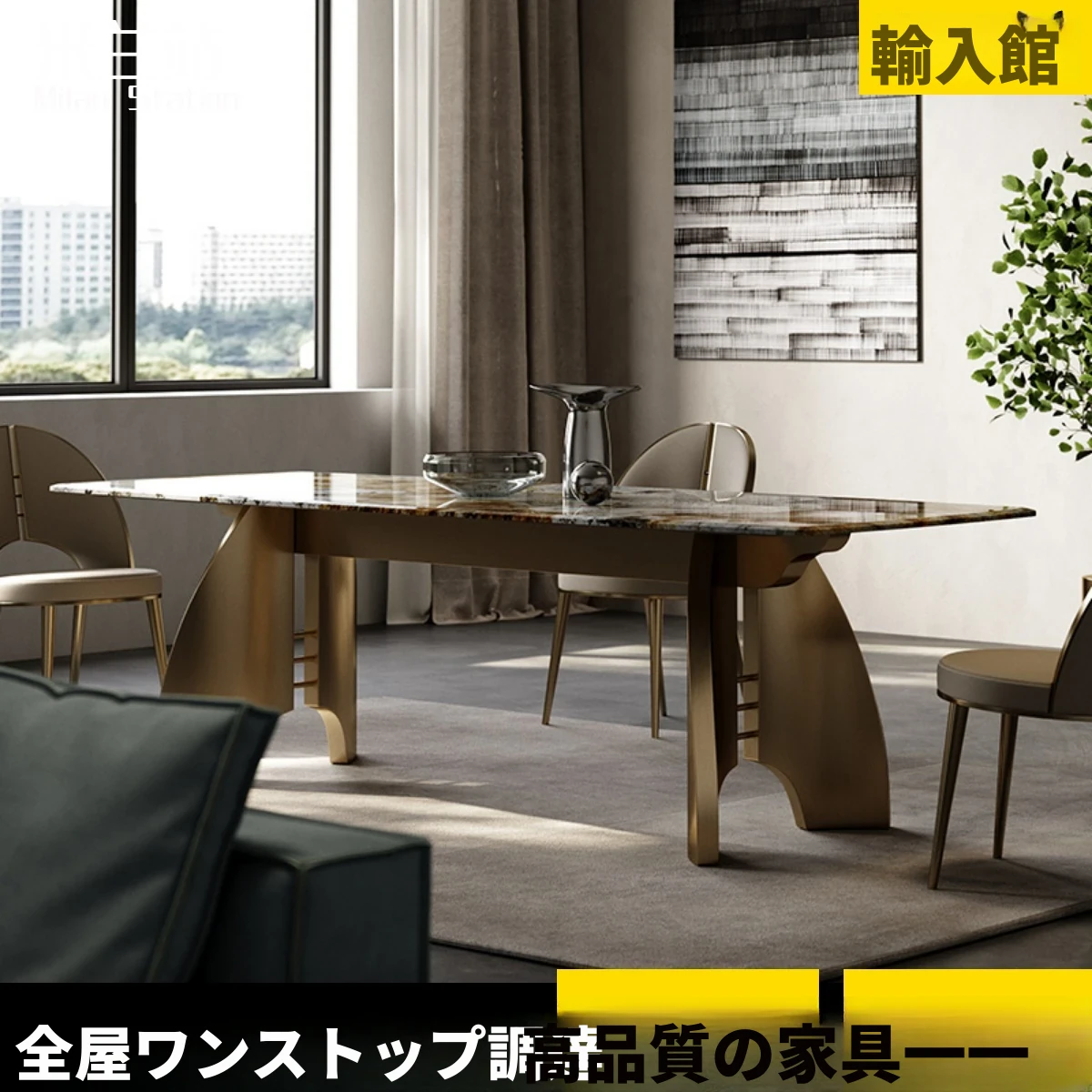 ダイニングテーブル/2.8M/パンドラ天然豪石/シャンパン
