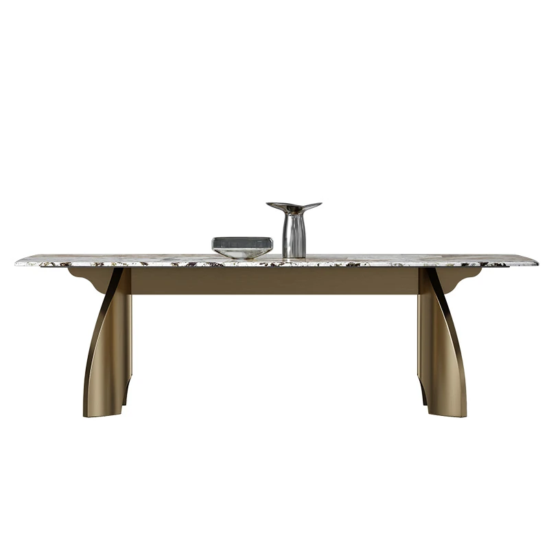 佐慕シンプルスタイルの超クリスタルストーン燕尾型スクエアテーブル、ラグジュアリーな岩板製ダイニングテーブル。小型住宅に最適な大理石の長方形テーブルで、スタイリッシュな食卓を演出します!