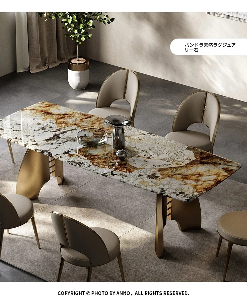 ダイニングテーブル/2.2M/パンドラ天然豪石/シャンパン