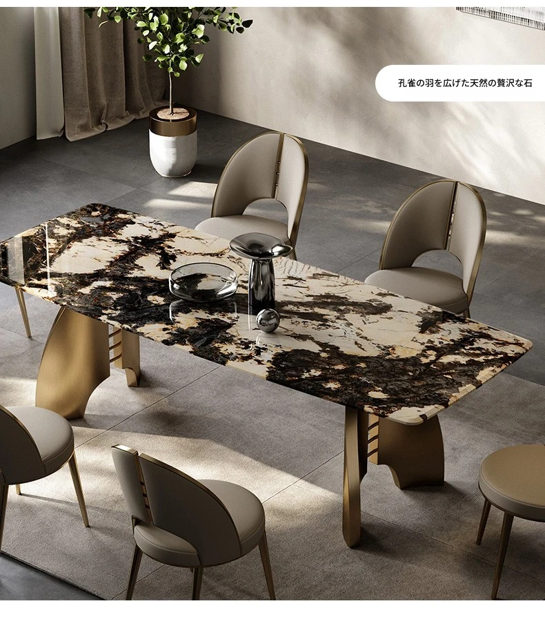 ダイニングテーブル/2.2M/孔雀開屏天然豪石/香