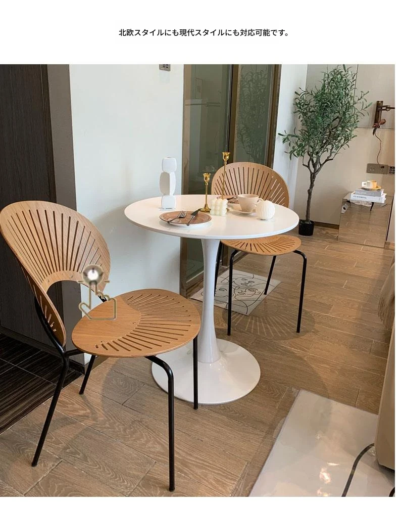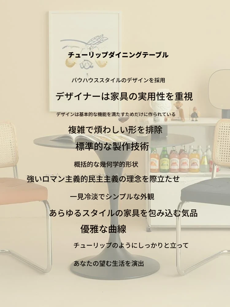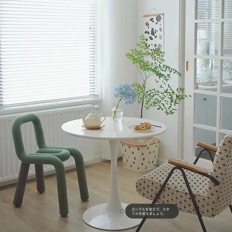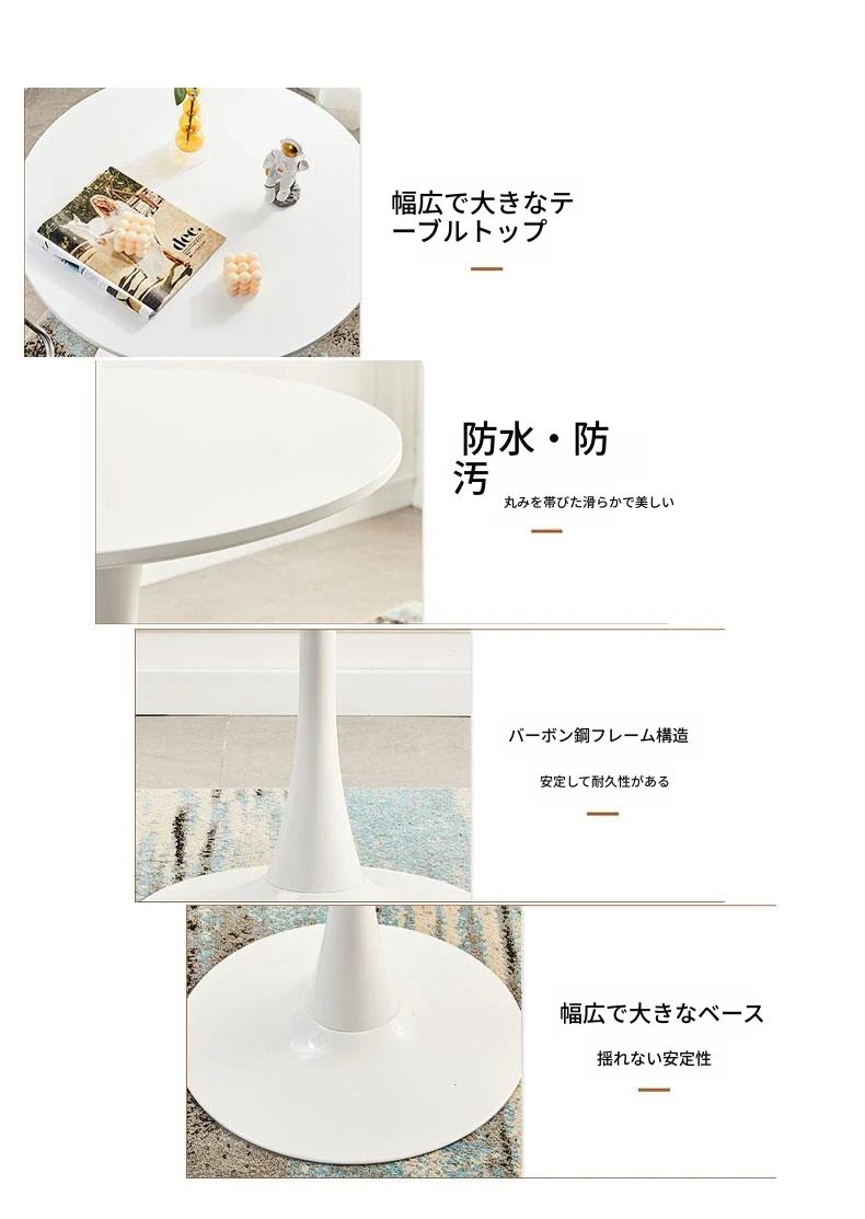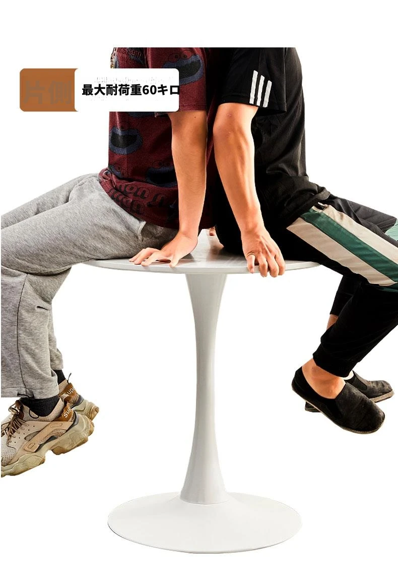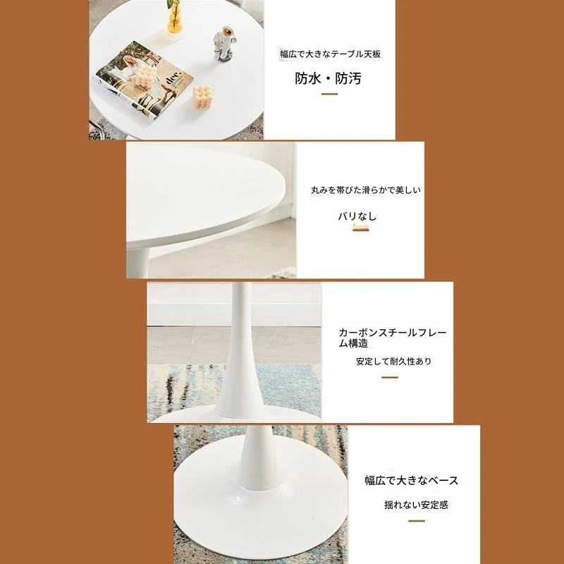 シンプルでカジュアルな白の北欧スタイルコーヒーテーブル - ミルクティーやカジュアルな会話に最適なインテリア、チューリップデザインのバルコニー用小型ラウンドテーブルと椅子セット!