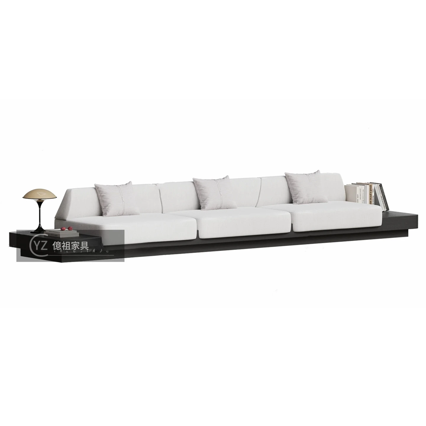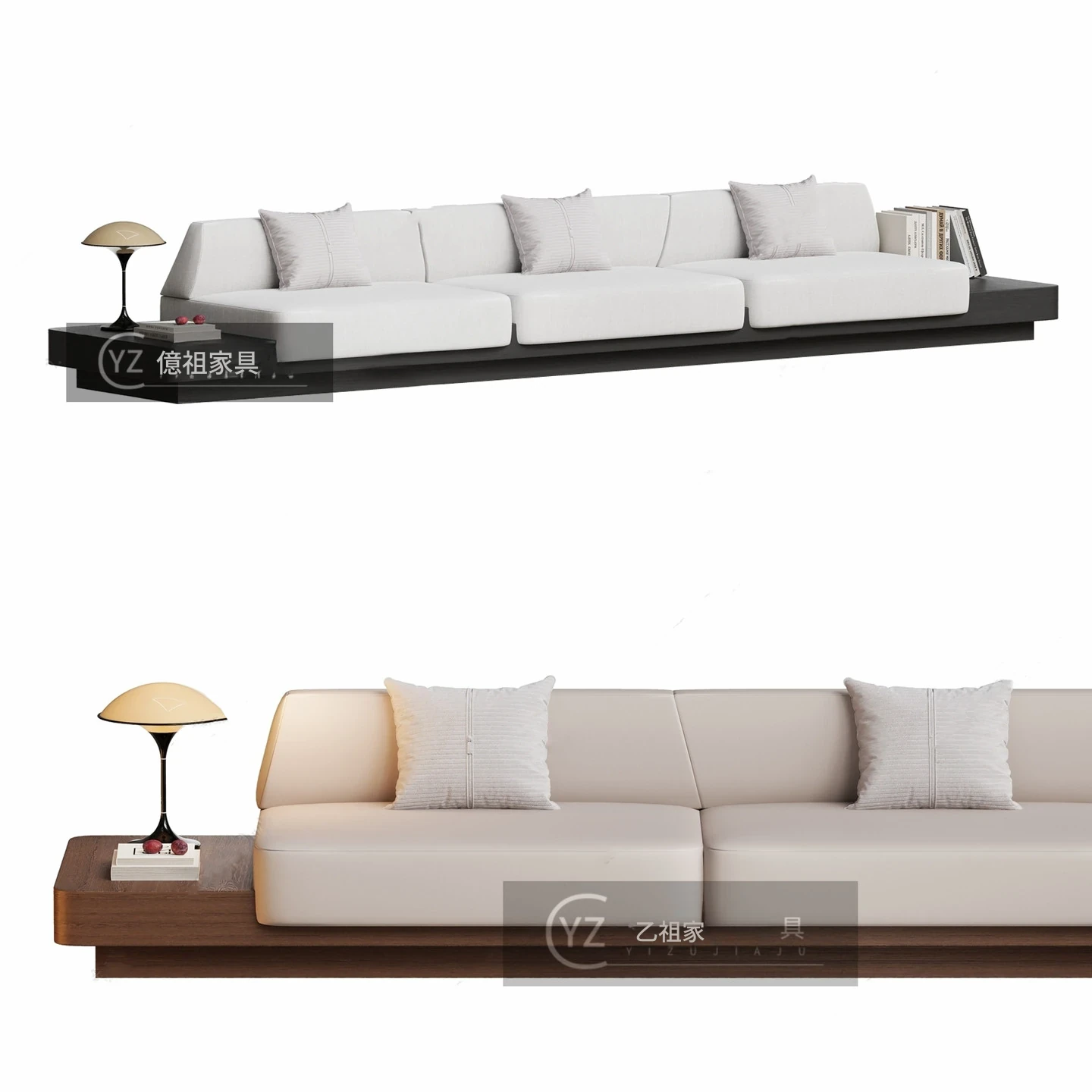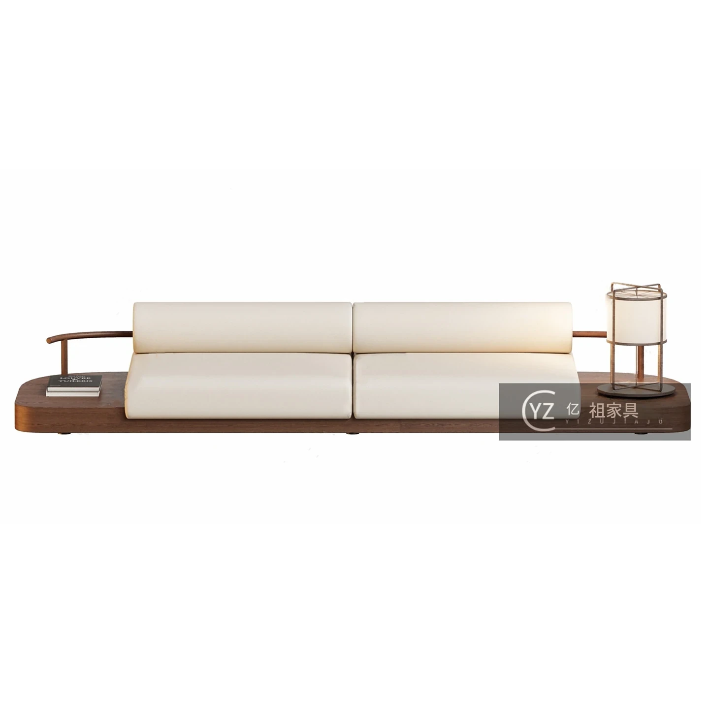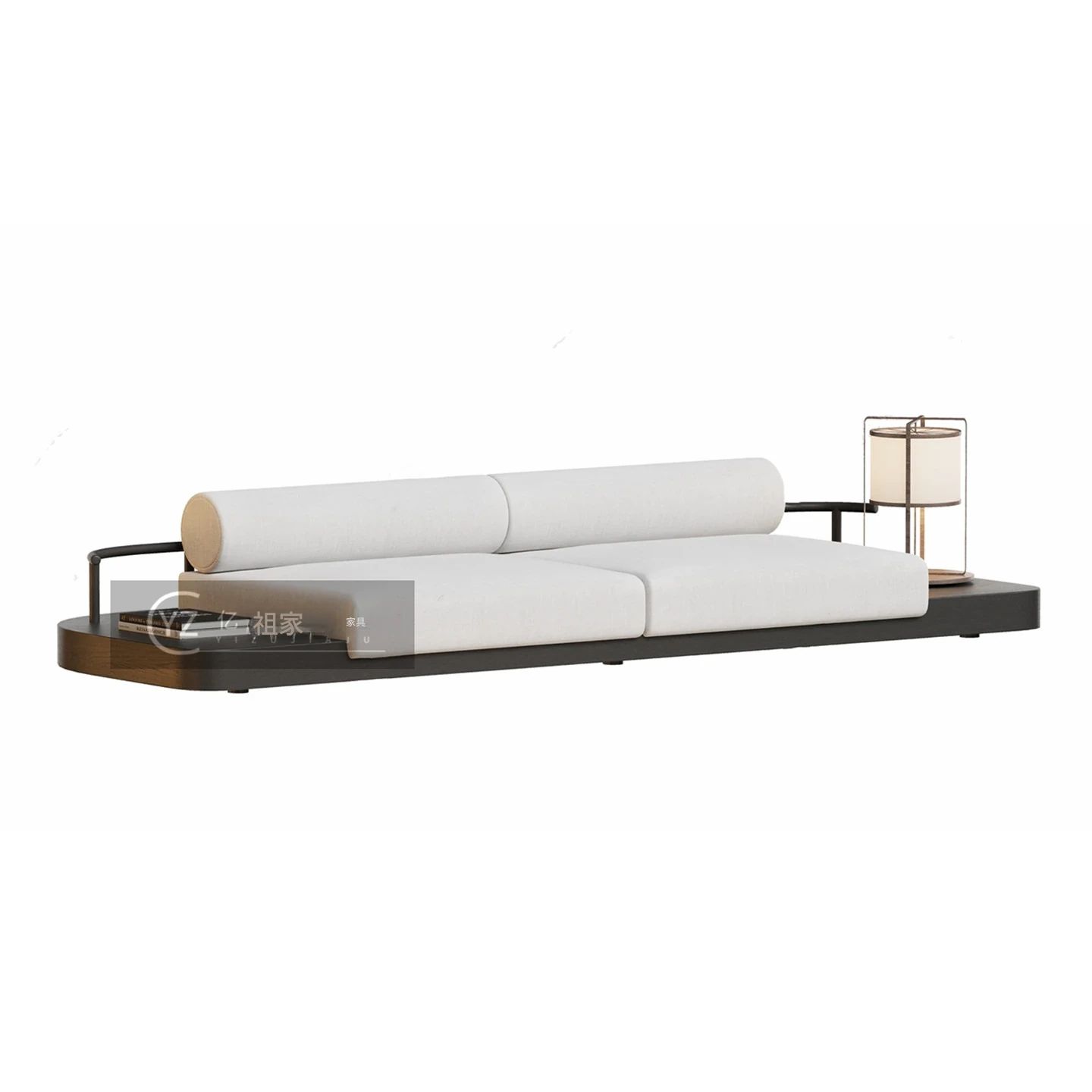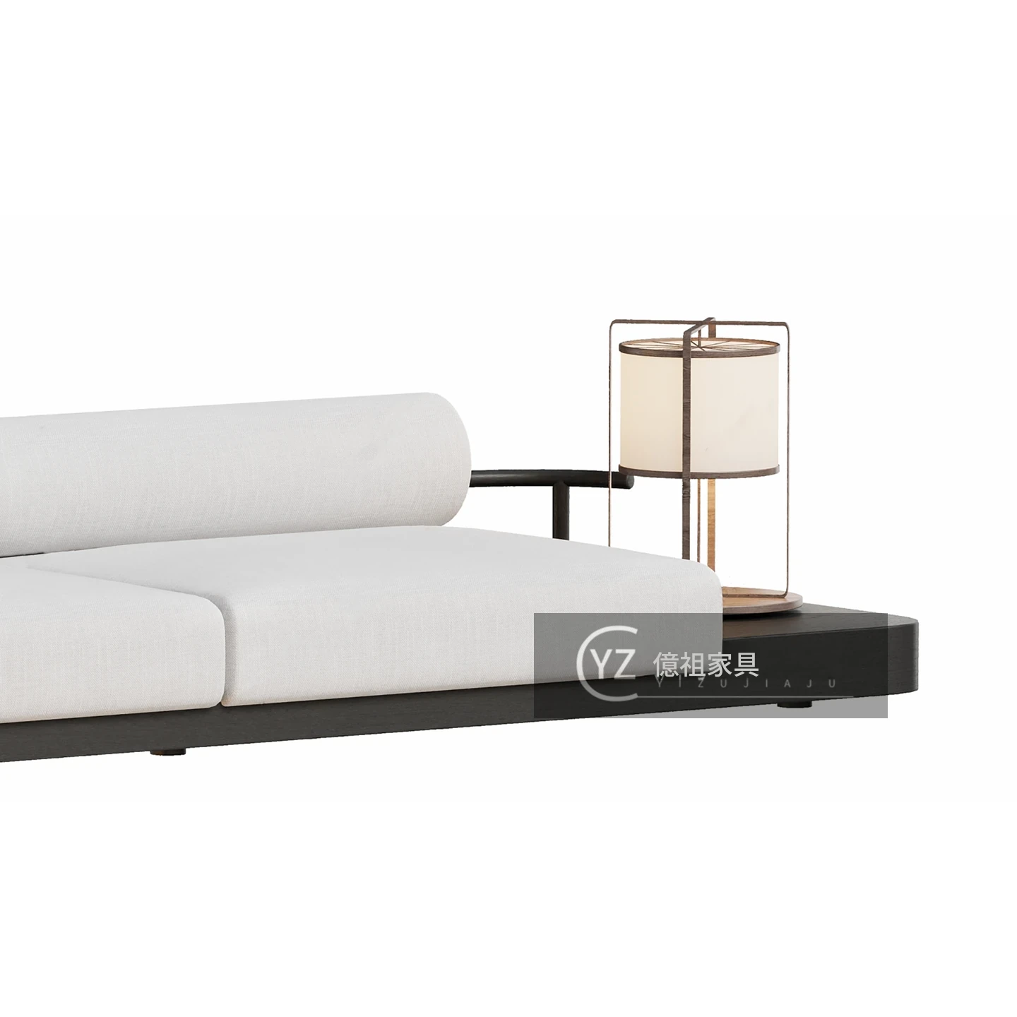 モダン中式シンプルエレガンスなリビングルーム用天然木製サイドテーブル付きソファー|ホテル・クラブ・販売所の接客用ソファに最適!