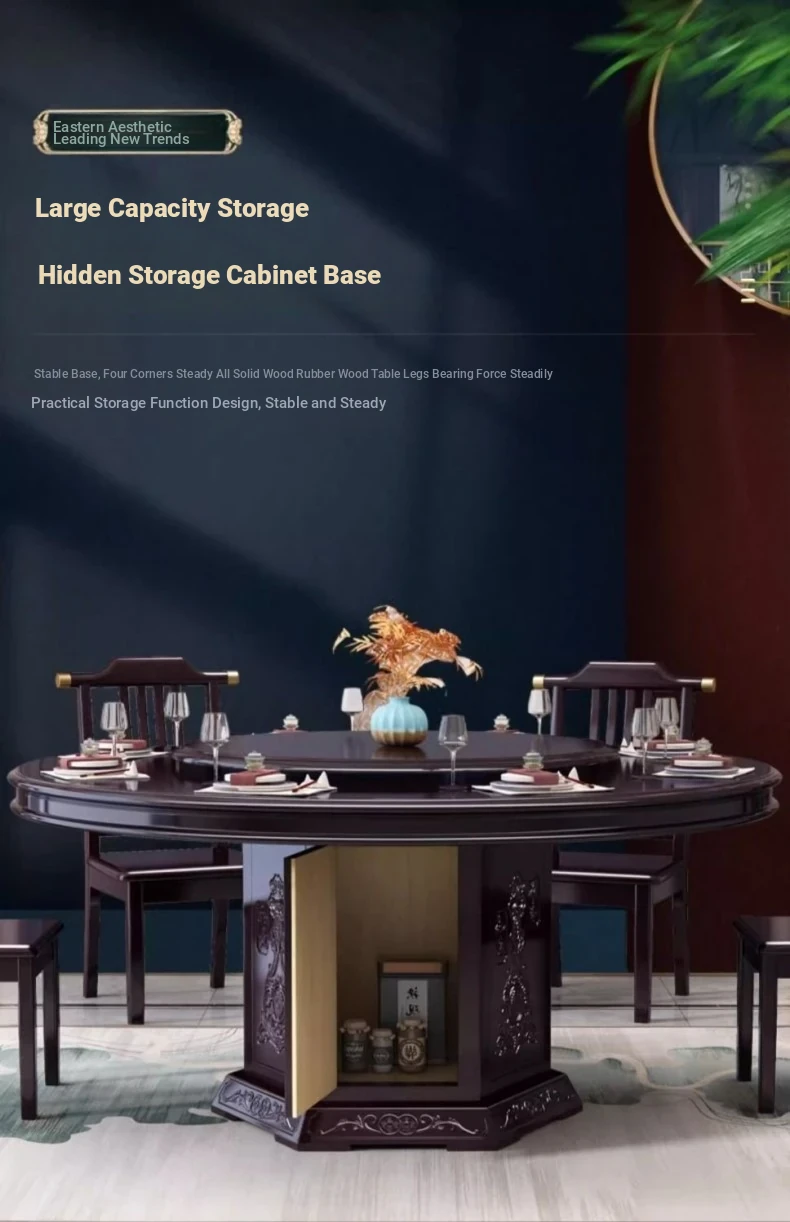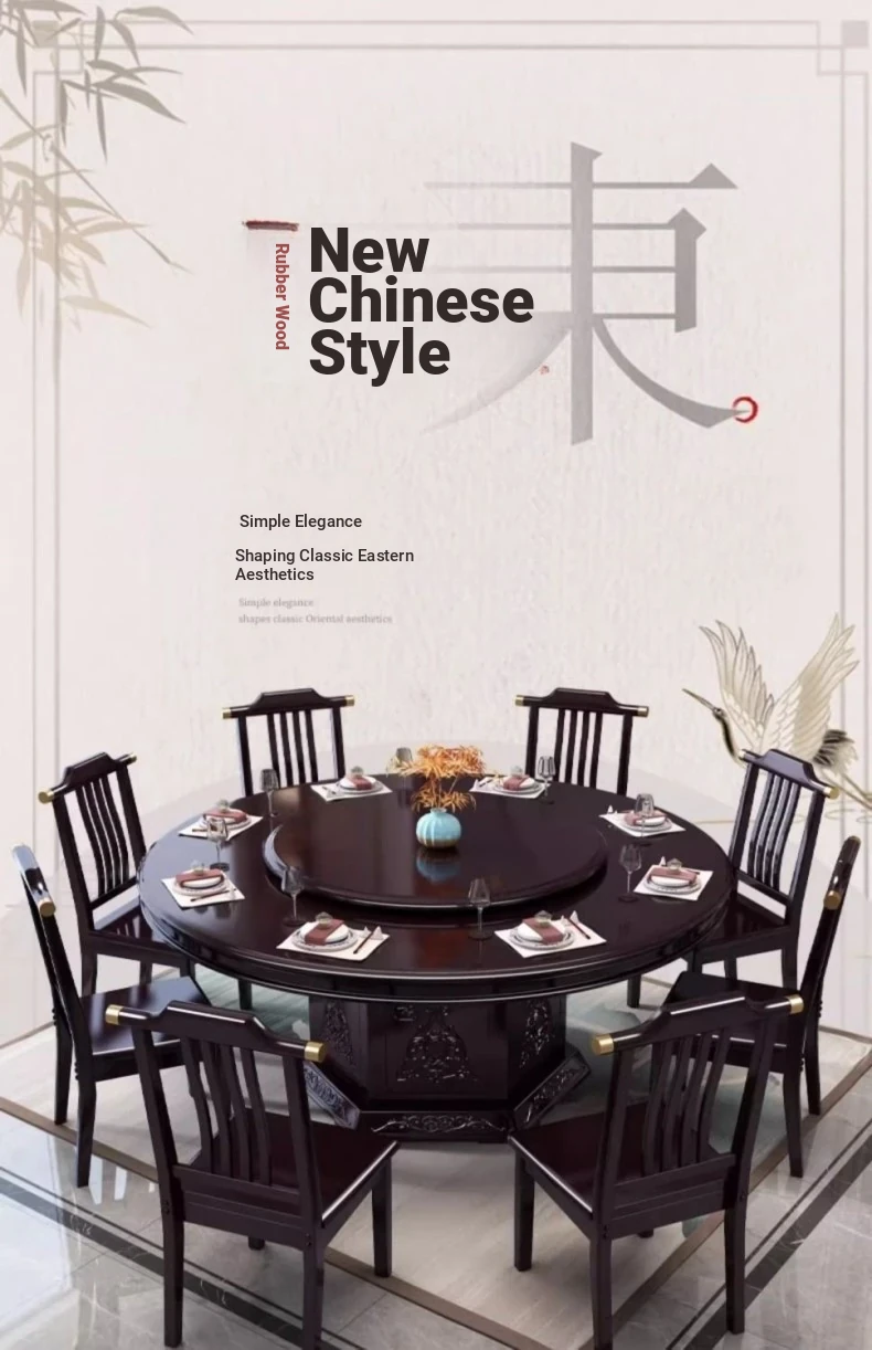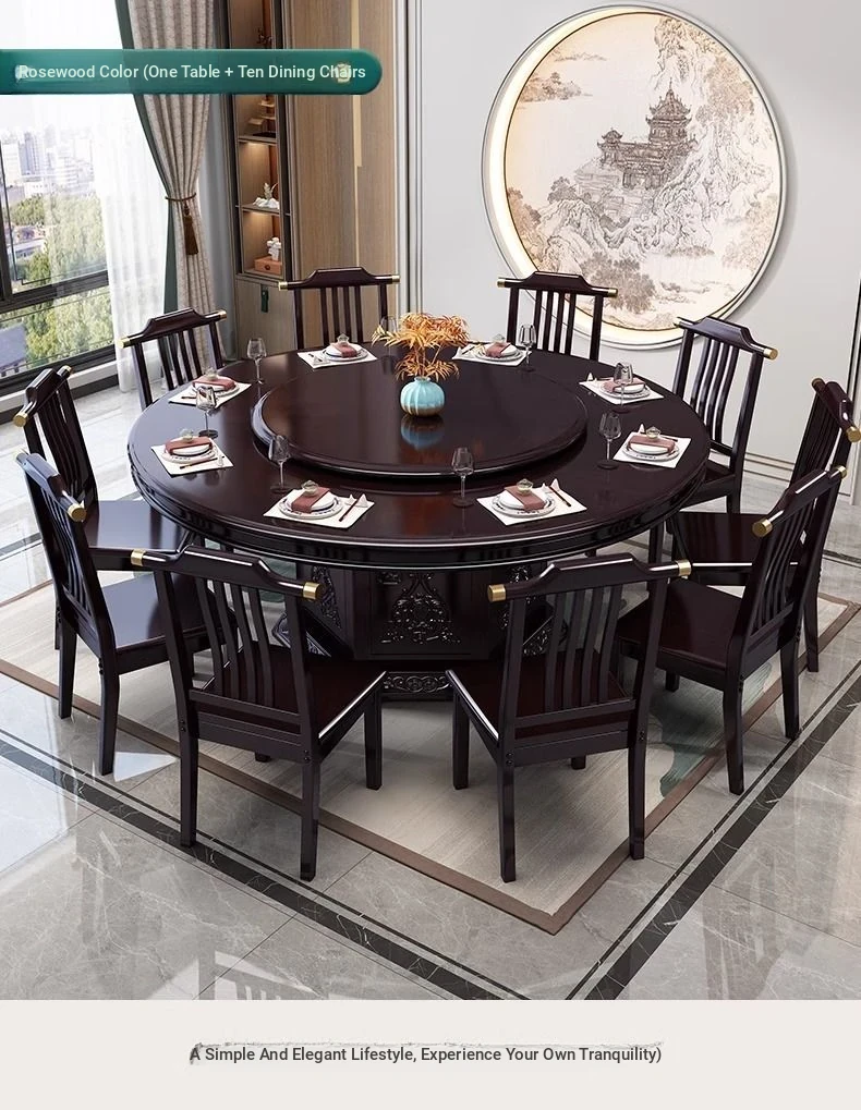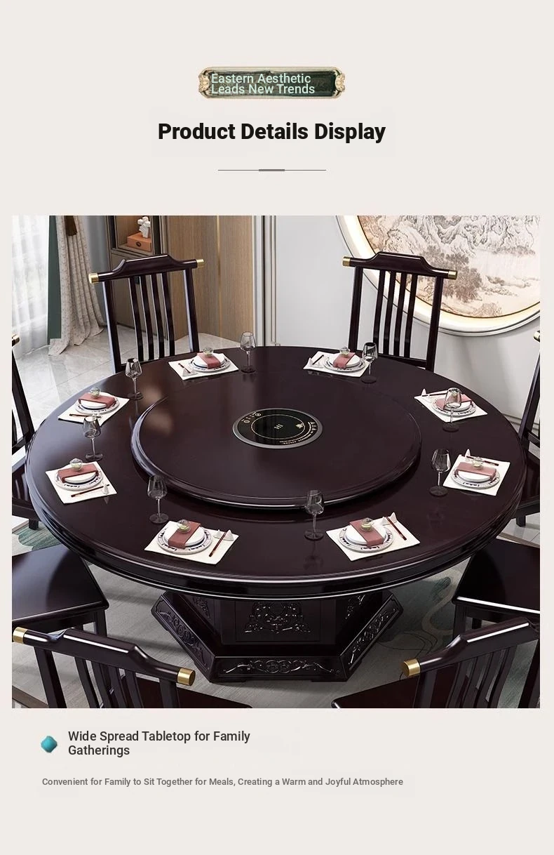 Modern Chinese Solid Wood Dining Table and Chair Set – Round Table with Lazy Susan, Perfect for Home and Restaurants, Ideal for Family Meals and Gatherings, Includes Induction Cooktop – Spacious Design for Comfort and Style.