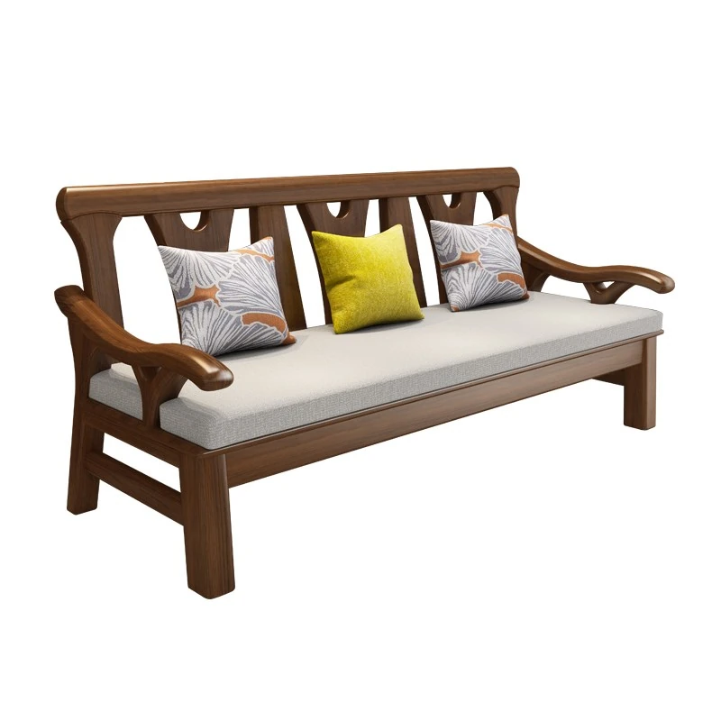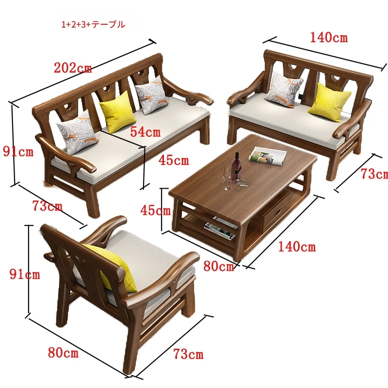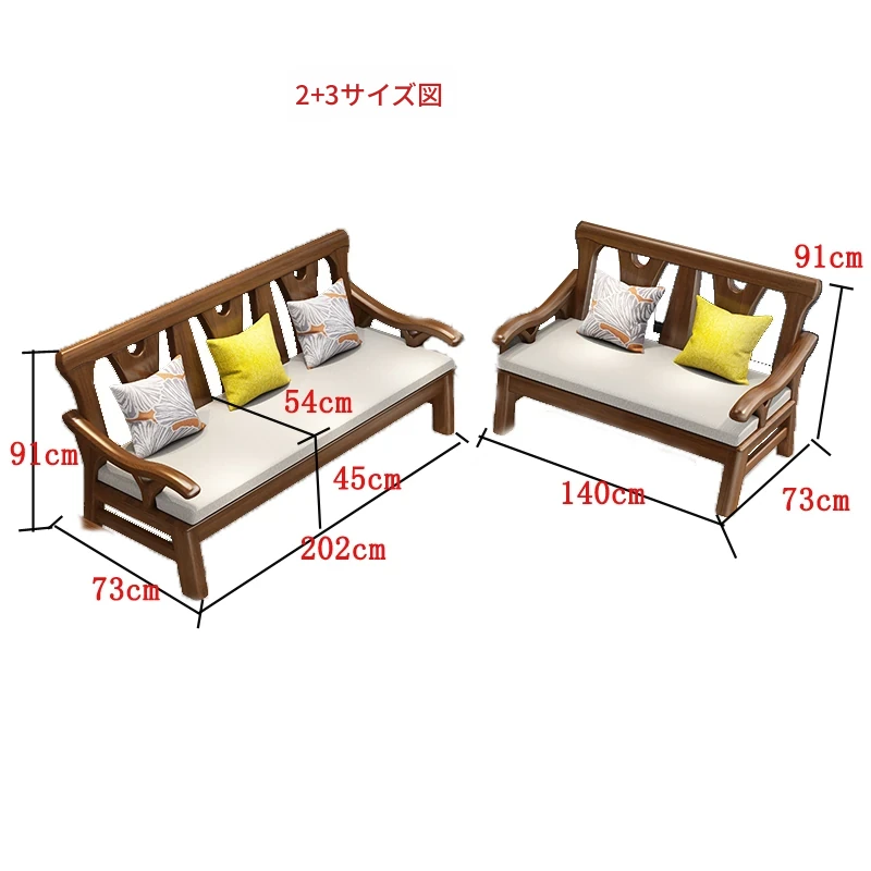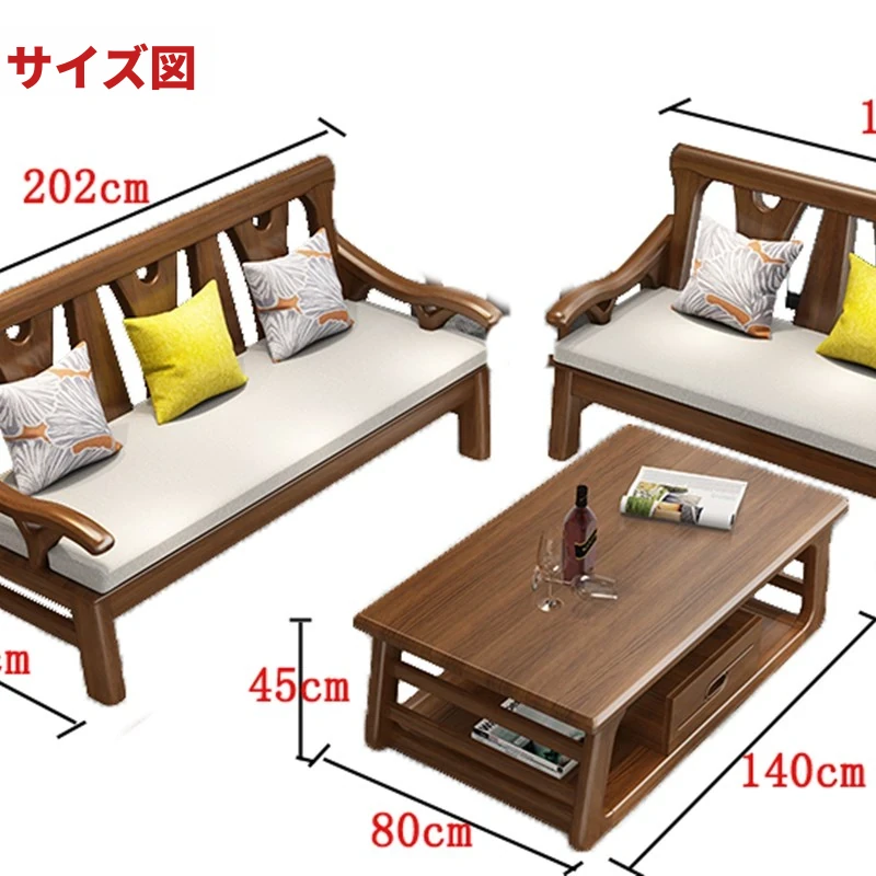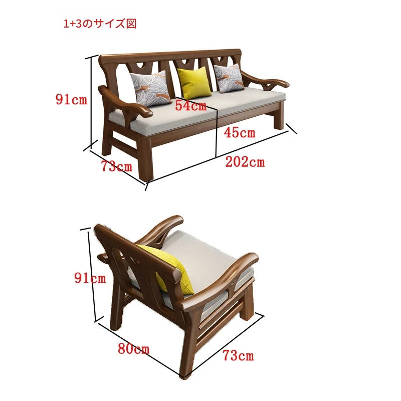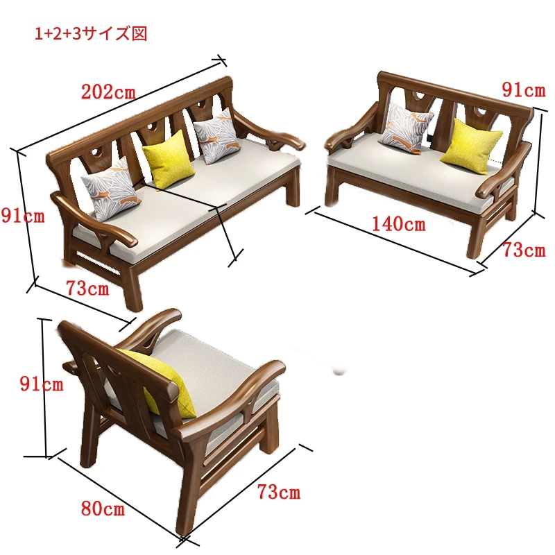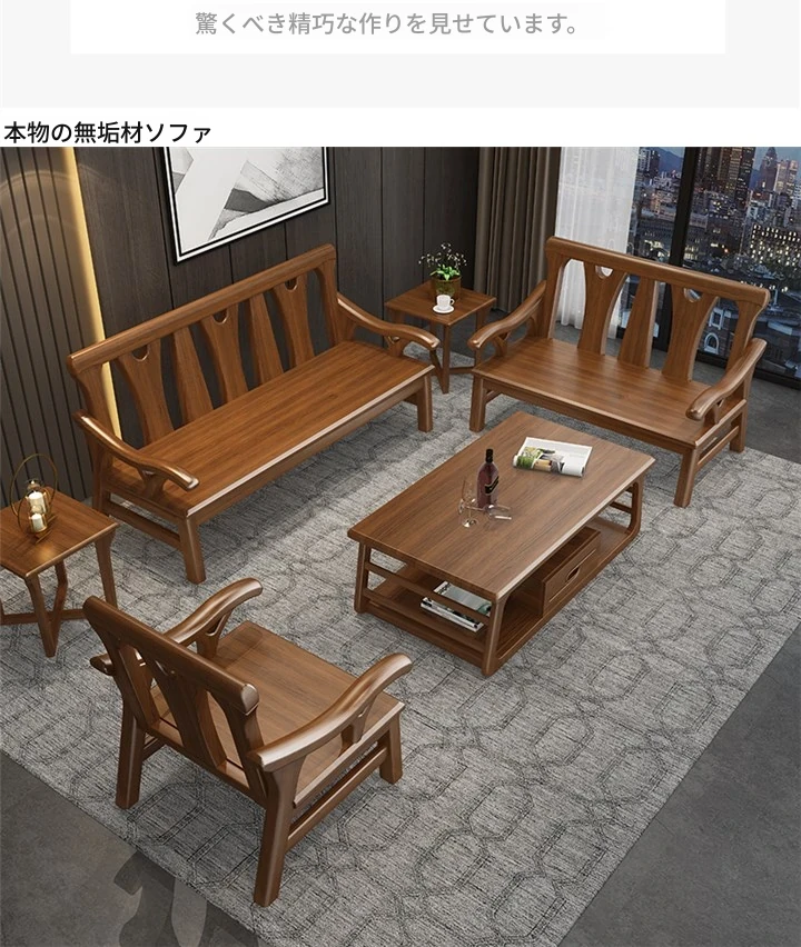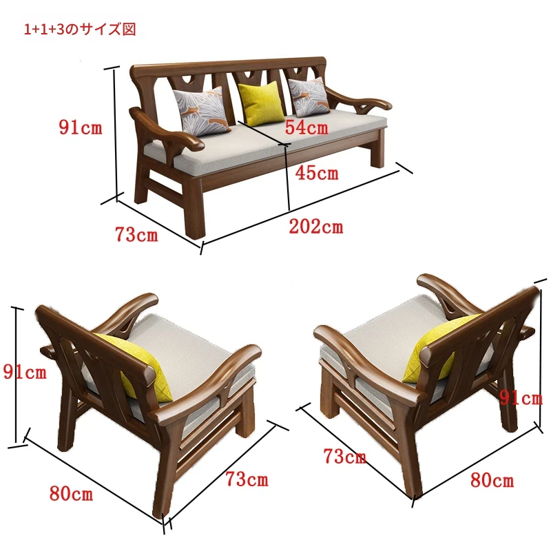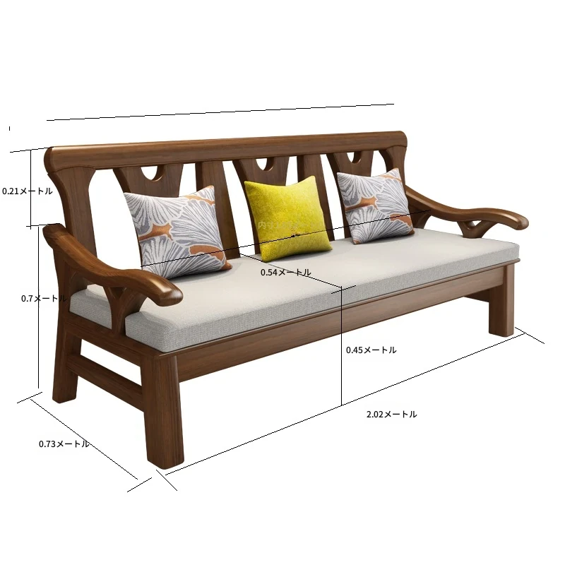 現代中式デザインの冬夏兼用実木ソファー - 完全木製のリビングルーム用コンビネーション、北欧スタイルのコンパクトなオーク材3人掛けソファ!シンプルで洗練された美しさをあなたの空間に。