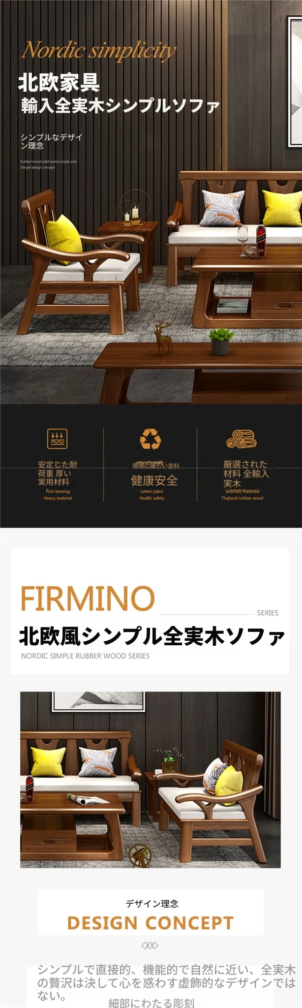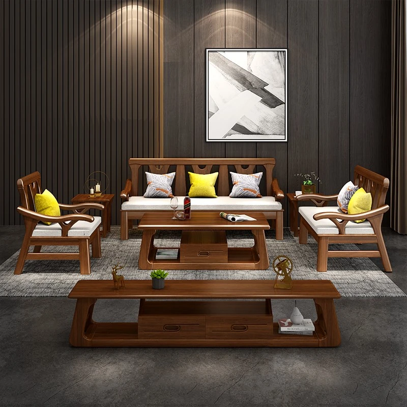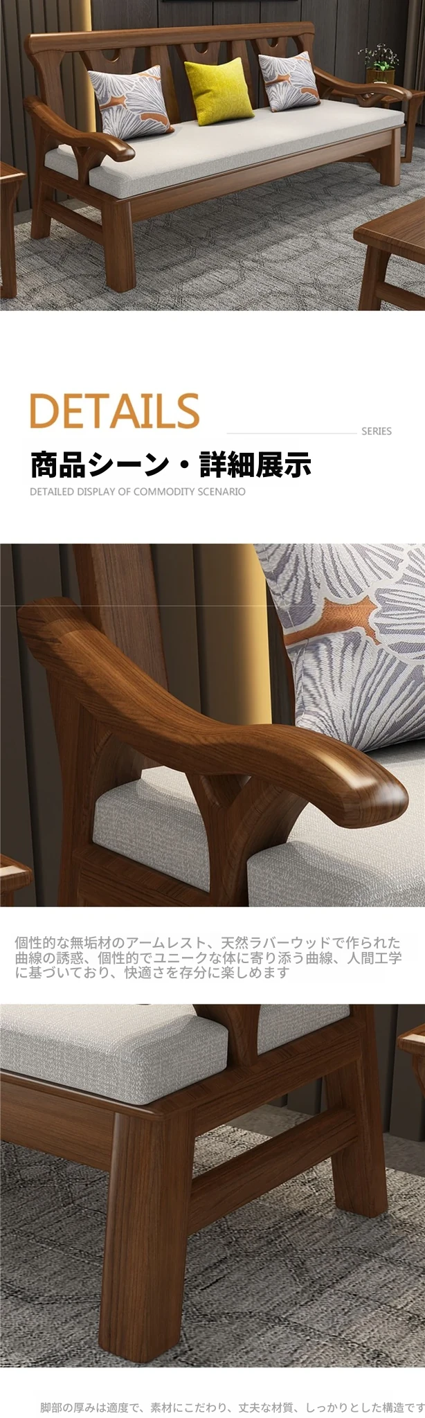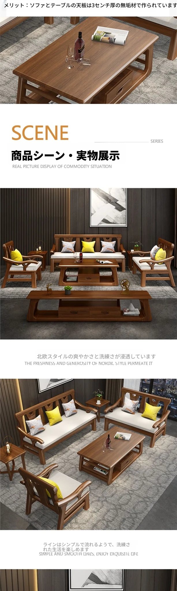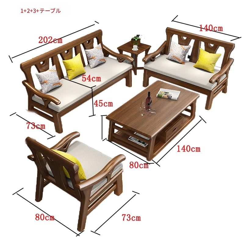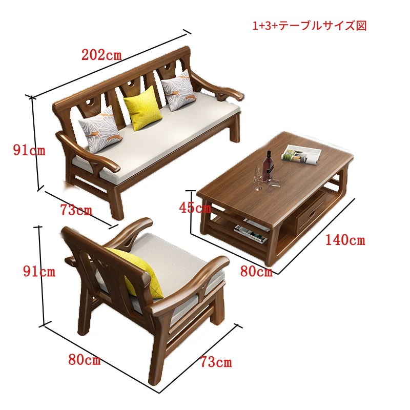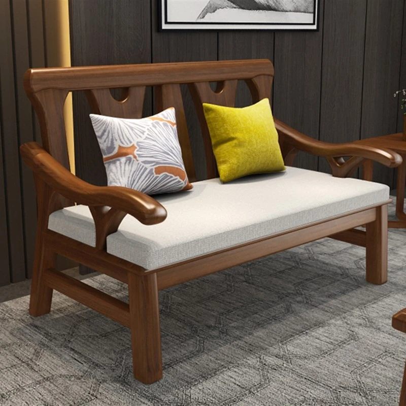 現代中式デザインの冬夏兼用実木ソファー - 完全木製のリビングルーム用コンビネーション、北欧スタイルのコンパクトなオーク材3人掛けソファ!シンプルで洗練された美しさをあなたの空間に。