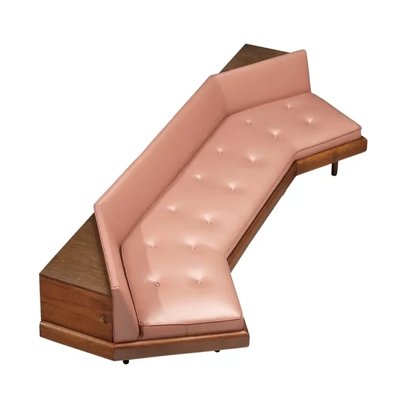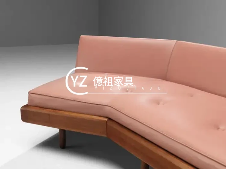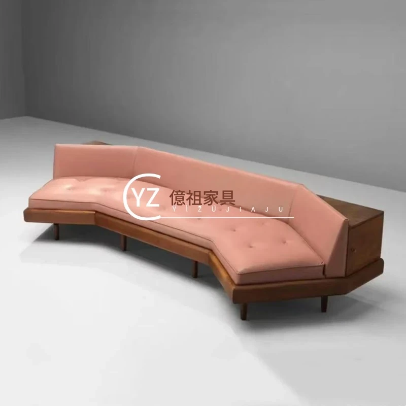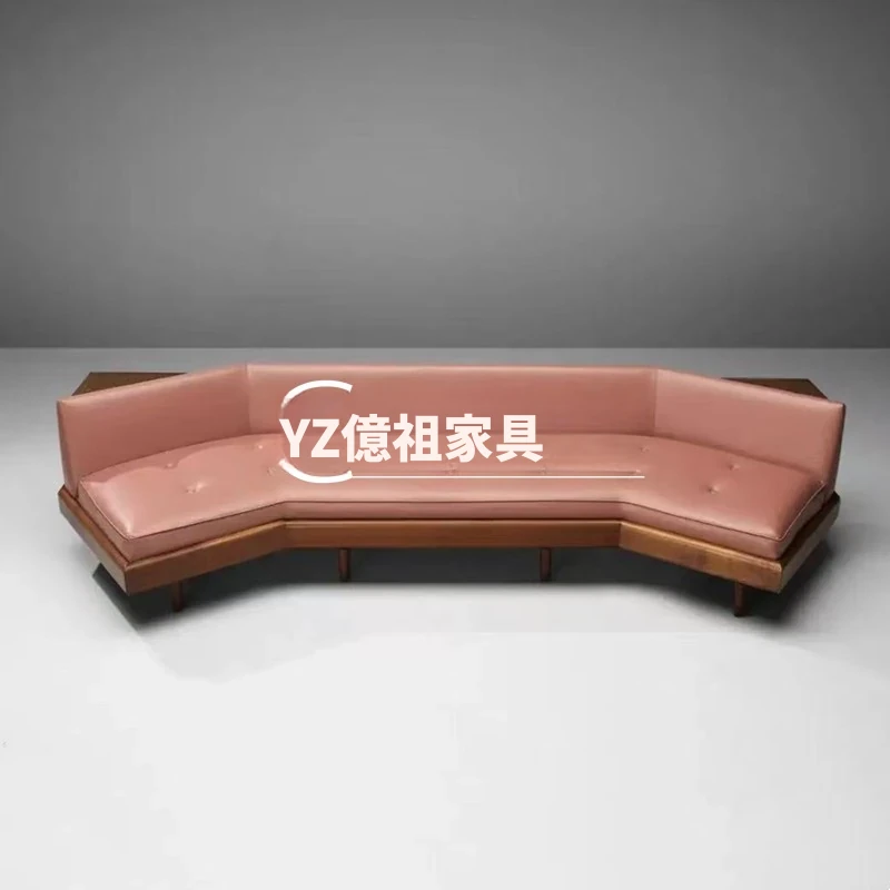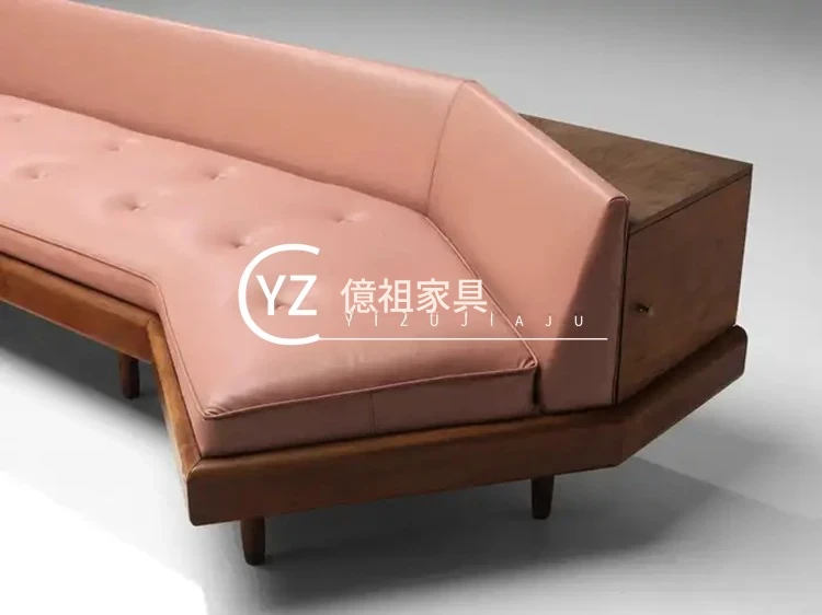 新中式現代軽奢スタイルの無垢材サイドテーブル一体型ソファデザイン、ユニークな形状のホテル・クラブ・民宿向けソフトインテリア家具。洗練されたデザインで、贅沢なひとときを演出します。