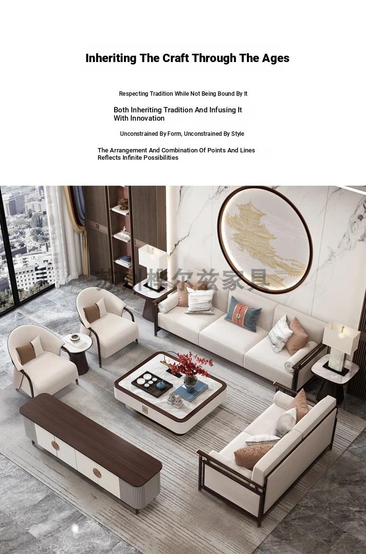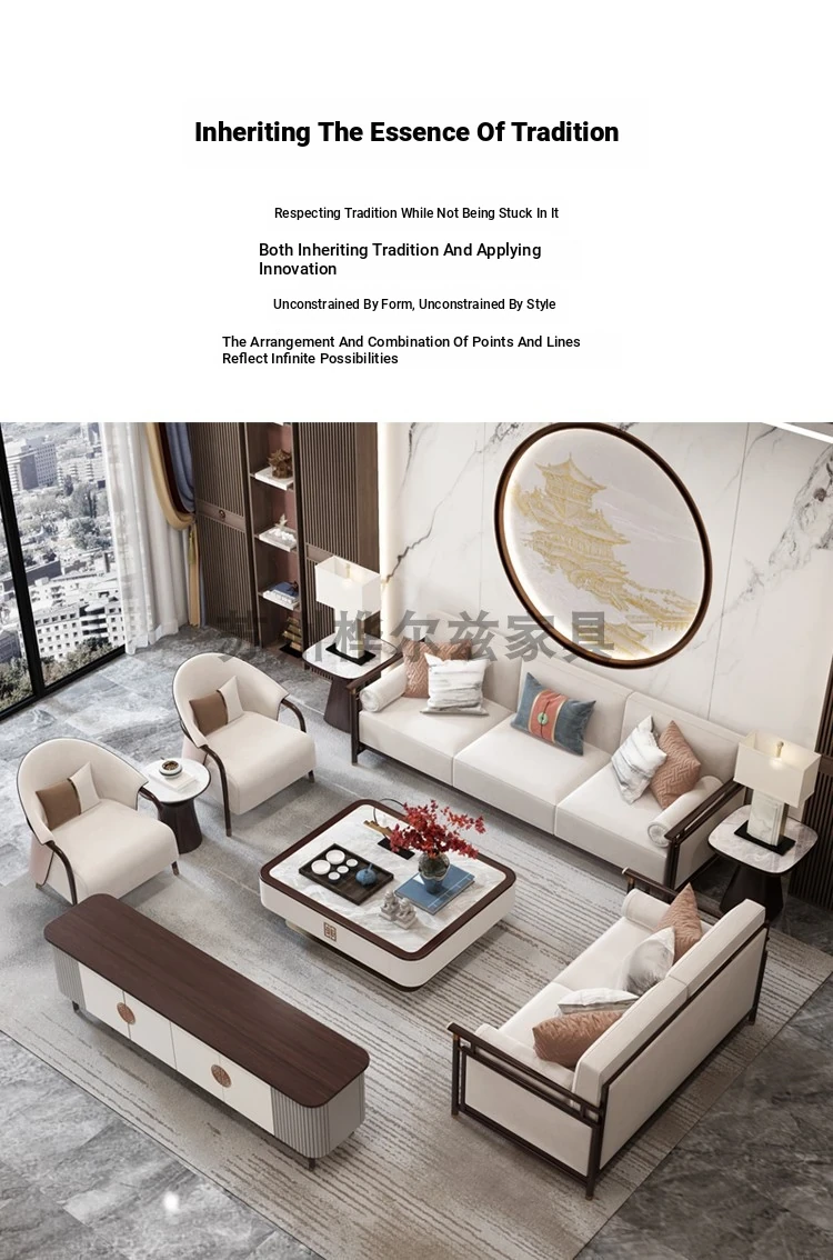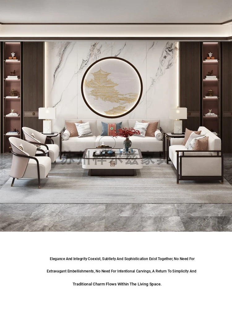 Modern Chinese-Style Solid Wood Sofa Set - Minimalist Luxury Living Room Furniture for Villas and Spacious Homes with Elegant Chinese Aesthetics