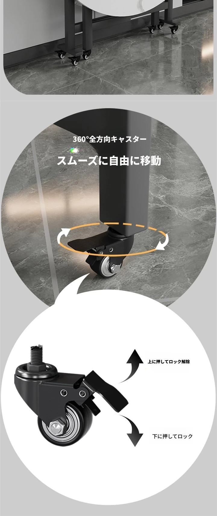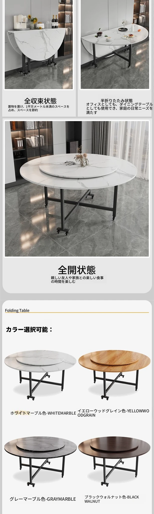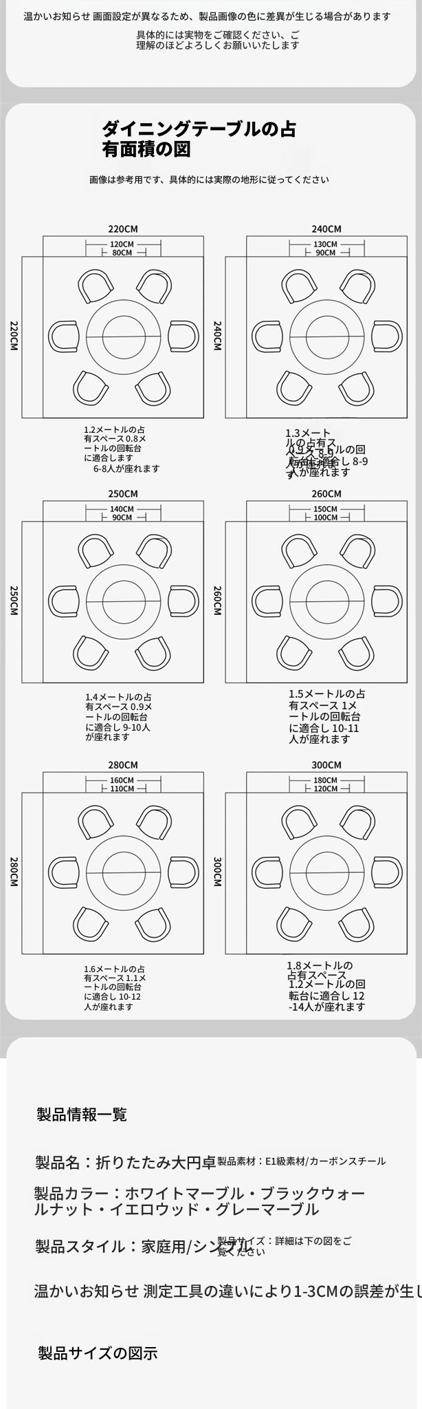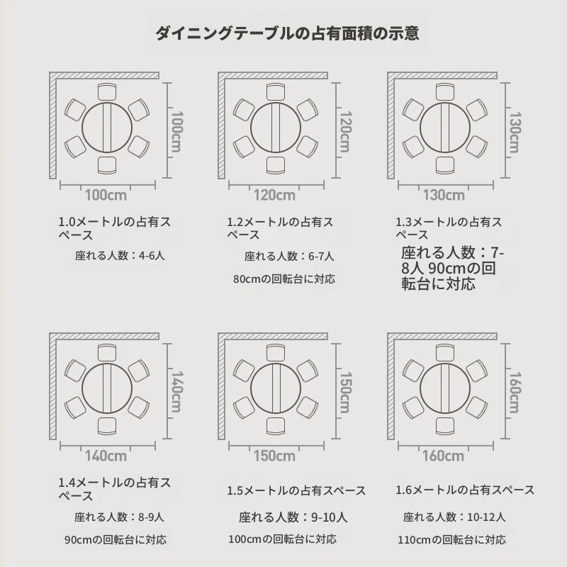 1.2メートル白大理石模様+0.8メートル同色回転台