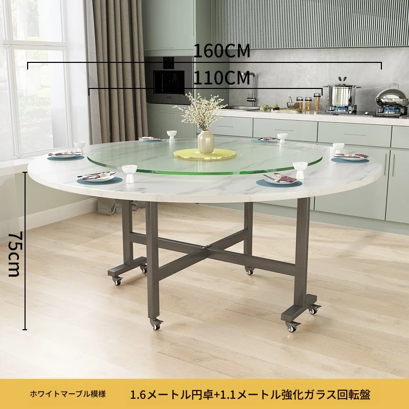 1.6メートル白大理石+1.1メートル強化ガラス回転台