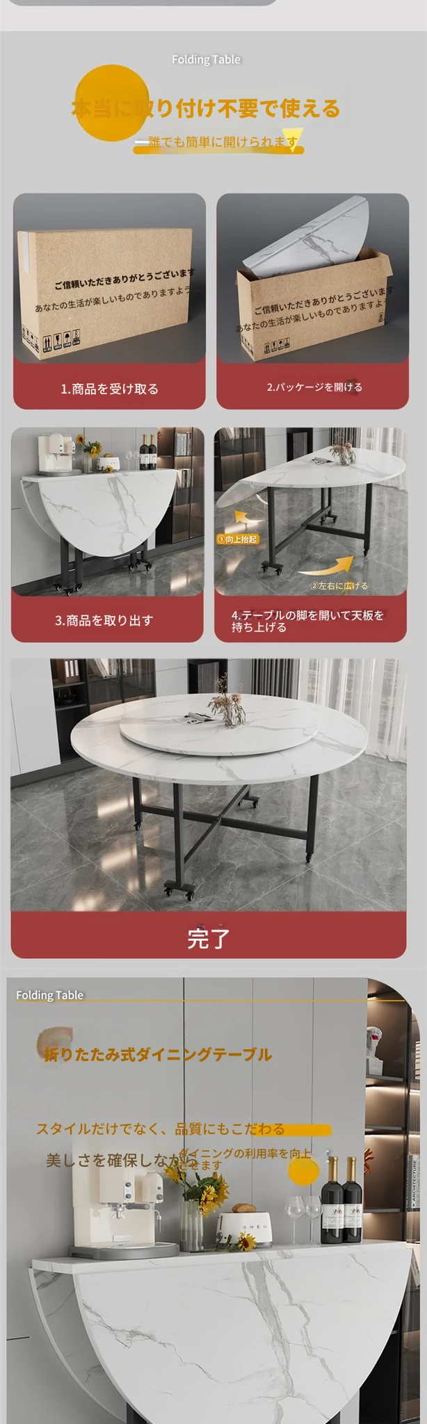 1.4メートル白大理石模様+0.9メートル同色回転台